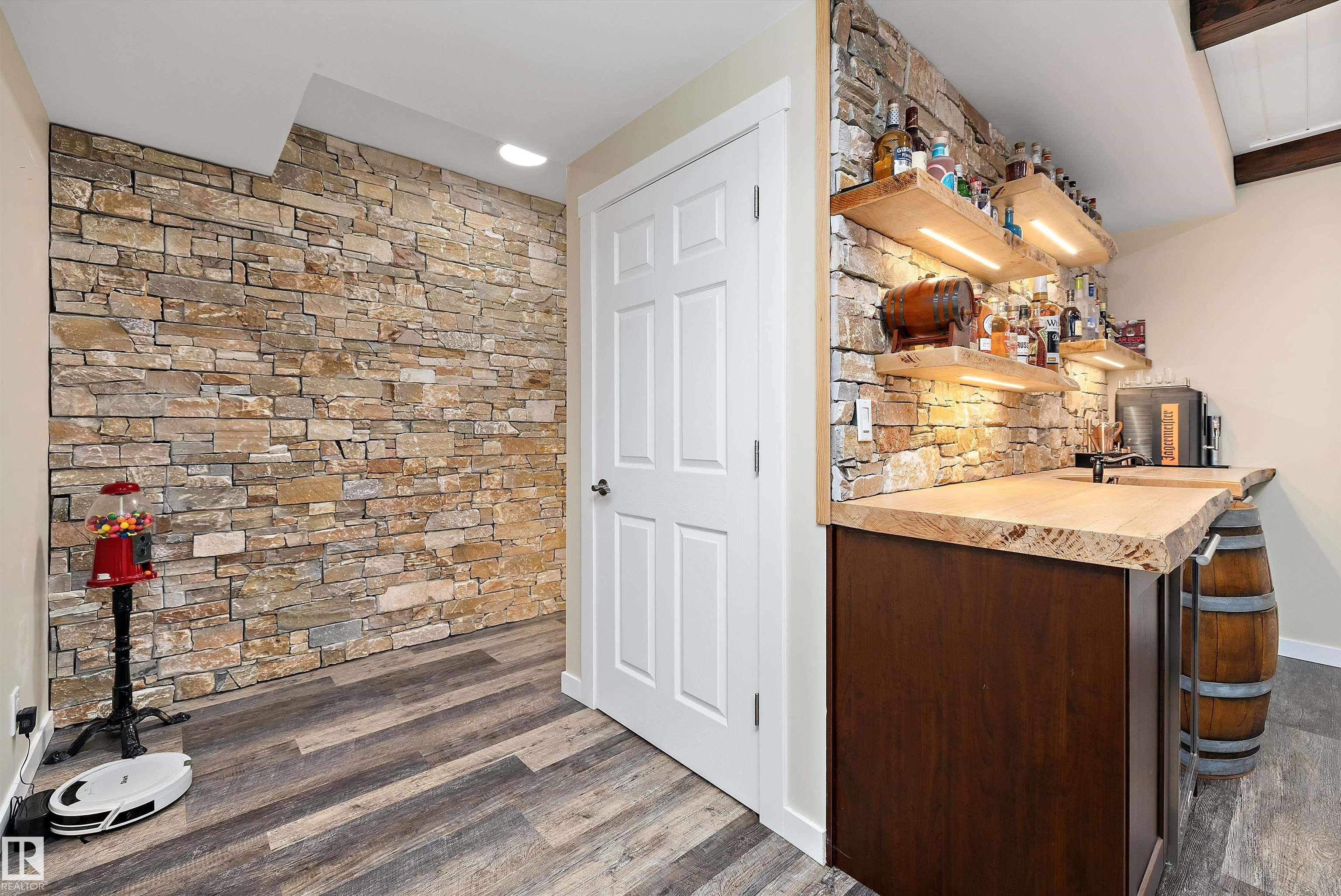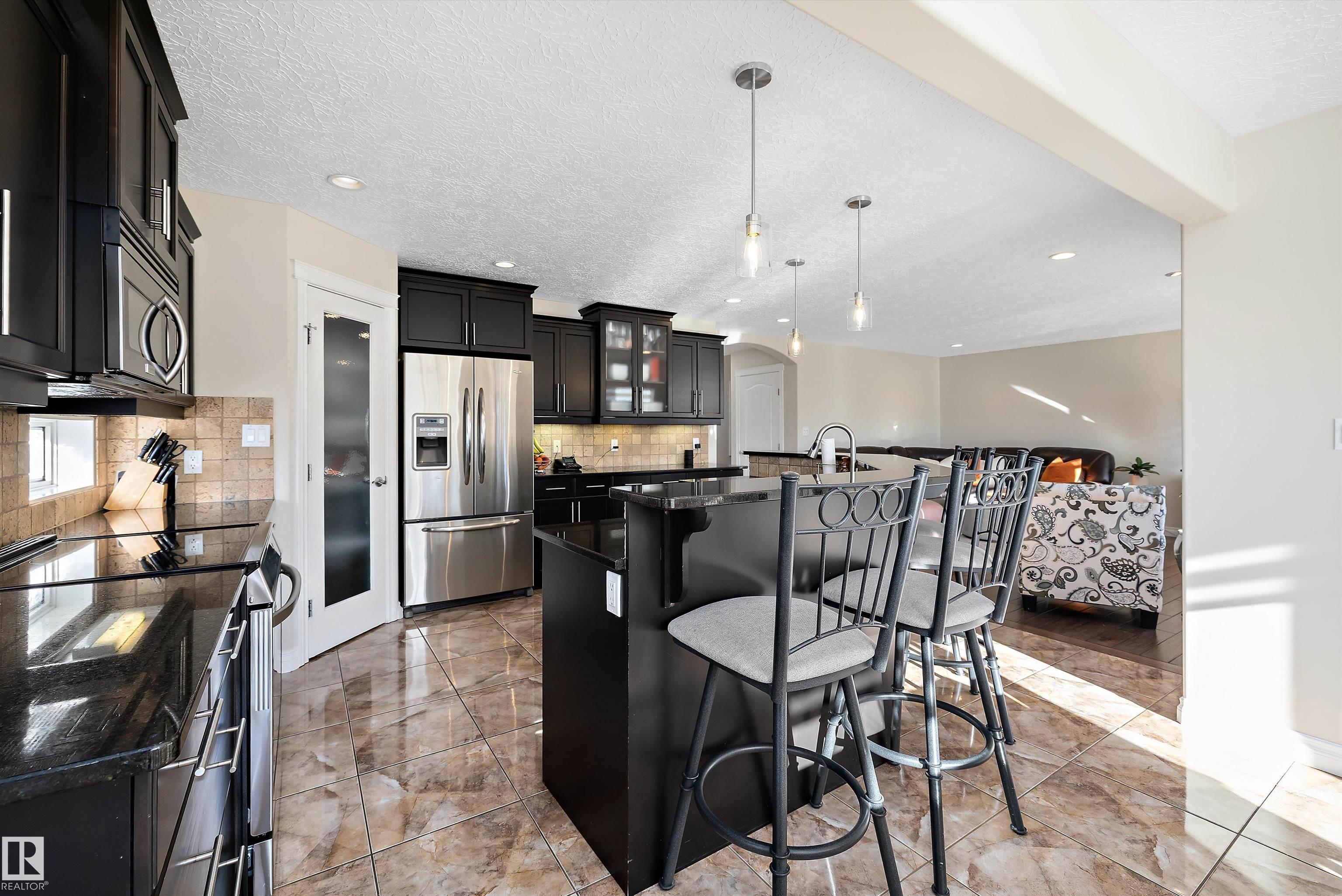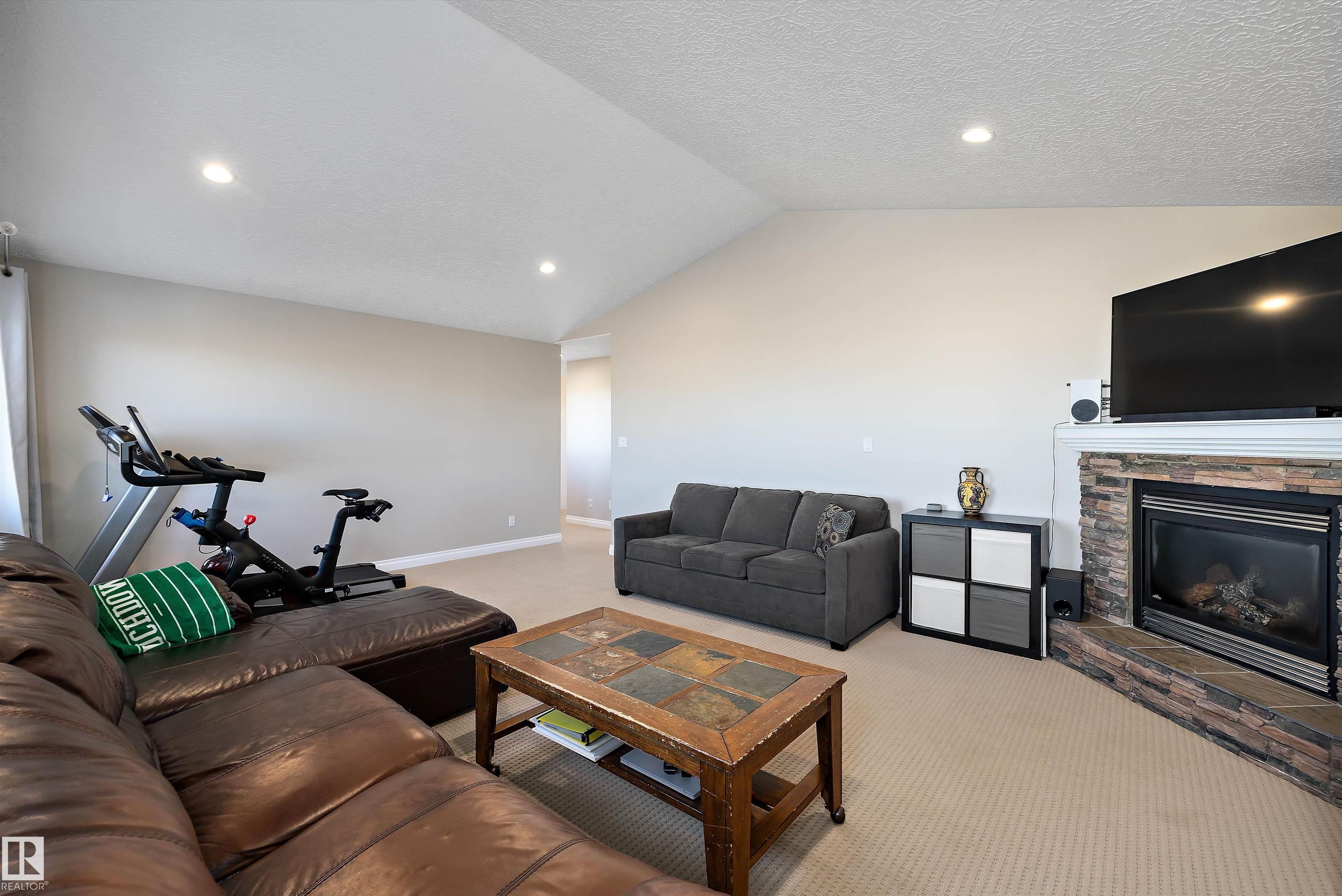 Welcome to this beautifully finished home showcasing quality craftsmanship and exceptional value throughout. The main floor offers a bright open layout with elegant engineered hardwood and ceramic tile, a stylish kitchen with granite countertops, and stainless steel appliances. Upstairs features a spacious bonus room with a cozy gas fireplace and a luxurious 5-piece primary ensuite. The basement is perfect for entertaining, complete with a bedroom, 3-piece bath, laminate flooring, wet bar with beverage cooler, and another gas fireplace. A hidden bonus room adds versatility?ideal for a private wine cellar, gun room, or extra storage. The triple attached garage is heated, insulated, and finished with laminate tile and built-in cabinets. Enjoy outdoor living on the large deck, perfect for family gatherings or relaxing evenings. Additional highlights include an on-demand hot water system, water softener, air conditioning, and all window coverings. Don?t miss this opportunity!