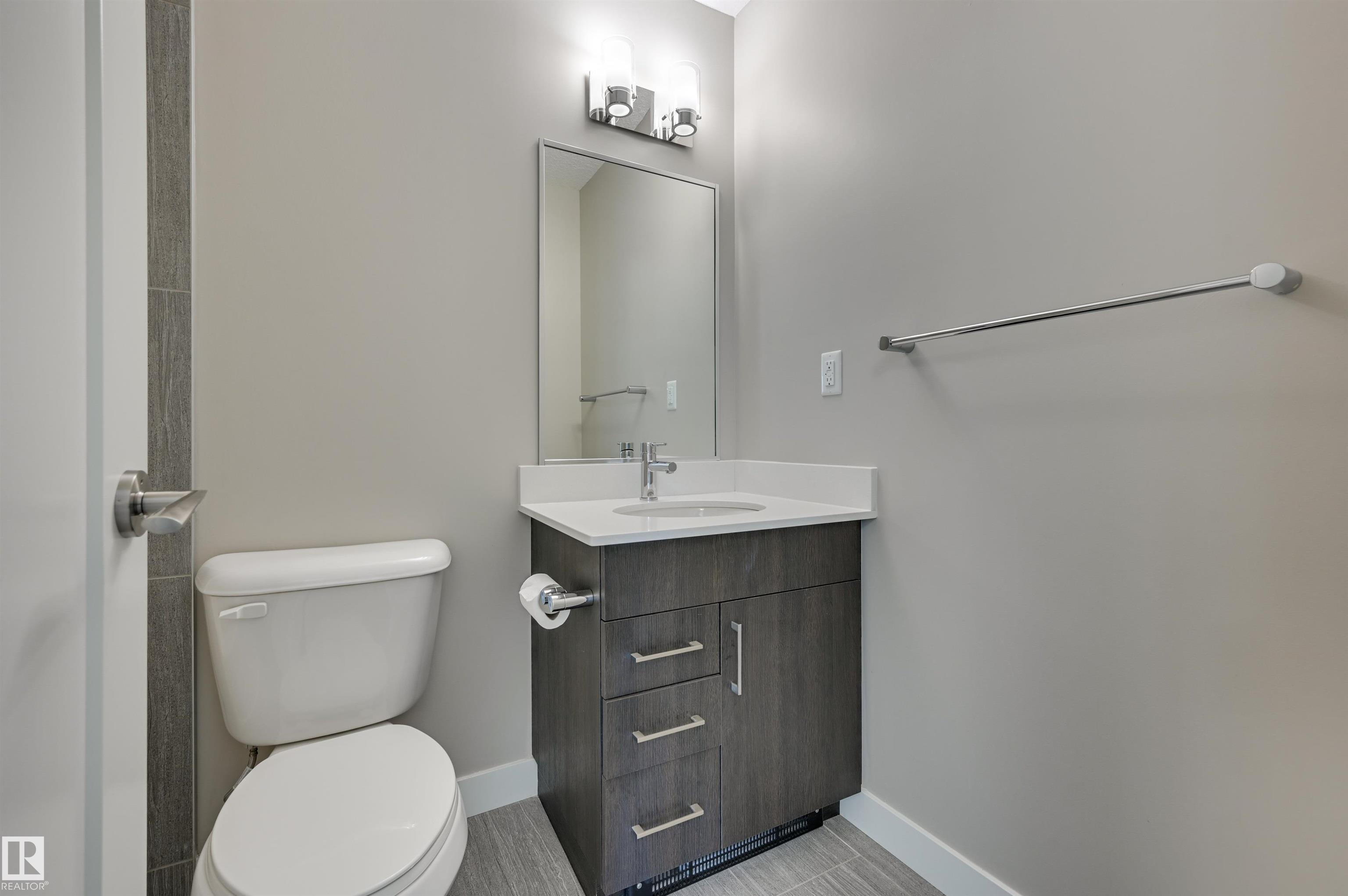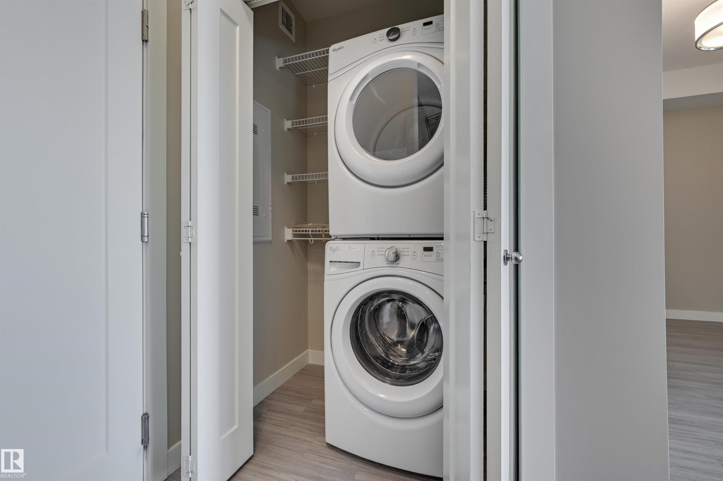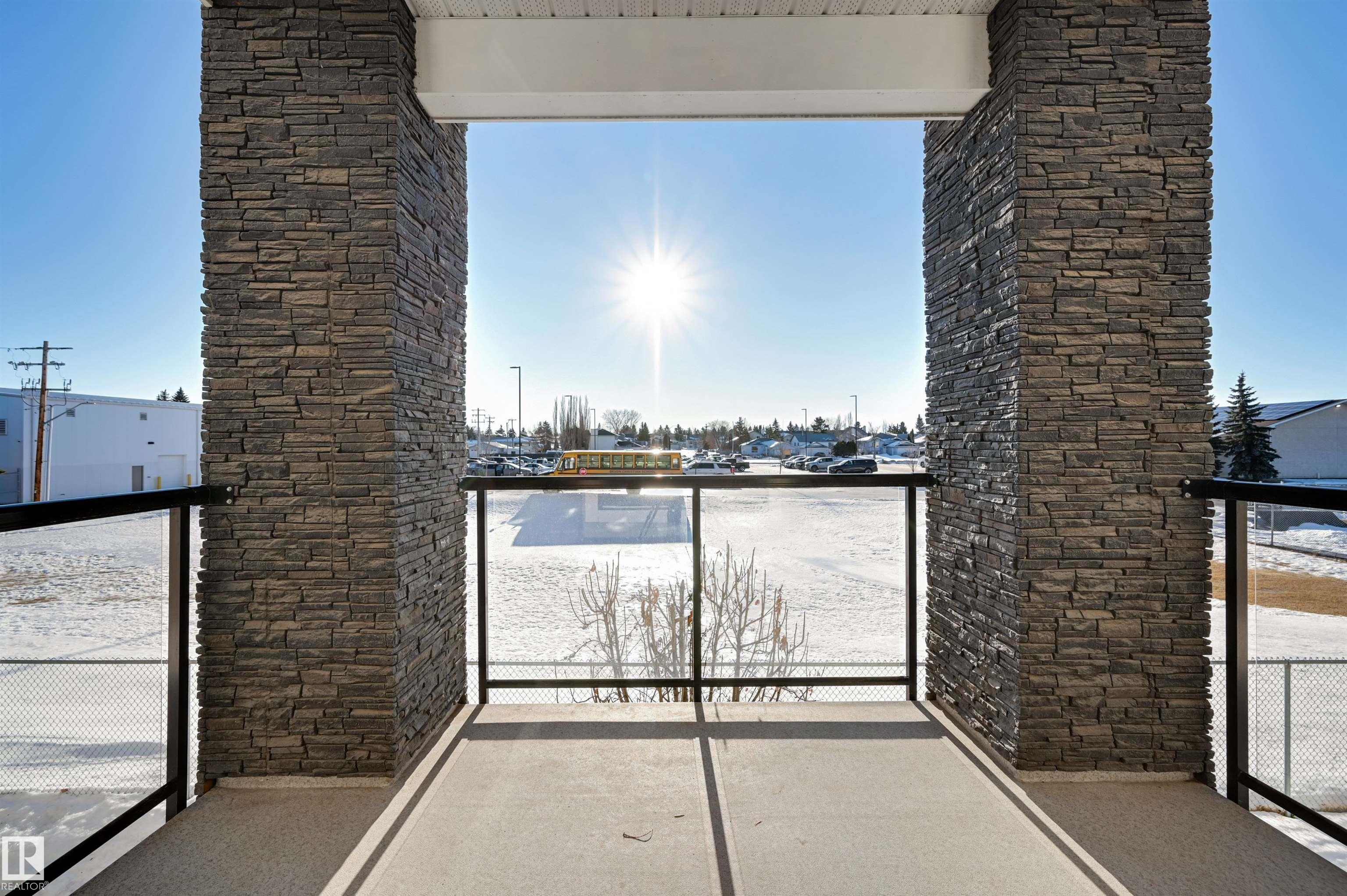 Welcome home to this SUNNY SOUTH FACING spacious condo with 2 bedrooms 2 bathrooms in THE RIDGE in the heart of DEVON conveniently located within walking distance to schools, parks, groceries, restaurants, outdoor pool, arena and the river valley walking/biking trails. This modern open concept floor plan offers premium finishing throughout with 9' ceilings and the bedrooms at the opposite ends of the living room. The gourmet kitchen has espresso color cabinetry with soft close, quartz countertops and stainless steel appliances. South facing deck with a gas BBQ outlet. Vinyl plank flooring throughout except for tile in the bathrooms. Roughed in for A/C. Included is the fridge, glass top stove, built-in microwave, dishwasher, INSUITE WASHER AND DRYER and TITLED UNDERGROUND PARKING Unit 35 (Actual stall #3) with a storage cage. A great place to call home!