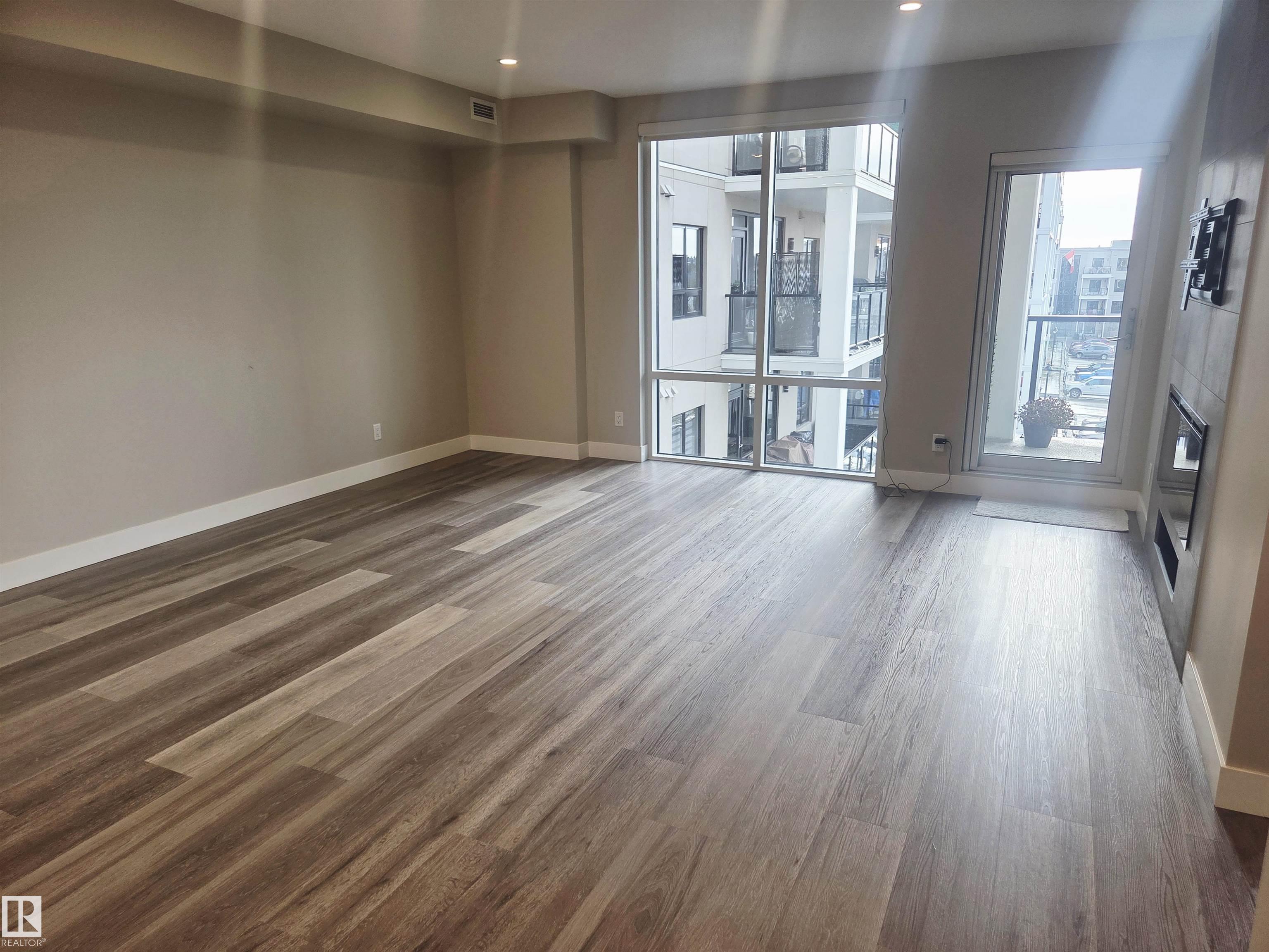 Bright and spacious 1 bedroom plus den suite in Botanica!! (Over 1,000 sf) with deluxe 5 pc ensuite bath, plus a convenient half bath off living room. This beautiful suite has been well maintained and in like-new condition. Solid concrete construction offers superior sound reduction and safety. Premium features include; 9' ceilings, oversized windows, quartz countertops, LVP plank flooring, porcelain tile, s/s appliance pkg, forced air heating and A/C, large west facing covered balcony with gas & water access. Underground parking with storage included! Botanica's well designed amenities include; impressive social hall, fitness room, guest suites, rooftop patio and lots of visitor parking. Only steps away from access to over 65 kms of the tranquil Red Willow Trail System along the Sturgeon River Valley. Enjoy the condo lifestyle with boutique shopping, professional services, unique restaurants and the Mercato Italian Market right outside your from door. Great price and low condo fees!!