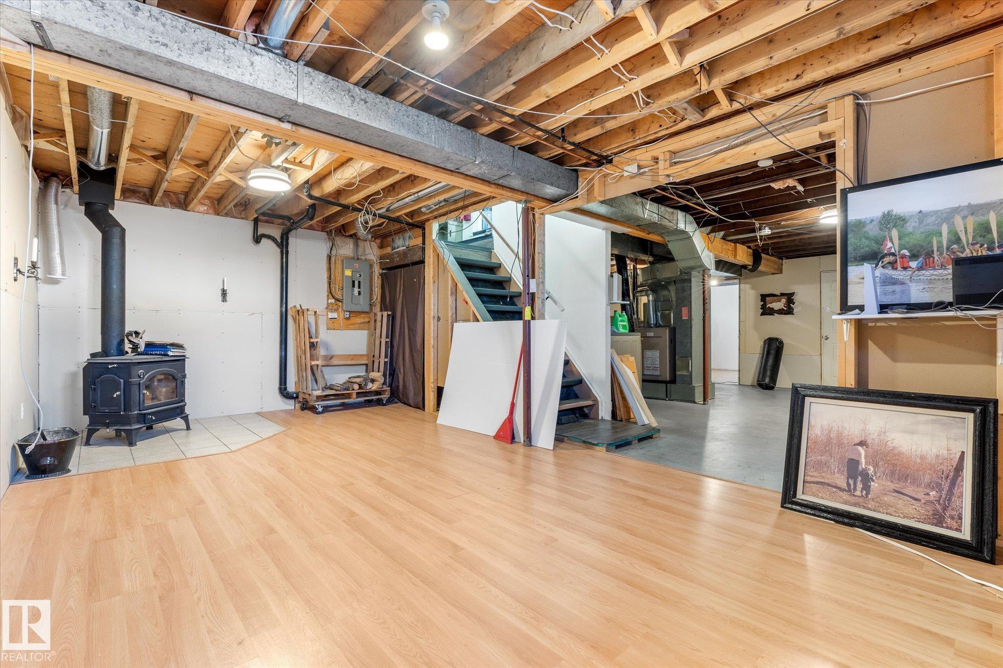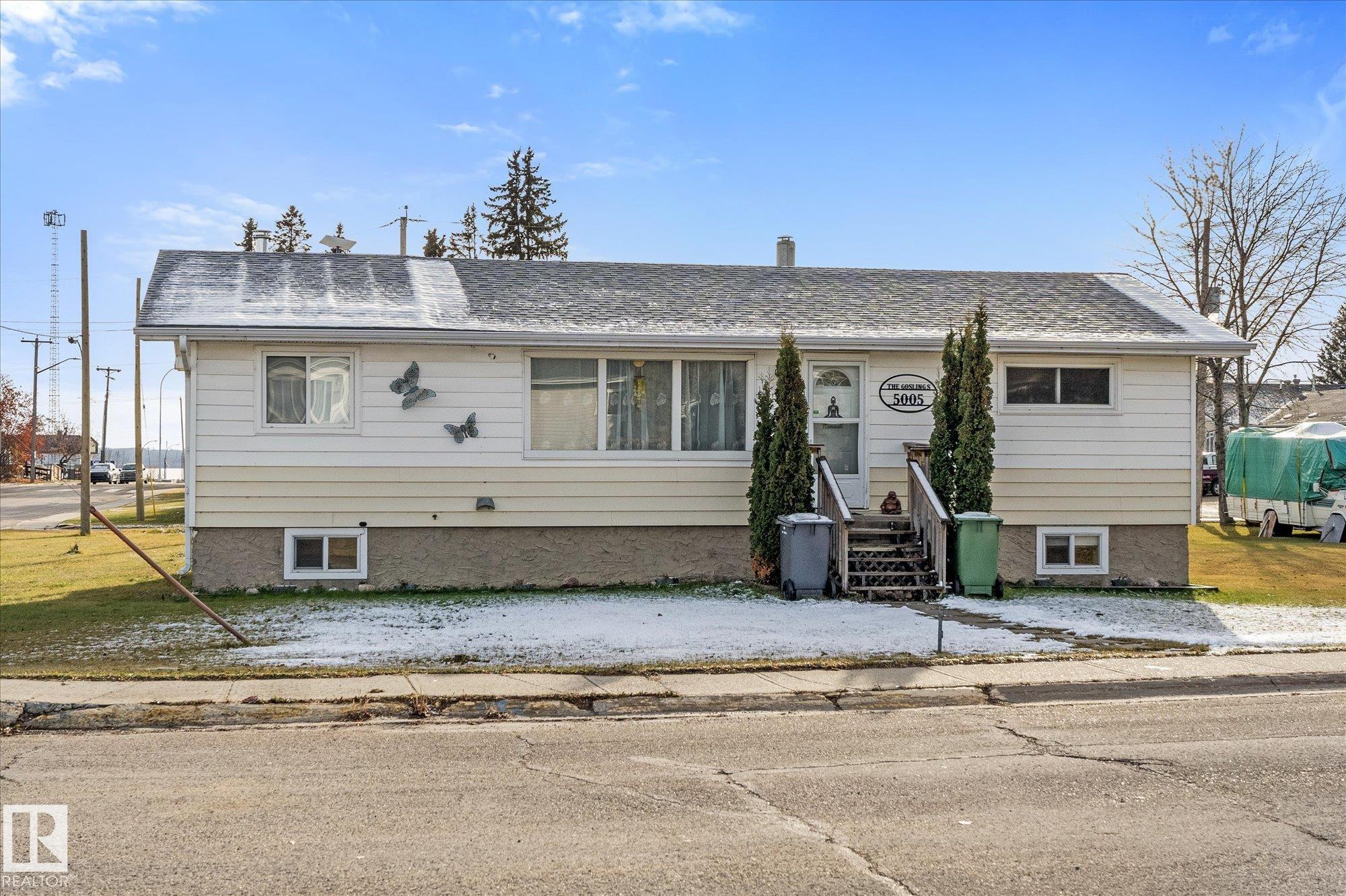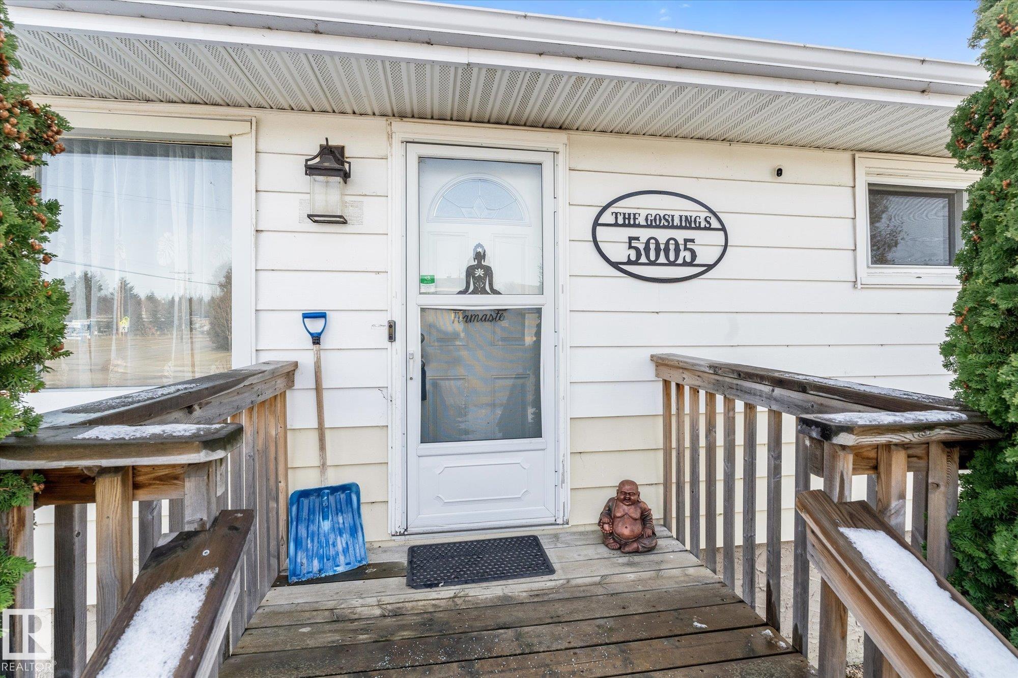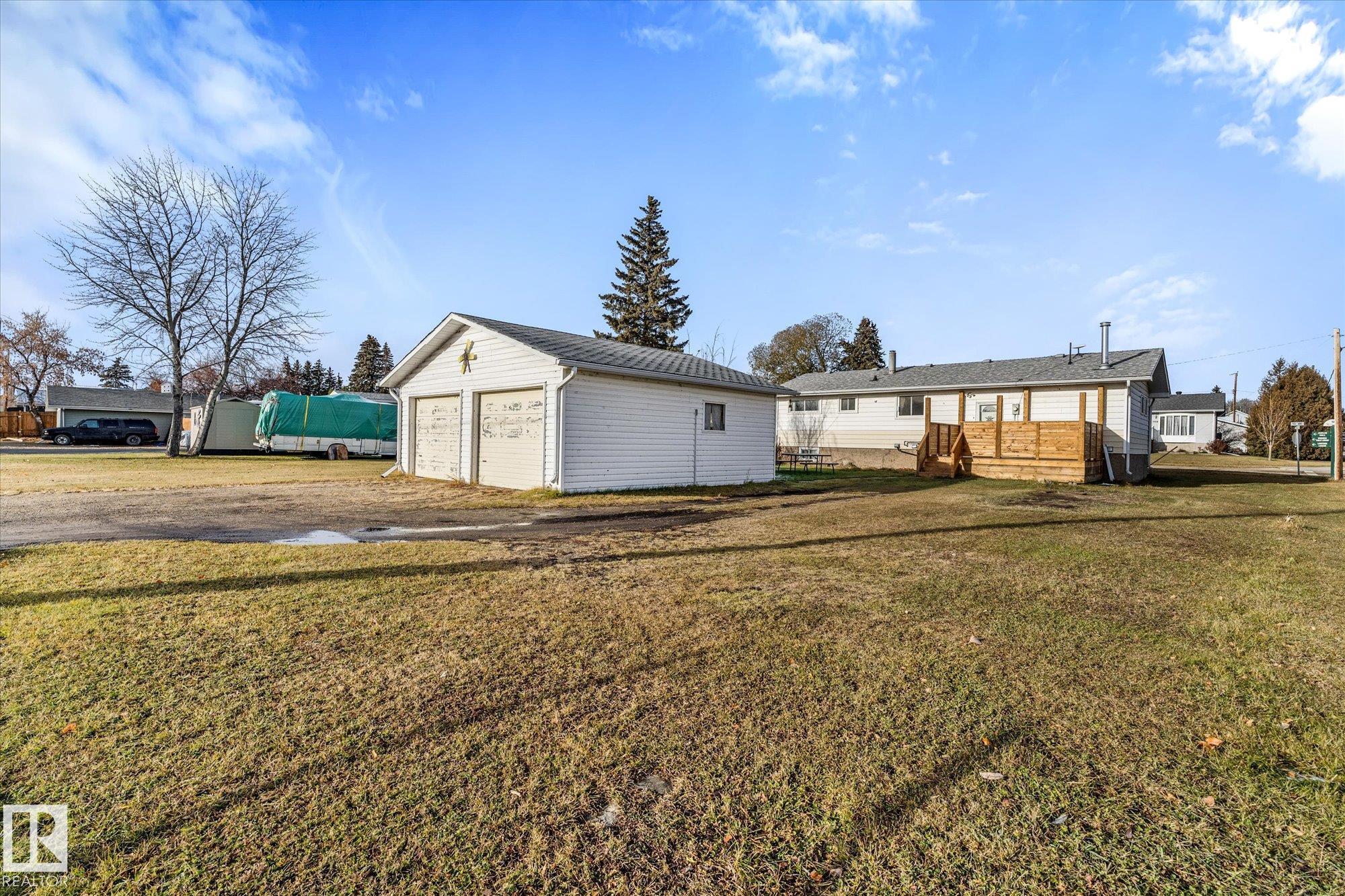 Welcome to the heart of Wabamun!! This FIVE bedroom, TWO bathroom home is ready for your personal touch!! Here is your opportunity to live in Wabamun in a very convenient location - walkable to everything you?ll need! Location, Location, Location!!! Catch lake views from the kitchen sink and back yard. The main floor offers two guest bedrooms, a full bath, spacious living area and eat in kitchen. The primary bedroom is on the main floor and has a walk in closet and ensuite. Downstairs has two more bedrooms, the start of a THIRD bathroom, and is awaiting your finishing touches. Keep cosy this winter with the wood burning stove!! The yard is spacious, has a double detached insulated garage with alley access, and a newer rear deck for enjoying ALL the sun!!