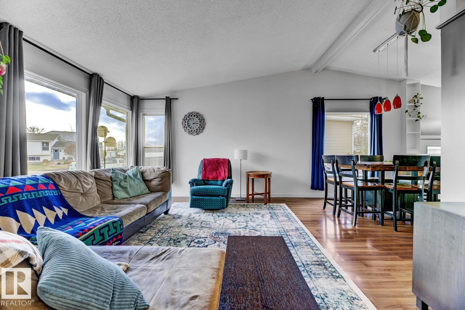 A Rare Find! A family bungalow that offers 5 Bedrooms, 3 Bathrooms, An oversized Double Car Garage, a spacious yard, a massive driveway that offers loads of parking! Welcome home to 4806 42 Ave that is located on a cul-de-sac perfect for kids to run and play. There is plenty of space for the growing family. There is a spacious dining area, living room on the main floor and a massive rec room in the basement. The location is great as you are near schools, shopping & restaurants. The primary bedroom is spacious with a walk in closet and ensuite. The main floor offers 3 bedrooms in total and the basement has 2 additional bedrooms. The main floor offers a vaulted ceiling over the kitchen, dining and living room; creating a bright and inviting atmosphere. Off the kitchen is a patio perfect to BBQ and hosting company. The driveway is newer and in great shape. There is a high efficiency furnace, on demand hot water & central AC. This is a must see!