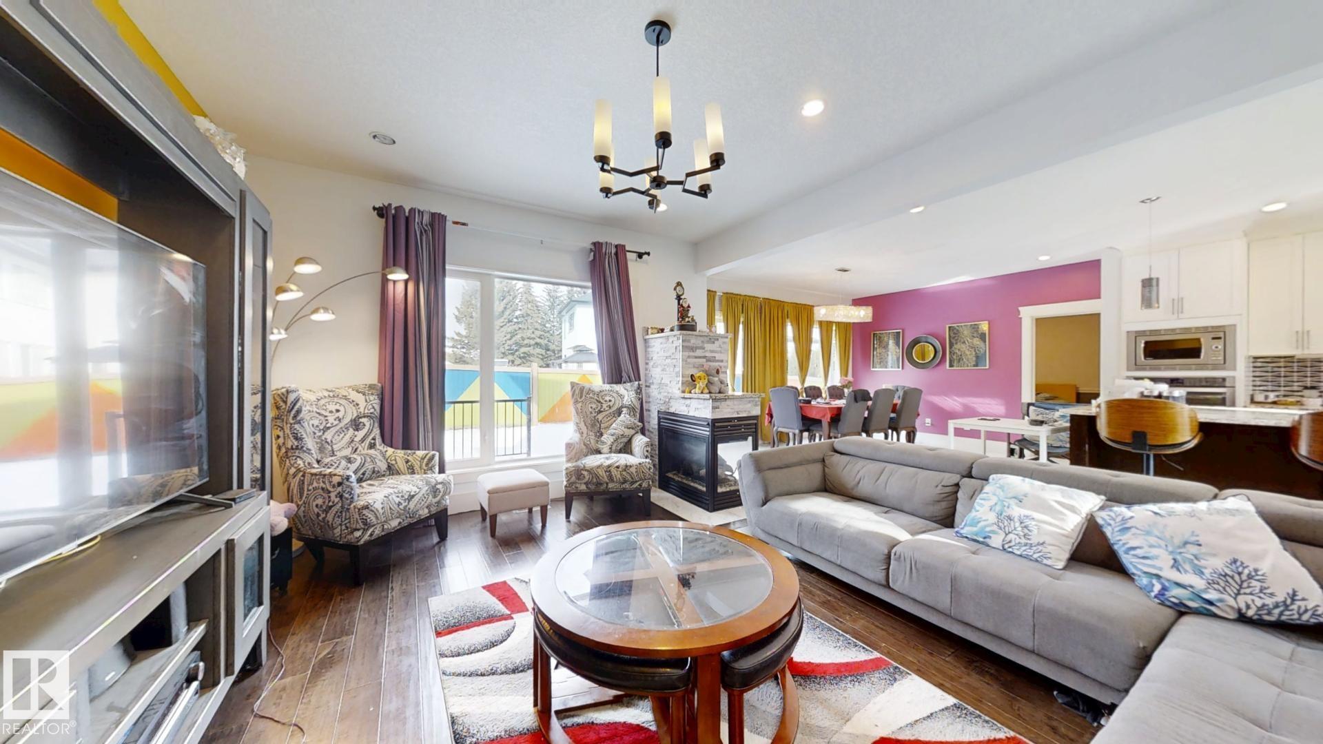 This stunning custom-built 7BDR/6BTH home offers 3,328 sq ft of above-grade living space along with a triple attached garage. Crafted with a focus on luxury and functionality, the open-concept design welcomes you with soaring ceilings, a modern glass-railing staircase, elegant tile work, and bright lighting. The spacious main living area is ideal for both family living and entertaining, highlighted by a striking see-through custom fireplace. The gourmet kitchen showcases a large granite island, high-gloss and rich wood cabinetry, and premium stainless steel appliances. A main-floor bedroom with a 4-piece ensuite and an additional 3-piece bath provide comfort and flexibility. The upper level features a large bonus room, laundry with washer/dryer, and three additional bedrooms. The luxurious master suite offers a spa-inspired 5-piece ensuite with Jacuzzi tub, standing shower, and a custom walk-in closet. The fully finished basement with separate entrance includes 3 bedrooms, 2 bathrooms with open-concept.
