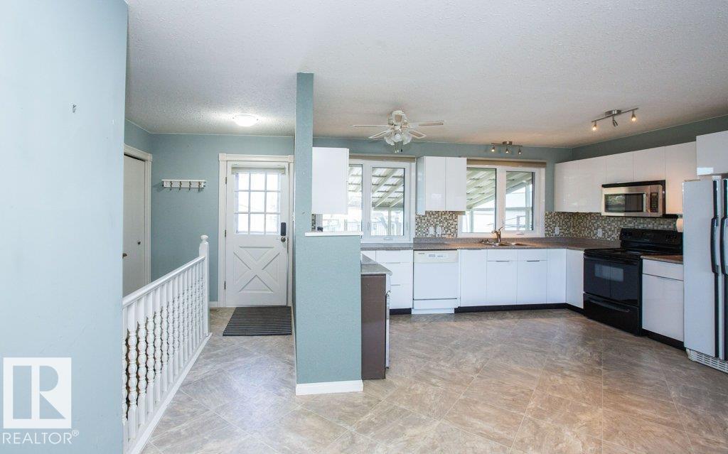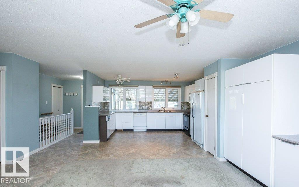 Excellent Family Home on a HUGE lot in Clyde! Pride of ownership throughout this well-kept home. Many upgrades include, kitchen cabinets, attic insulation, flooring, shingles, new windows. Features an open kitchen and living room with lots of counter space, 3 bedrooms up, and a primary with 2-pc ensuite and walk-in closet. One main-floor bedroom is currently used for laundry but can easily be converted back. Basement includes a large family room, bedroom/hobby room, plenty of storage, and a 2-pc bath (with drain for future shower/tub). Enjoy the enclosed deck, fenced yard, and 30?x20? double garage with workshop area. Close to Clyde?s great amenities?skatepark, playgrounds, curling rink, and more. Only 10 mins to Westlock, 30 mins to St. Albert.