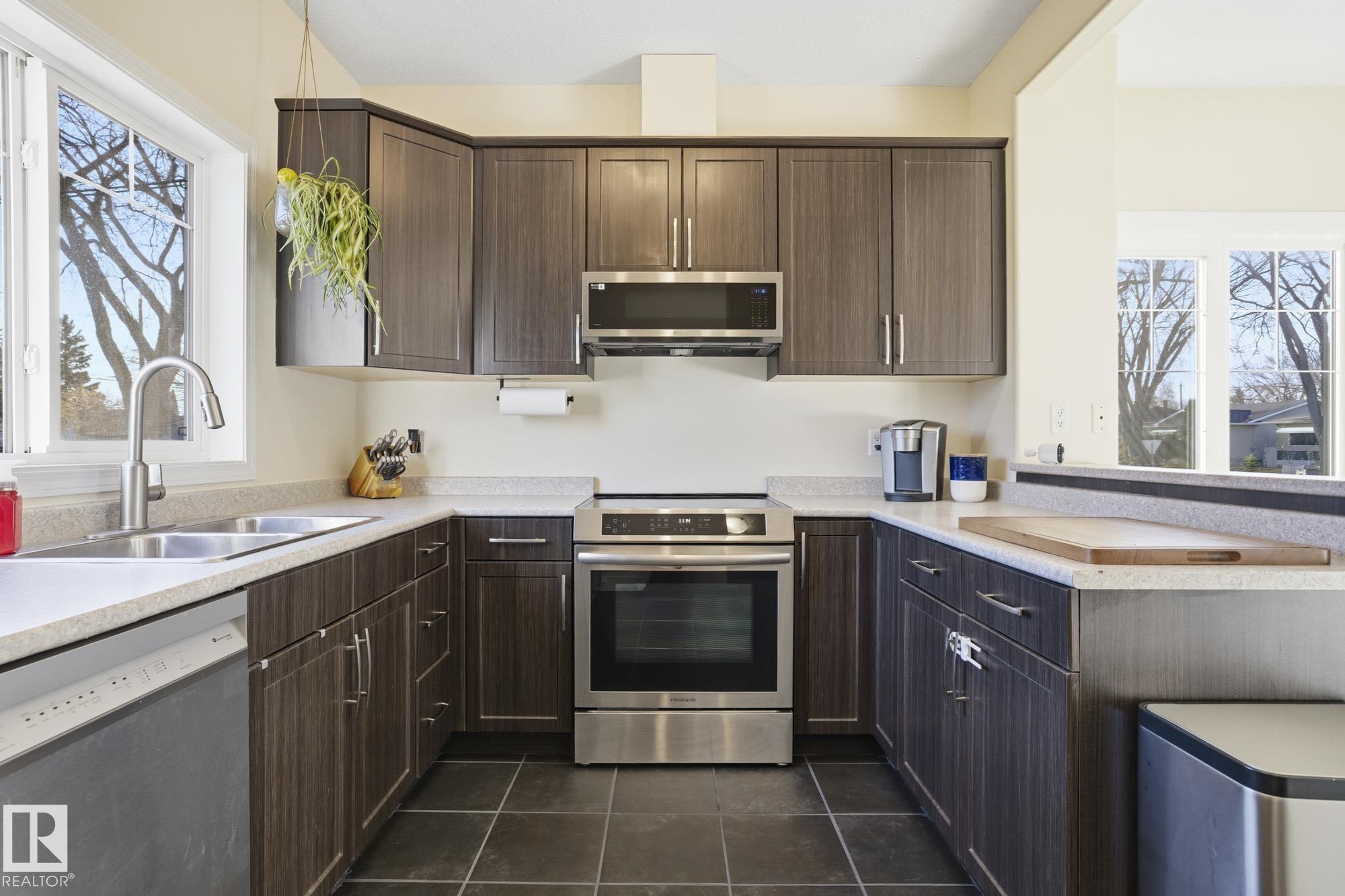 PLATINUM PROPERTY!! Bright & beautifully maintained half duplex on a sunny corner lot with RV parking & single detached garage. The inviting main floor features a cozy gas fireplace, U-shaped kitchen with updated appliances & plenty of natural light. Conveniently located near the Portuguese Bakery, Costco & other great shops, this home offers comfort & convenience in one great package. Upstairs you'll find 3 bedrooms including a primary suite with walk-in closet & 4-pc ensuite. The finished basement adds a rec room, laundry area & bedroom with 3-pc ensuite?perfect for guests or teens. Step outside to a large deck & hot tub?ideal for entertaining or relaxing at the end of the day. The spacious side yard, currently a dog run, offers sunny south exposure & potential for a garden. With RV parking, concrete curbing, tidy landscaping & a generous yard ready for summer fun, the main floor freshly painted and newer appliances this home is truly move-in ready?just unpack & enjoy!