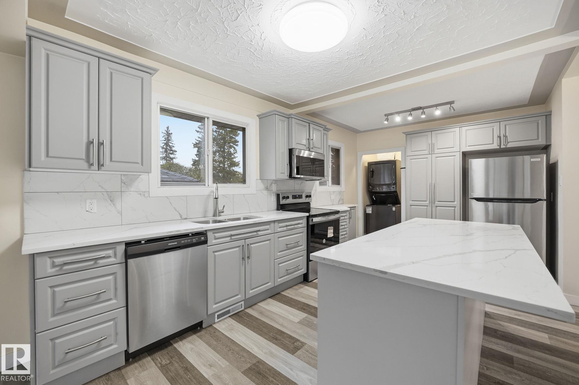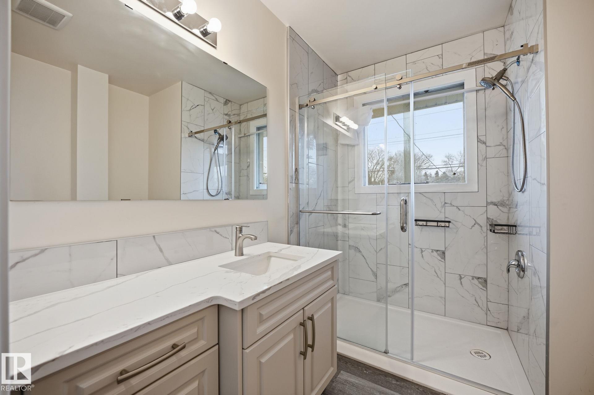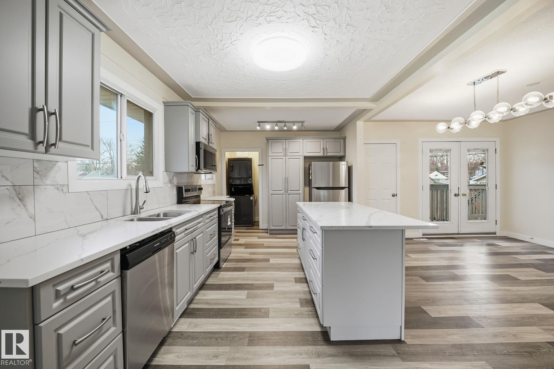 Welcome to this beautifully refreshed bungalow in the heart of Holyrood! Offering over 1,300 sq ft of bright, open living space, this home has been fully updated on the main floor with a spacious, modern kitchen featuring endless counter space, stylish finishes, and a large dining area perfect for family gatherings. The layout includes three generous bedrooms, highlighted by a primary suite with a private 3-piece ensuite, plus another fully renovated 3-piece bathroom. The main level blends comfort and functionality with newer flooring, lighting, and fresh finishes throughout. Downstairs, the basement has been stripped and is almost ready for a potential future suite or family basement space, complete with updated electrical, two furnaces, and a new hot water tank?offering the perfect blank canvas for added income or extended family living. A newer roof on both the home and double garage adds peace of mind, while the location provides quick access to schools, shopping, and Edmonton?s River Valley trails.