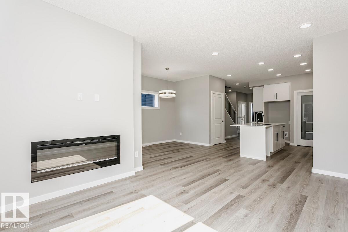 This stunning home is located in an amenity rich community and within walking distance to Spruce Grove?s new civic center, with quick and easy access to Highway 16. Side entrance ideal for future potential development. The home features an open concept main floor with 9? ceiling and the designer L-shaped kitchen, large island and corner walk-in pantry. Quartz countertops in the kitchen and all bathrooms. Large great room which includes a 50? linear electric fireplace. Basement ceiling upgraded to 9? for a more spacious feel. 2 windows and 3-pc rough-In for future bathroom. Built with main floor flex room at the front of the home, perfect for a home office. You will find metal spindle railing on the main floor. The second floor has a large primary bedroom with walk-in closet and 4-piece ensuite that includes dual sinks and a stand-up shower. This home also has two secondary bedrooms, central bonus room, full bathroom, and a conveniently located laundry upstairs.