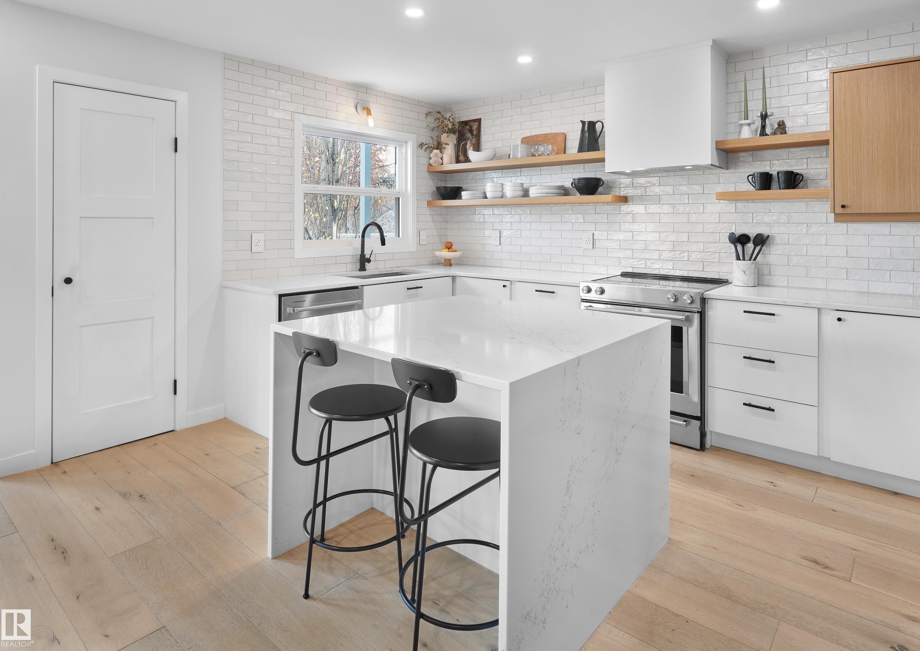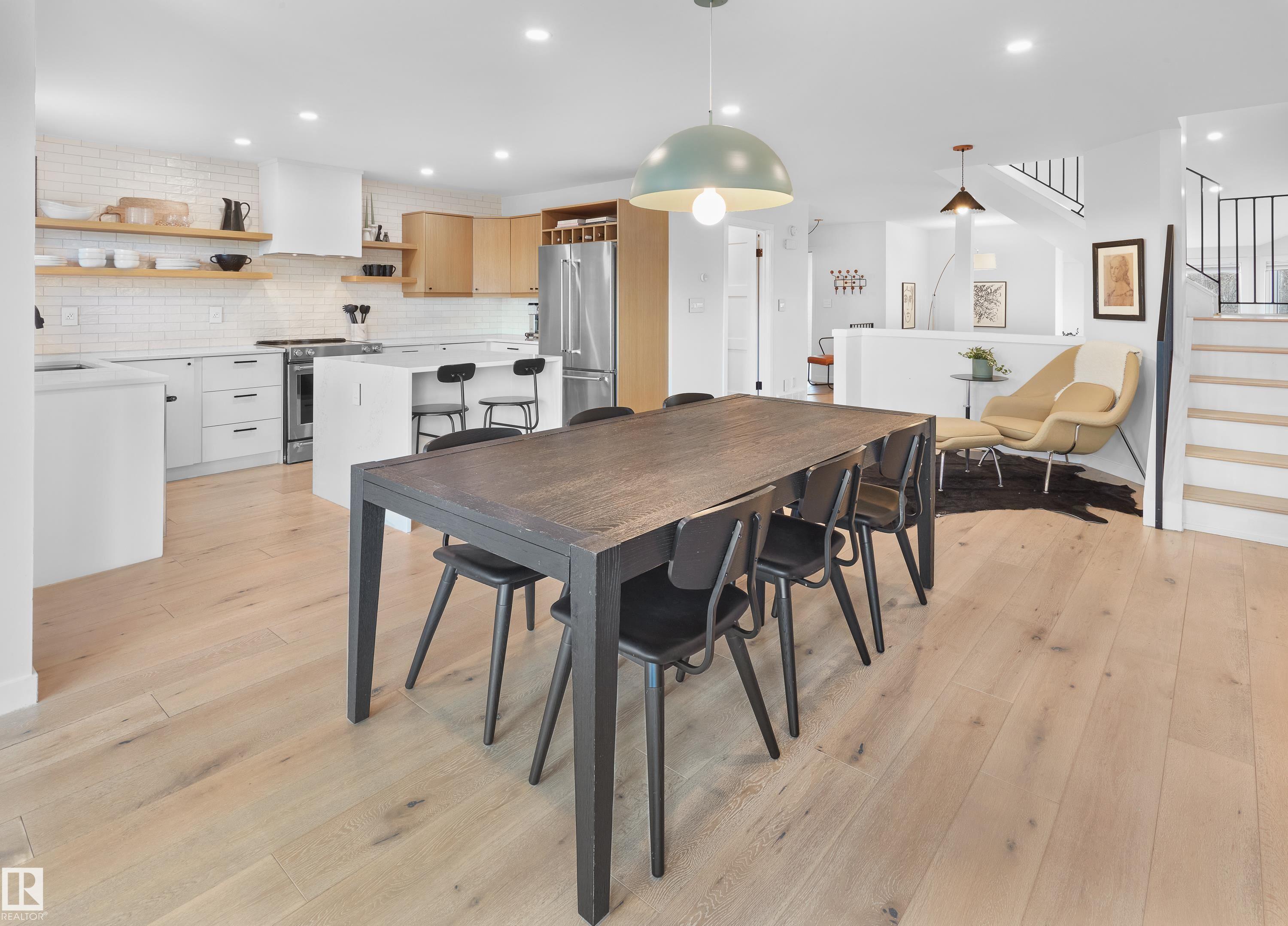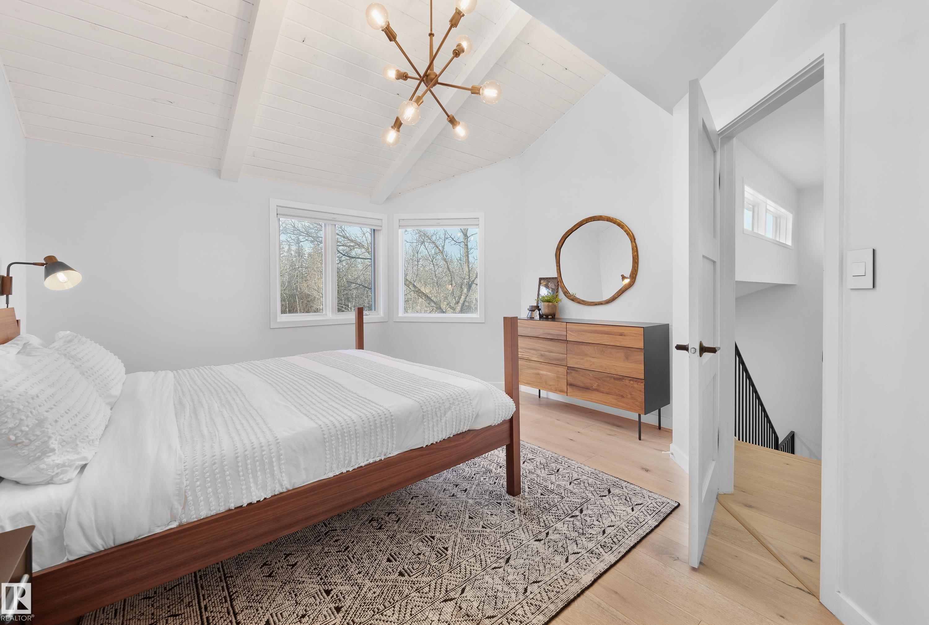 Fully renovated ravine-side living in the heart of Strathcona! Facing trees with walking trails just steps away, this 4-bed, 2.5-bath home blends modern updates with an unbeatable location. The main floor offers an open-concept layout with vaulted ceilings, a cozy wood-burning fireplace, and a spacious dining area that flows to a large deck overlooking the ravine. The renovated kitchen features quartz counters and stainless steel appliances. Upstairs, you?ll find a generous primary bedroom with vaulted ceilings and a massive semi-ensuite full bathroom, plus two additional bedrooms. The fully finished walkout basement includes a rec room, wet bar, full bathroom, 4th bedroom, and access to the rear attached garage. Key upgrades include roof (2021), siding (2021), a newer furnace, & HWT (2024), and a full interior renovation. All of this is just minutes to Downtown, Whyte Ave, the U of A, and some of Edmonton?s best parks, cafes, and restaurants. Ravine living without leaving the city!