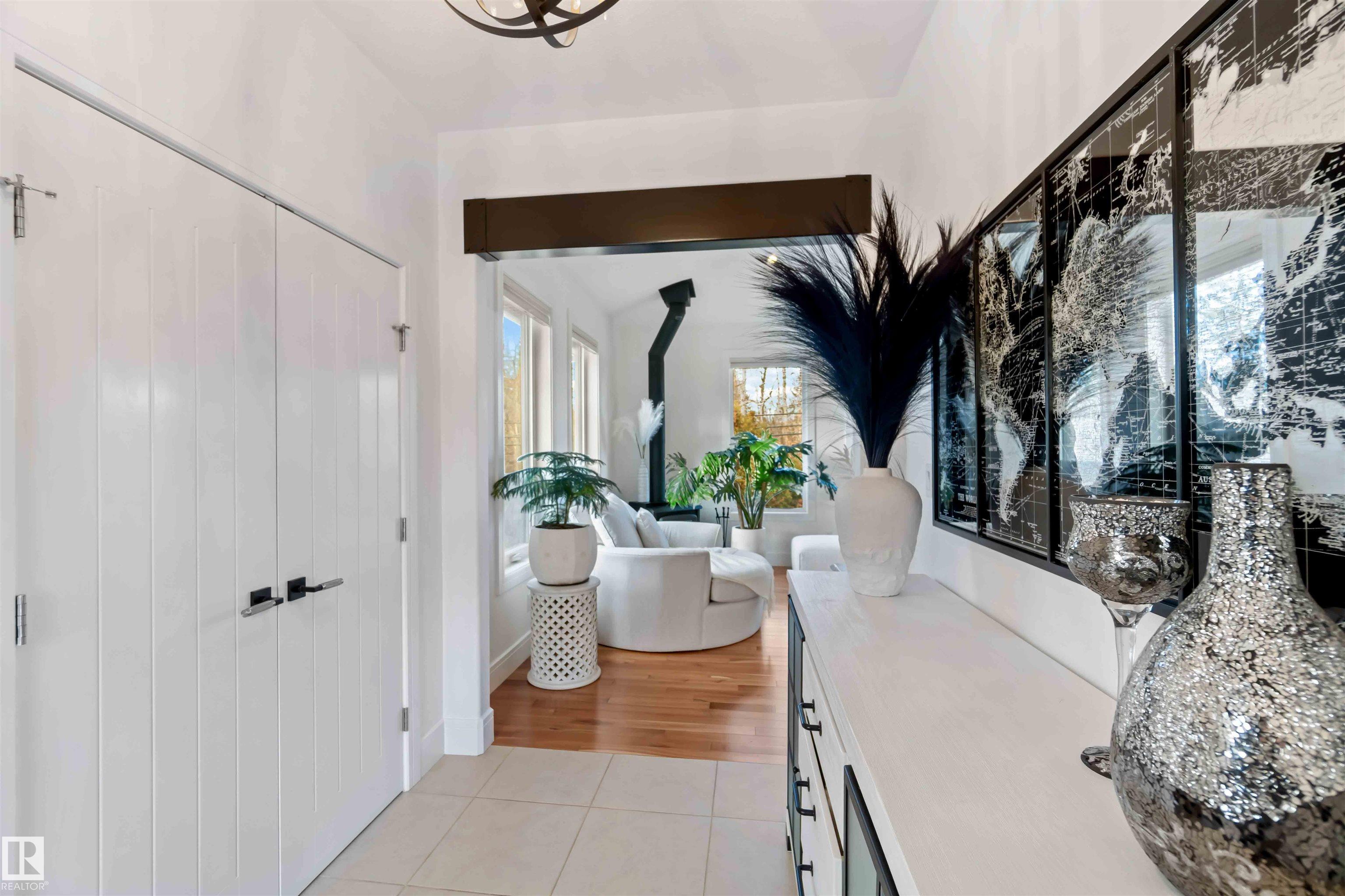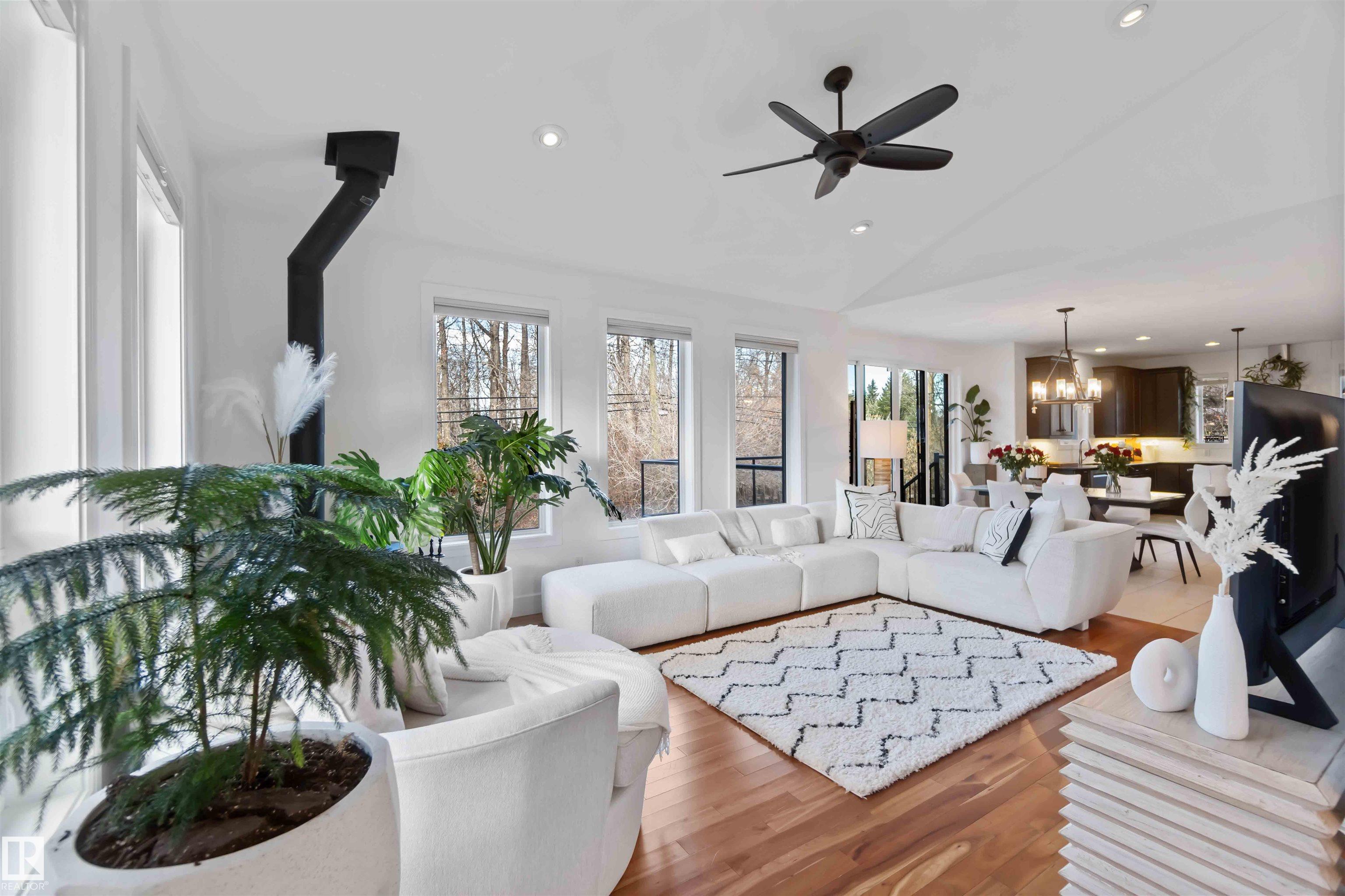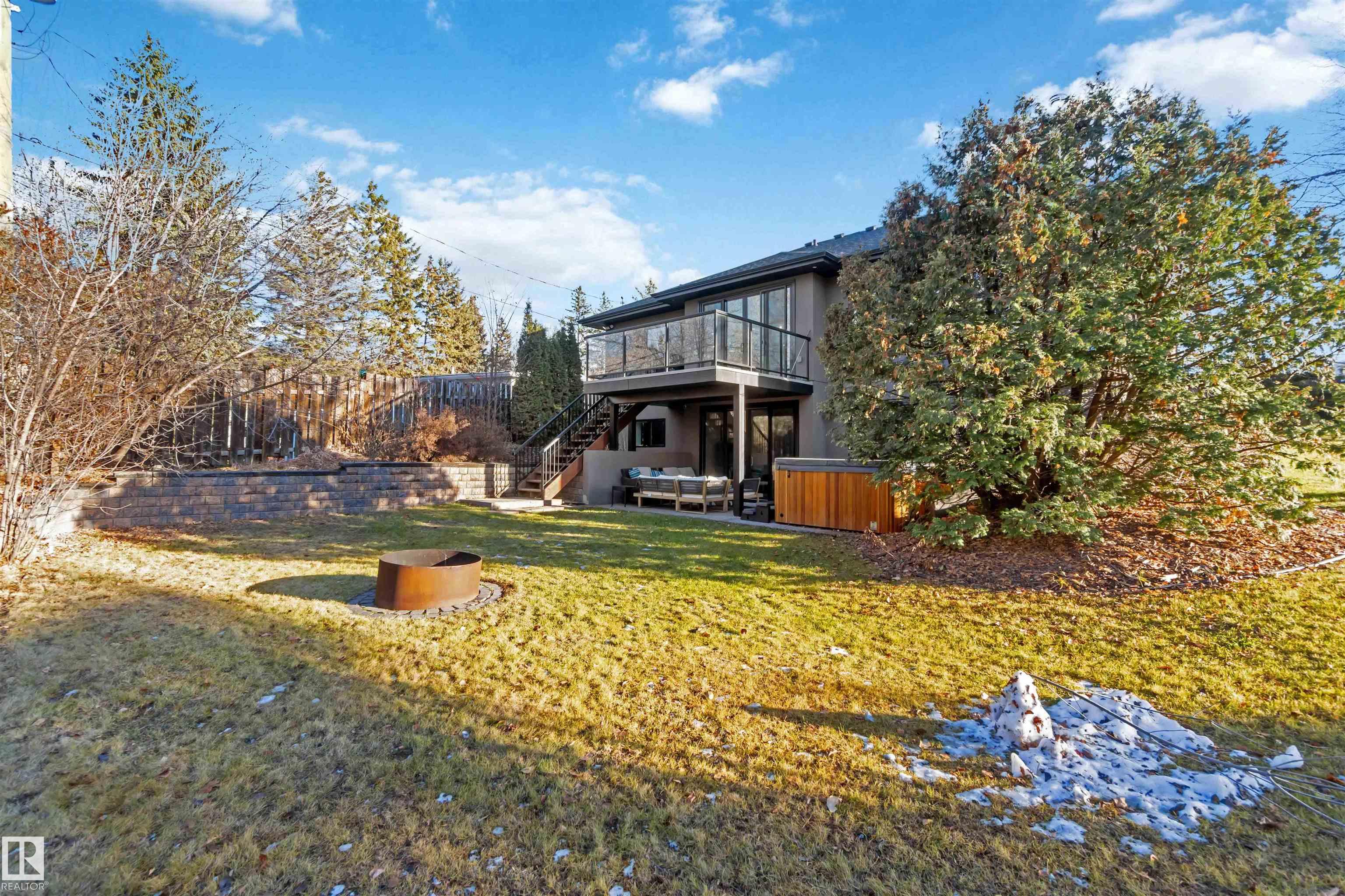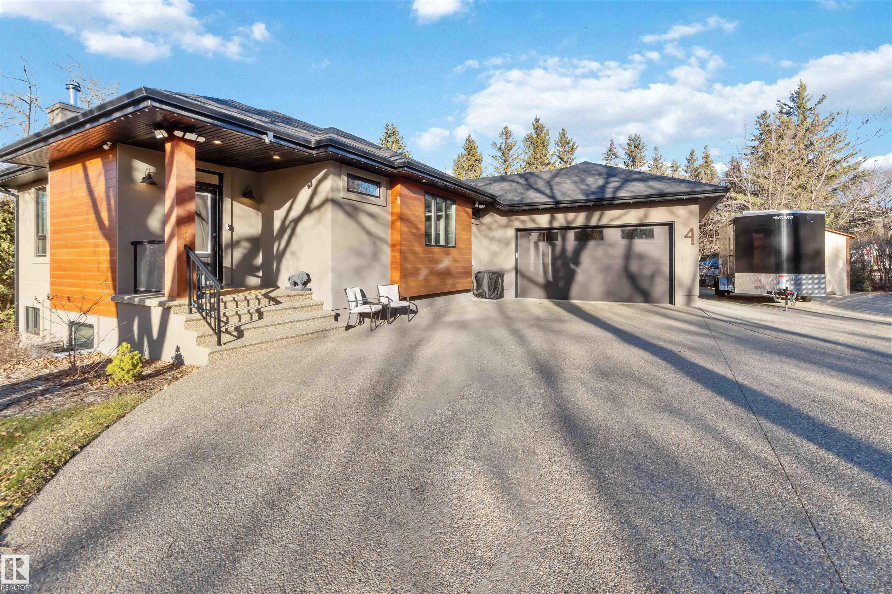 BACKING ONTO A TREED RAVINE & SIDING ONTO A PARK! Welcome to this stunning walkout bungalow in the sought-after community of Grandin, St. Albert. Perfectly situated, this home offers both tranquility & convenience with an additional park across the street. Featuring 4 spacious bedrooms & 2 full baths, including a 3pc primary ensuite with a walk-in closet, this home blends comfort & elegance. Inside, you?ll love the white walls, black doors & stunning hardwood floors that create a timeless modern look. The large kitchen, living room & dining area feature dark kitchen cabinets, massive windows, tile floors, a gas range, SS appliances, and an eating island, offering both style & functionality. The walkout lower level includes a generous recreation room, large laundry room & ample storage space. Complete with a double attached garage & an aggregate driveway, this luxury bungalow combines exceptional craftsmanship, thoughtful design & an unbeatable location with serene park views. All this home needs is YOU!