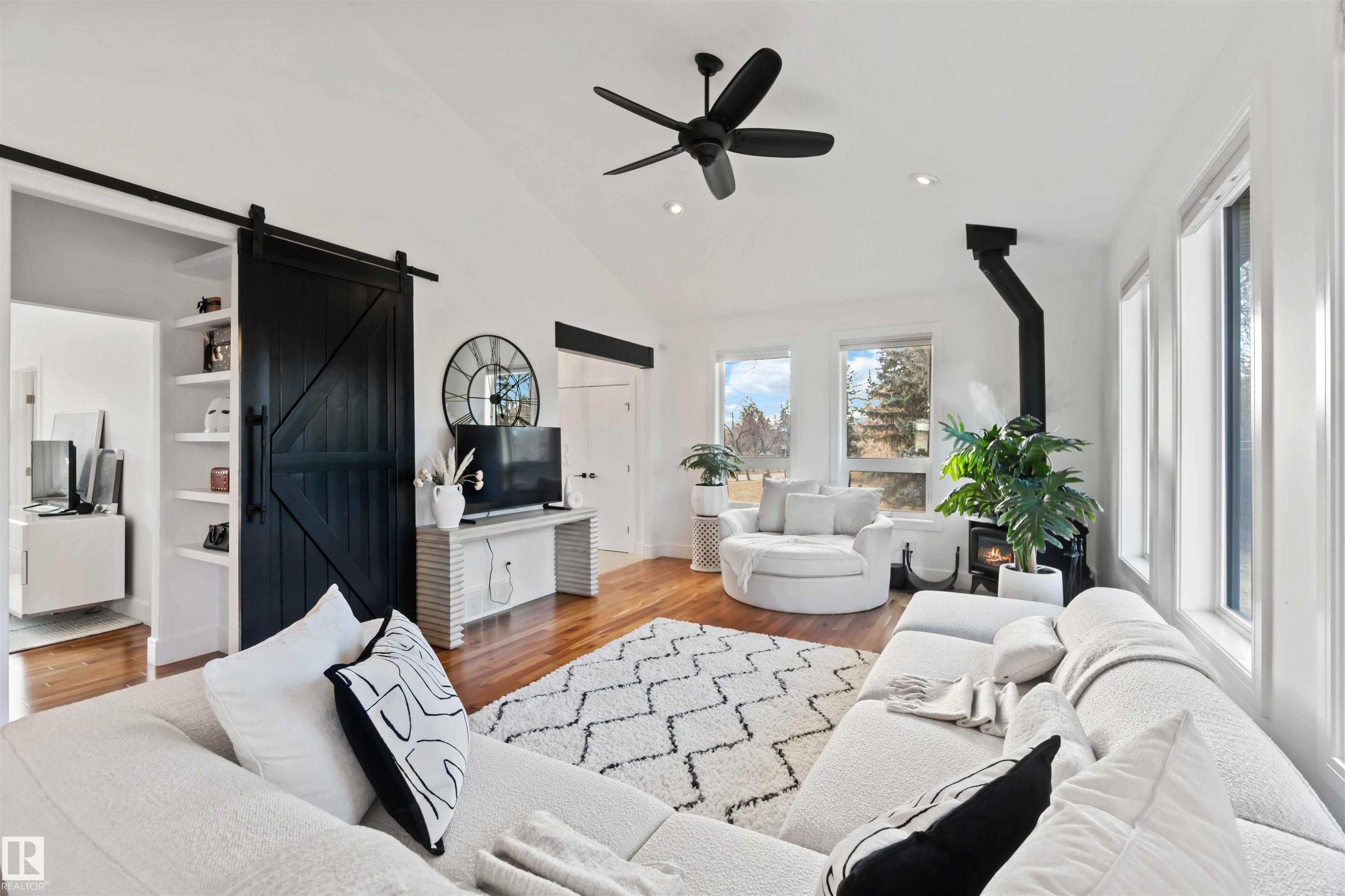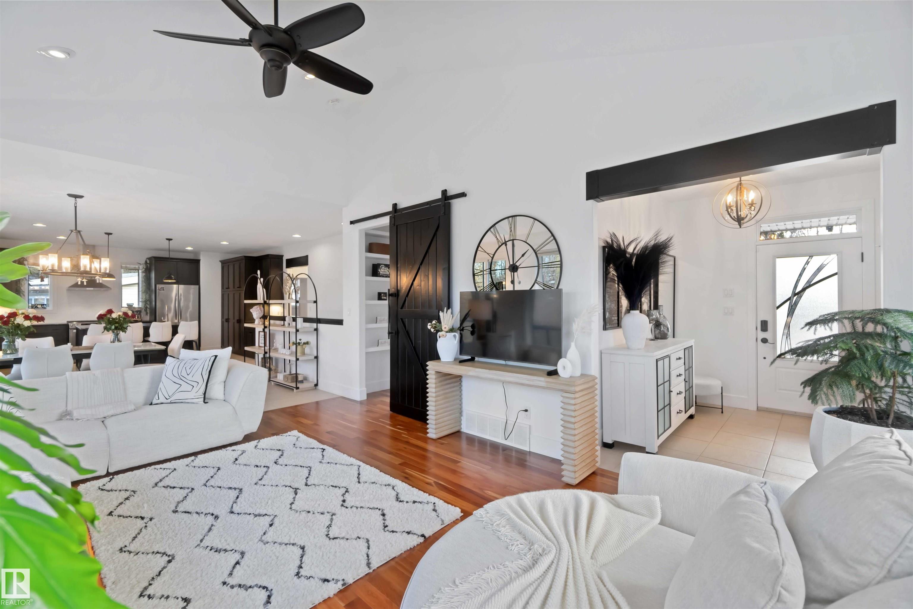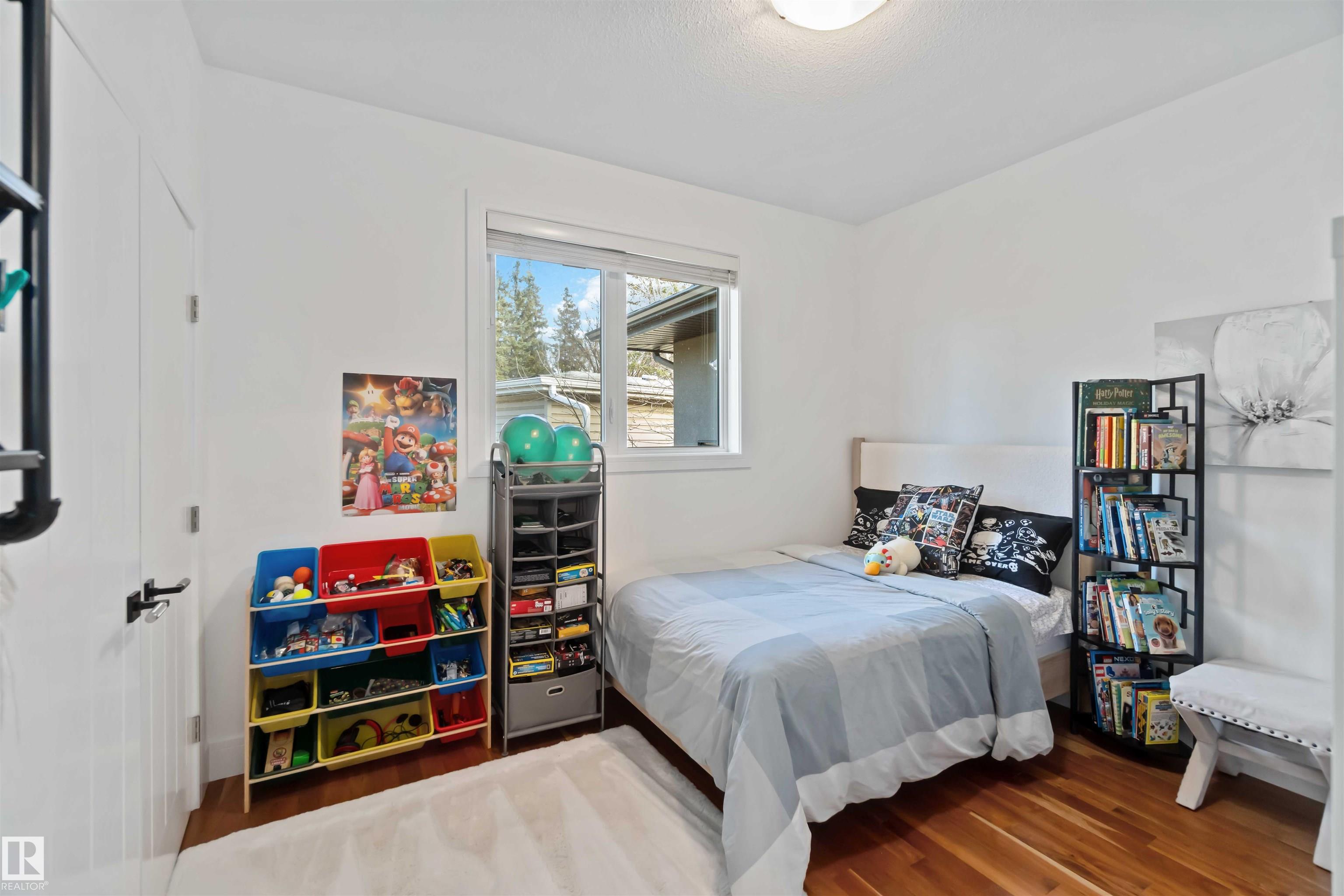 BACKING ONTO A TREED RAVINE & SIDING ONTO A PARK! Welcome to this stunning walkout bungalow in the sought-after community of Grandin, St. Albert. Perfectly situated, this home offers both tranquility & convenience with an additional park across the street. Featuring 4 spacious bedrooms & 2 full baths, including a 3pc primary ensuite with a walk-in closet, this home blends comfort & elegance. Inside, you?ll love the white walls, black doors & stunning hardwood floors that create a timeless modern look. The large kitchen, living room & dining area feature dark kitchen cabinets, massive windows, tile floors, a gas range, SS appliances, and an eating island, offering both style & functionality. The walkout lower level includes a generous recreation room, large laundry room & ample storage space. Complete with a double attached garage & an aggregate driveway, this luxury bungalow combines exceptional craftsmanship, thoughtful design & an unbeatable location with serene park views. All this home needs is YOU!