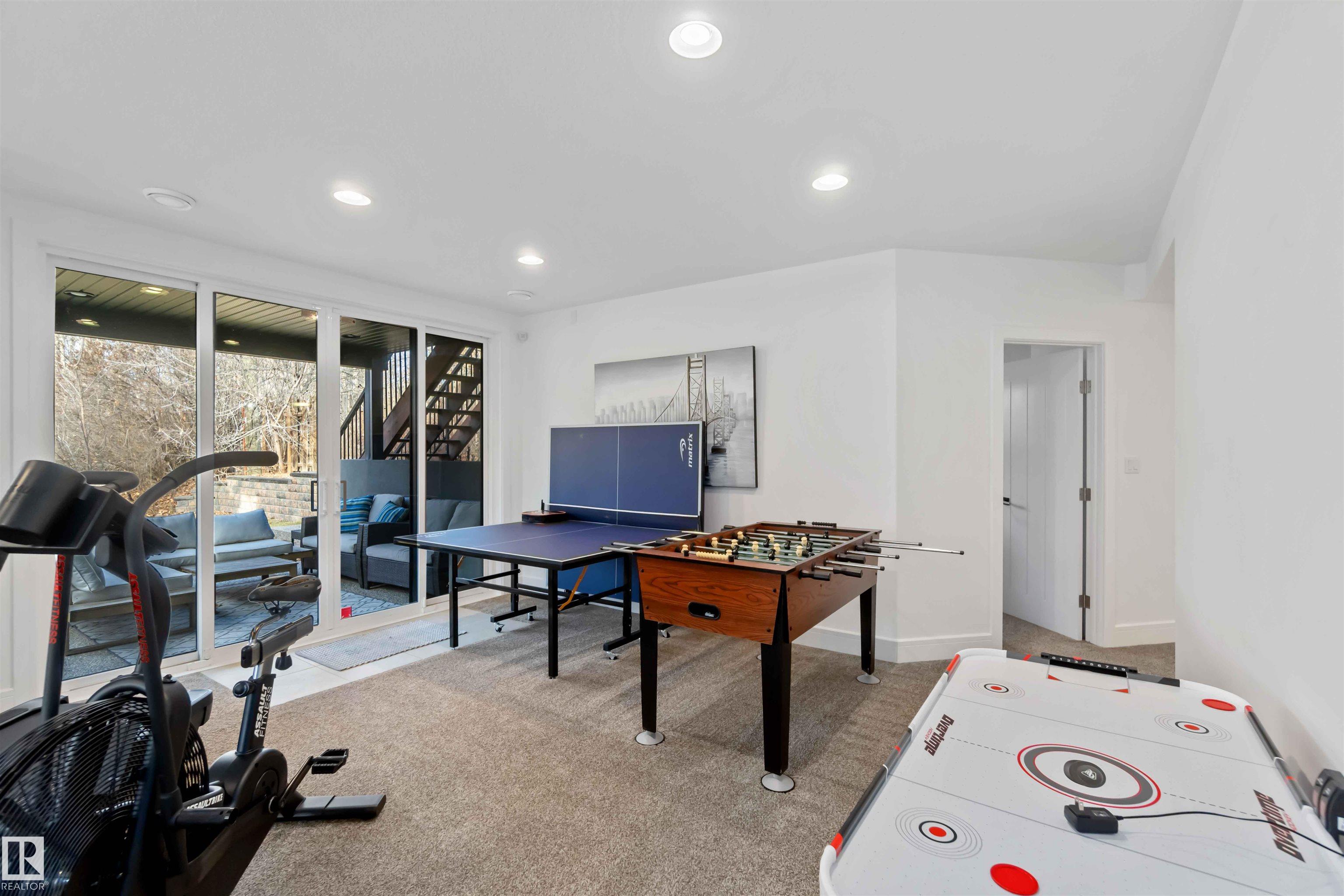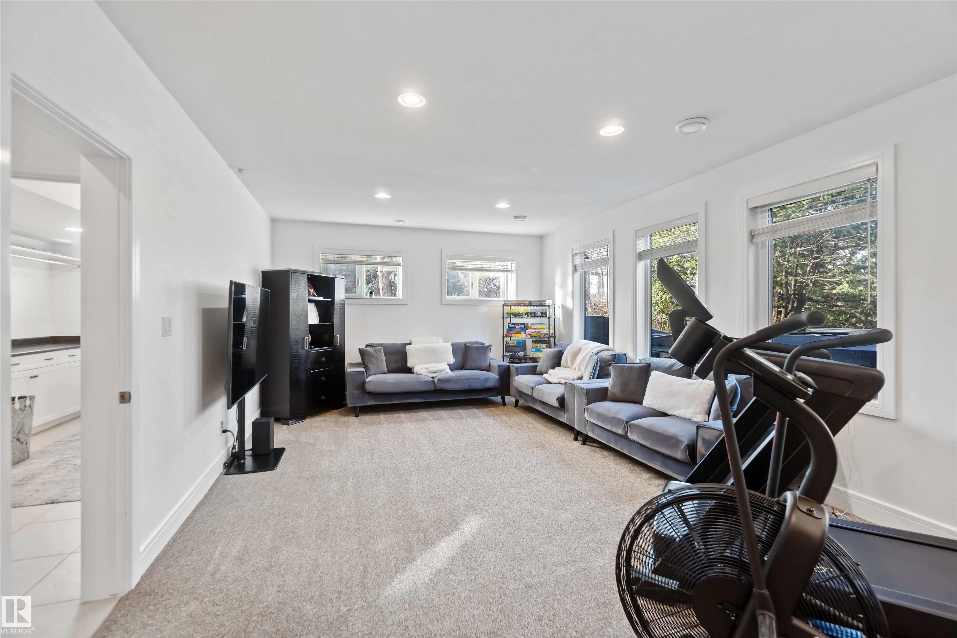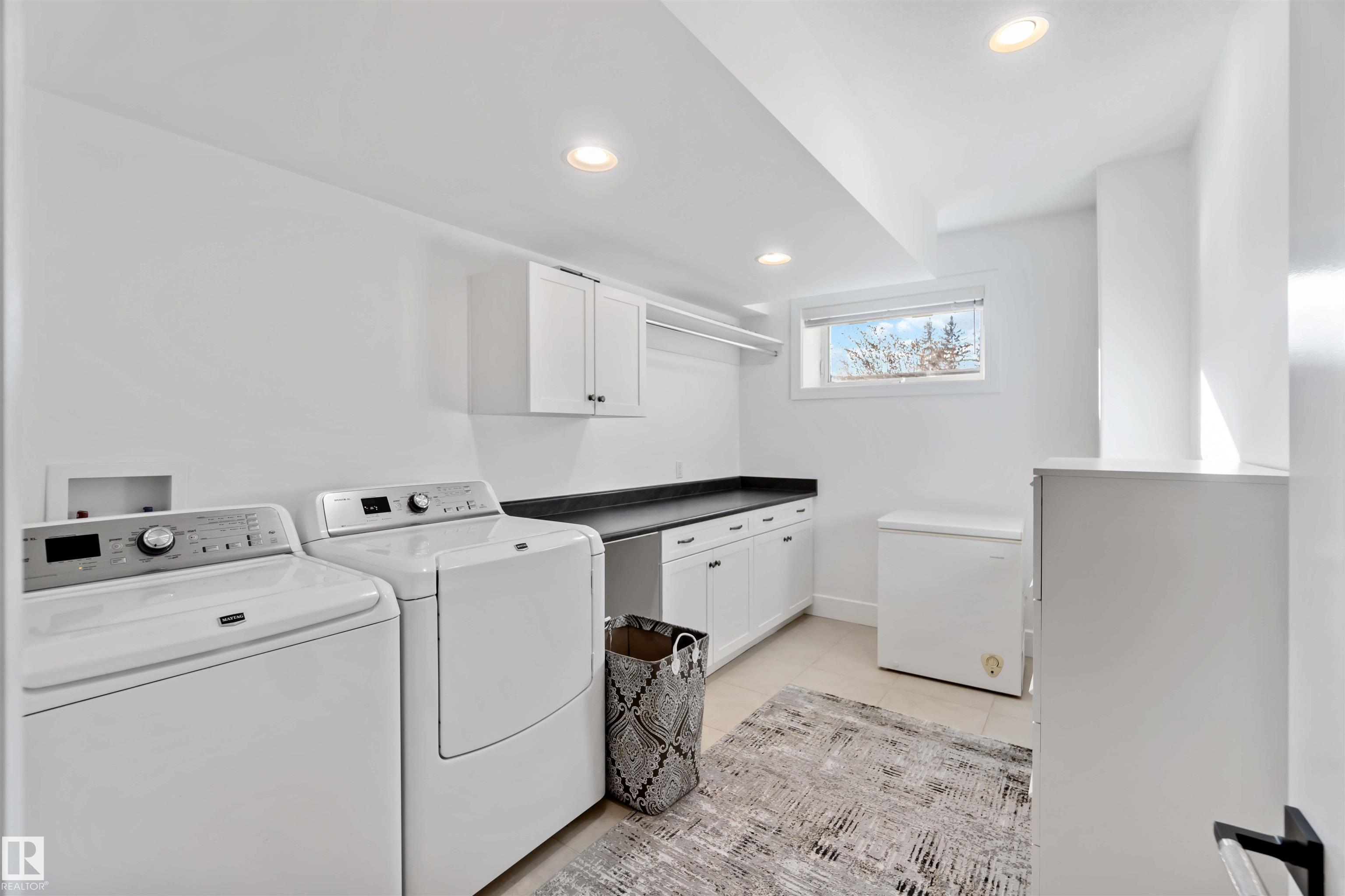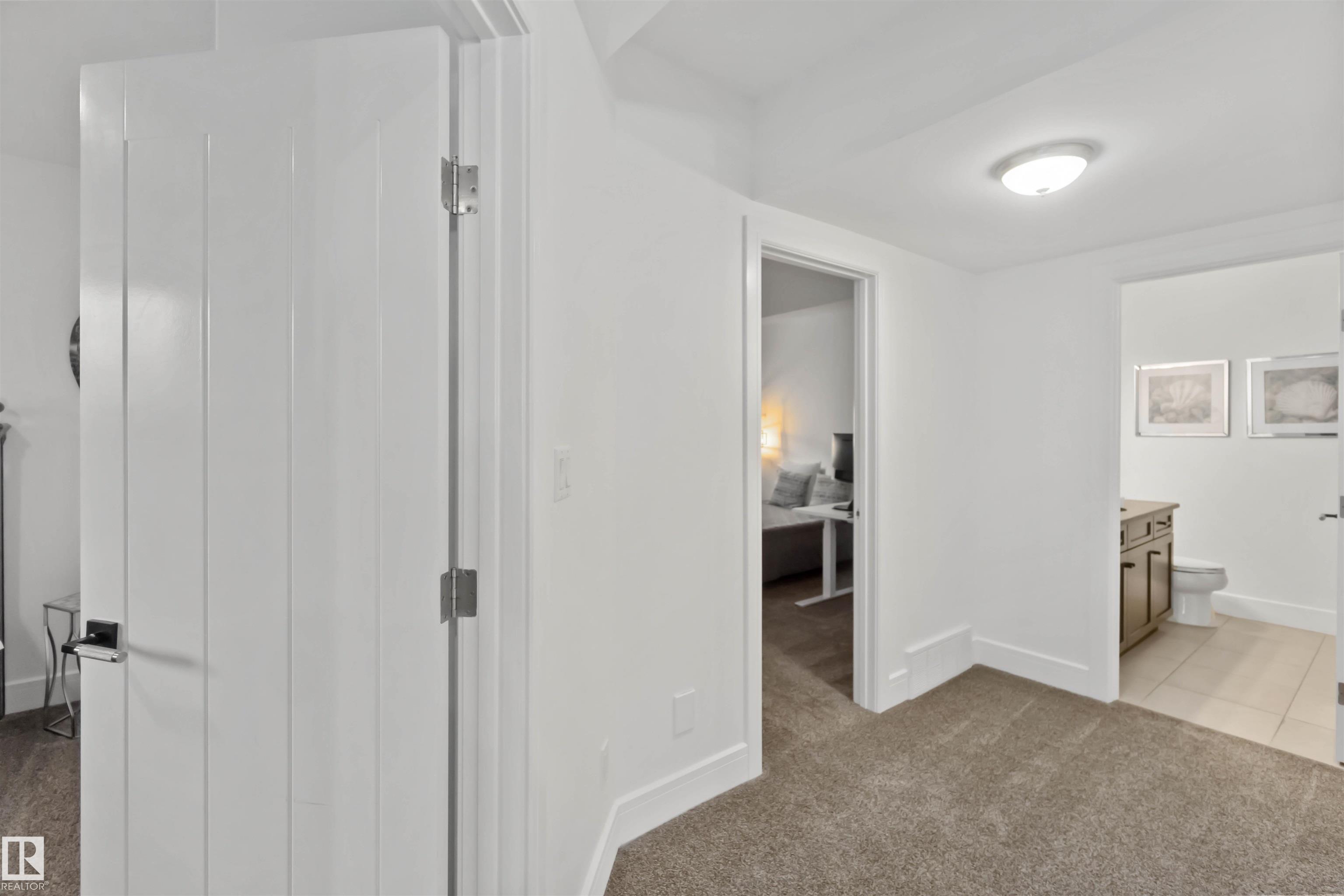 BACKING ONTO A TREED RAVINE & SIDING ONTO A PARK! Welcome to this stunning walkout bungalow in the sought-after community of Grandin, St. Albert. Perfectly situated, this home offers both tranquility & convenience with an additional park across the street. Featuring 4 spacious bedrooms & 2 full baths, including a 3pc primary ensuite with a walk-in closet, this home blends comfort & elegance. Inside, you?ll love the white walls, black doors & stunning hardwood floors that create a timeless modern look. The large kitchen, living room & dining area feature dark kitchen cabinets, massive windows, tile floors, a gas range, SS appliances, and an eating island, offering both style & functionality. The walkout lower level includes a generous recreation room, large laundry room & ample storage space. Complete with a double attached garage & an aggregate driveway, this luxury bungalow combines exceptional craftsmanship, thoughtful design & an unbeatable location with serene park views. All this home needs is YOU!