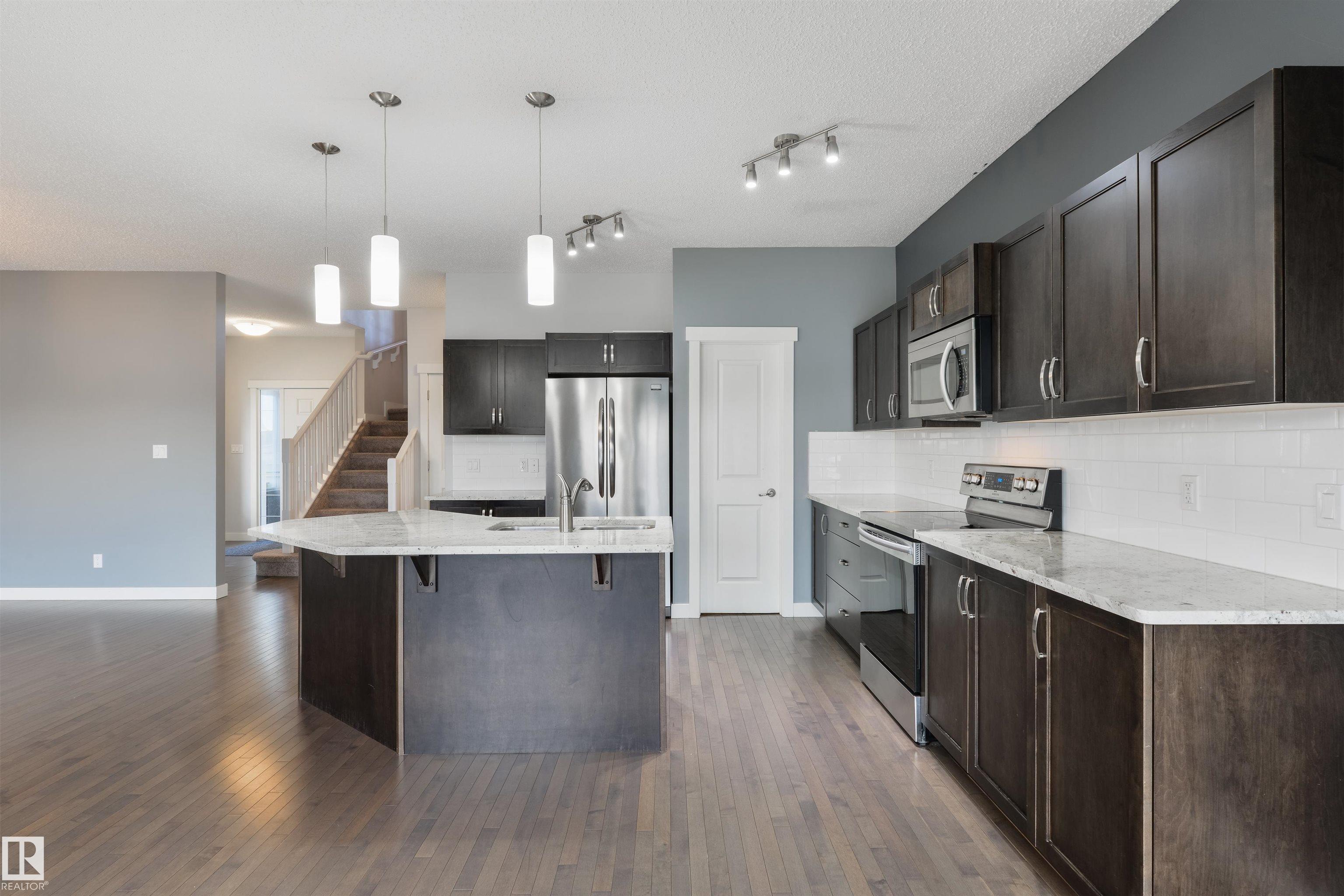 Those VIEWS! Situated on an incredible GREENSPACE lot, this home boasts one of the best floorplans available and features an open concept layout, 9? ceilings, central A/C, hardwood flooring, a great kitchen with GRANITE countertops, center island, stainless appliances, walk-through pantry, and separate dinette framed with windows to take in the views, a lovely living room with cozy gas fireplace, main-floor laundry, top-floor bonus room with 10? ceilings, and a king-sized owner?s suite with walk-in closet & 5pc ensuite to name a few. Now for the WALK-OUT basement ? it?s set up as a 2nd living space with its own bedroom, kitchen, pantry, living room, 4pc bath, & laundry ? perfect for family or live-in guests! Complete with an exterior deck, ground-level patio, built-in firepit, & heated double-attached garage, this home is ideally situated within walking distance to trails, schools, & playgrounds.