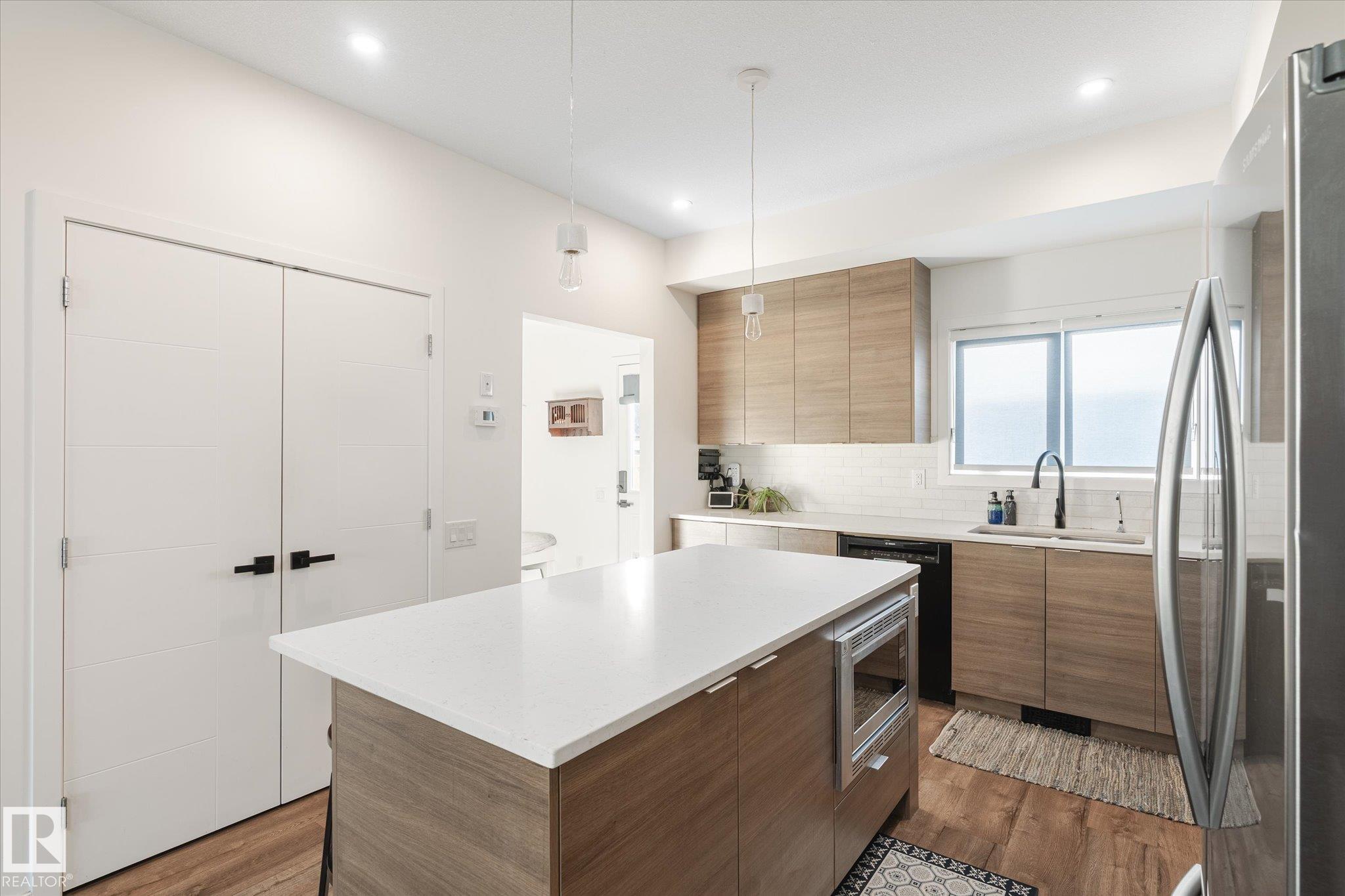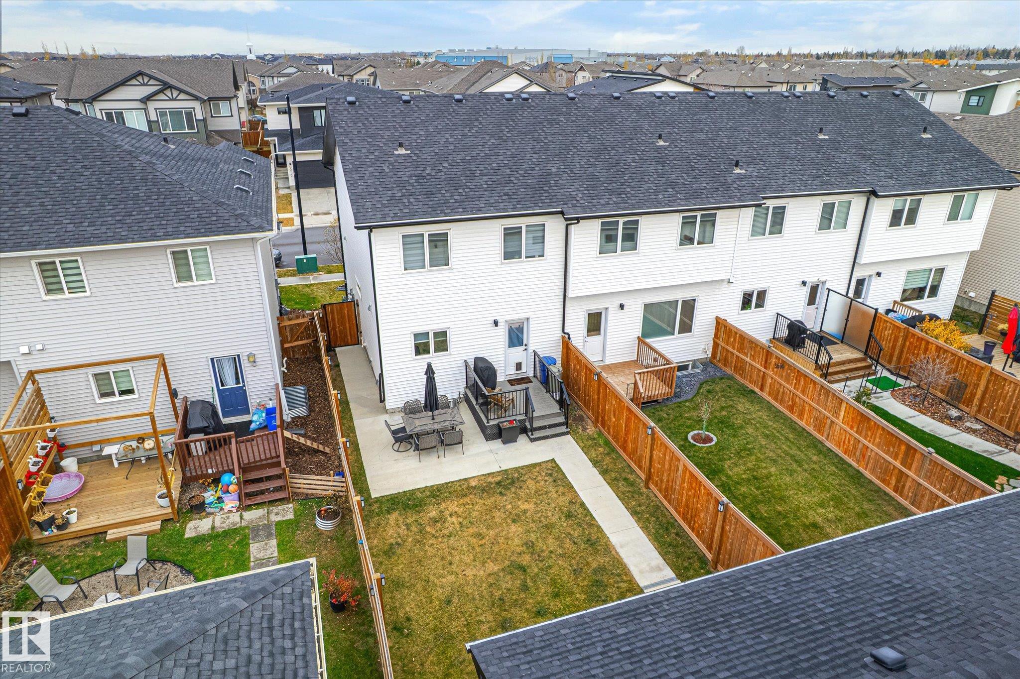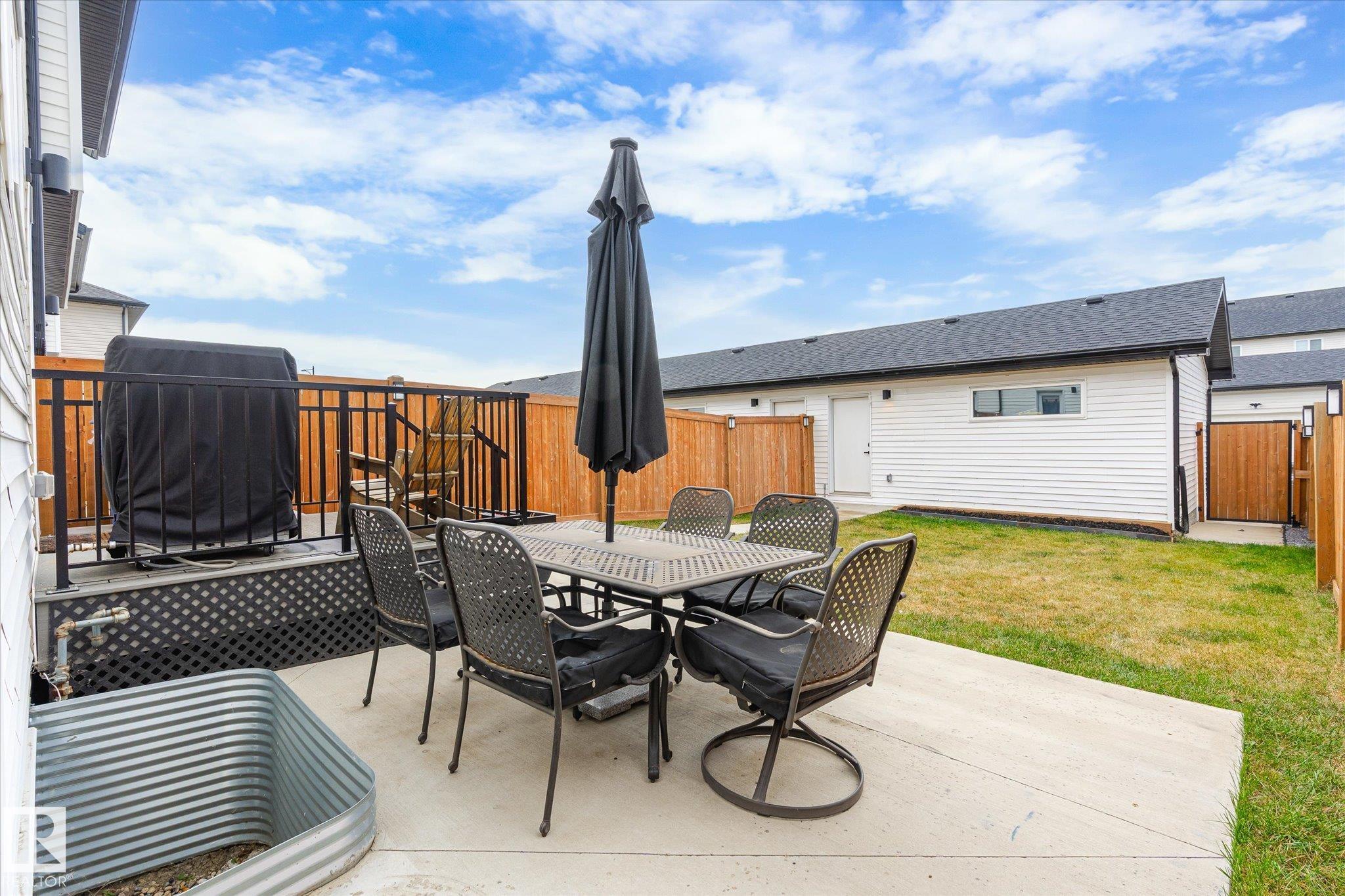 Stunning from the start! This beautiful END UNIT townhome with NO CONDO FEES is move in ready and awaits your family. Striking from the start, this curb appeal welcomes you into the 1460.21 square ft two storey beginning with the open concept main floor. This home is complete with vinyl plank floors (even upstairs!), tons of windows, and a perfectly appointed kitchen with quartz countertops and sleek cabinets to the ceiling too. The main floor also features a 2 pc bath and access to your fenced back yard with deck, lower patio pad, and of course the double garage. Upstairs is home to the main bathroom and 3 bedrooms including the primary with walk in closet, ensuite, and big windows. Located in a fabulous location near schools, parks, easy Highway 2 access, and all Beaumont has to offer.. this one is a winner!