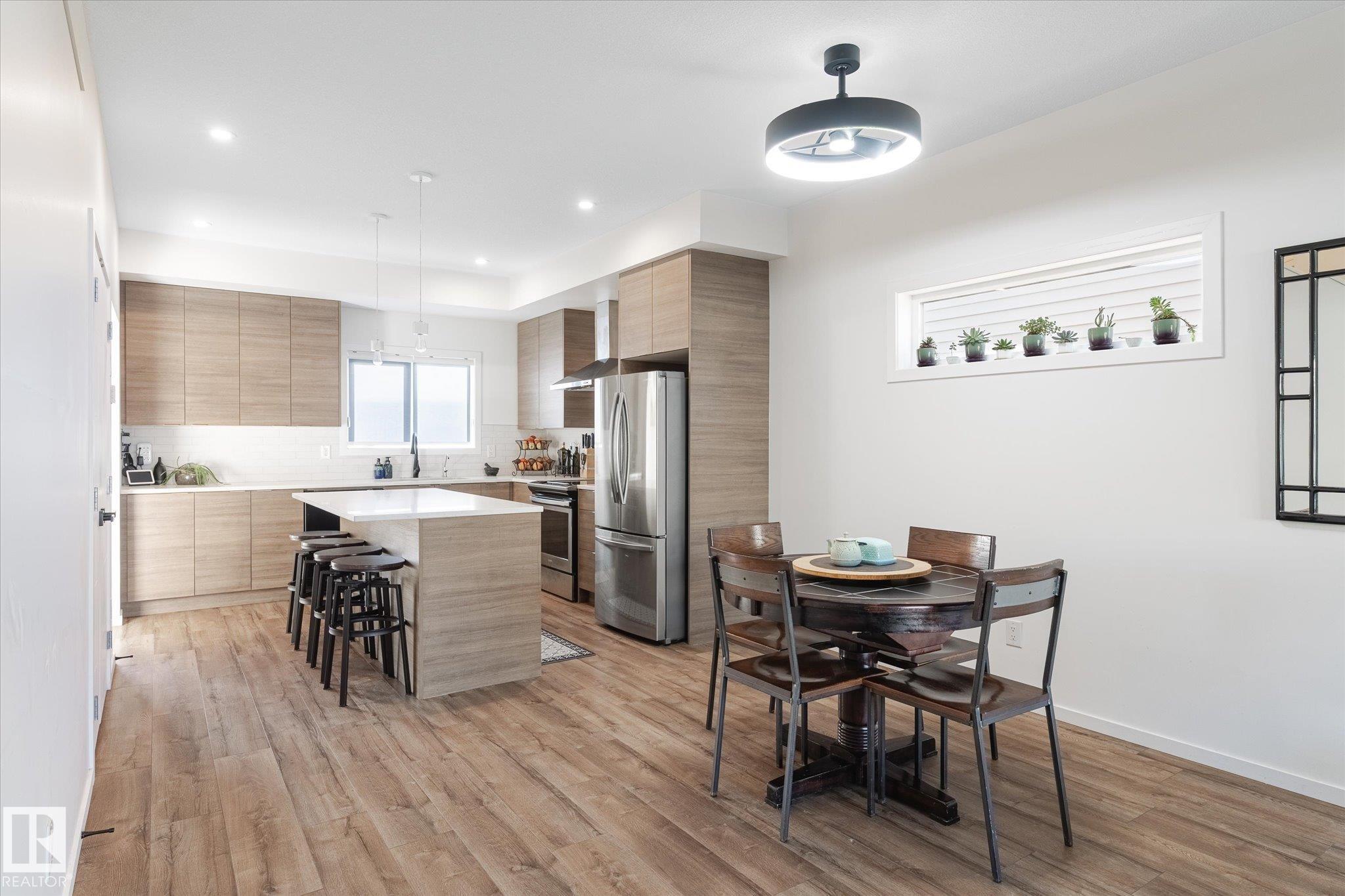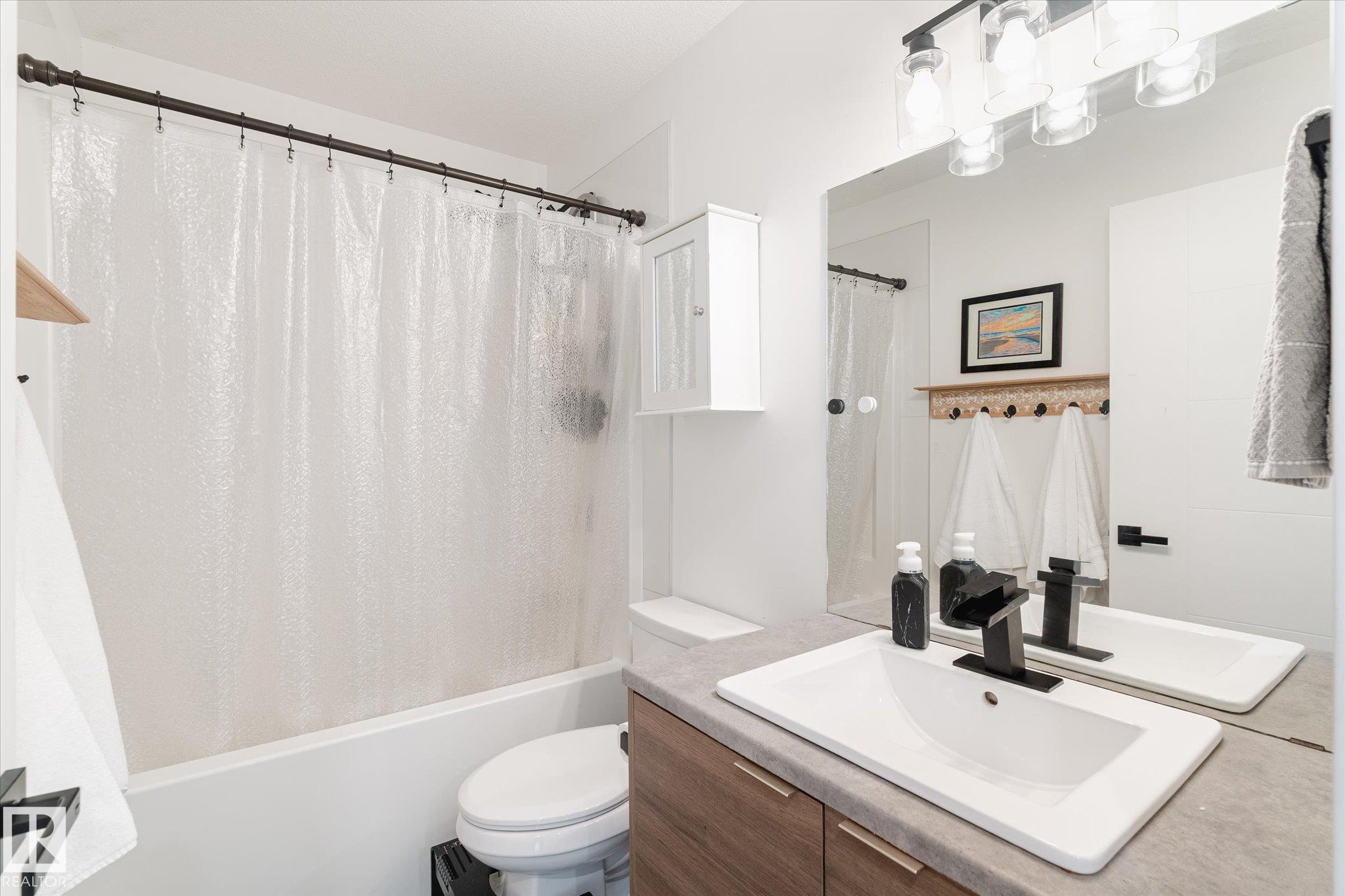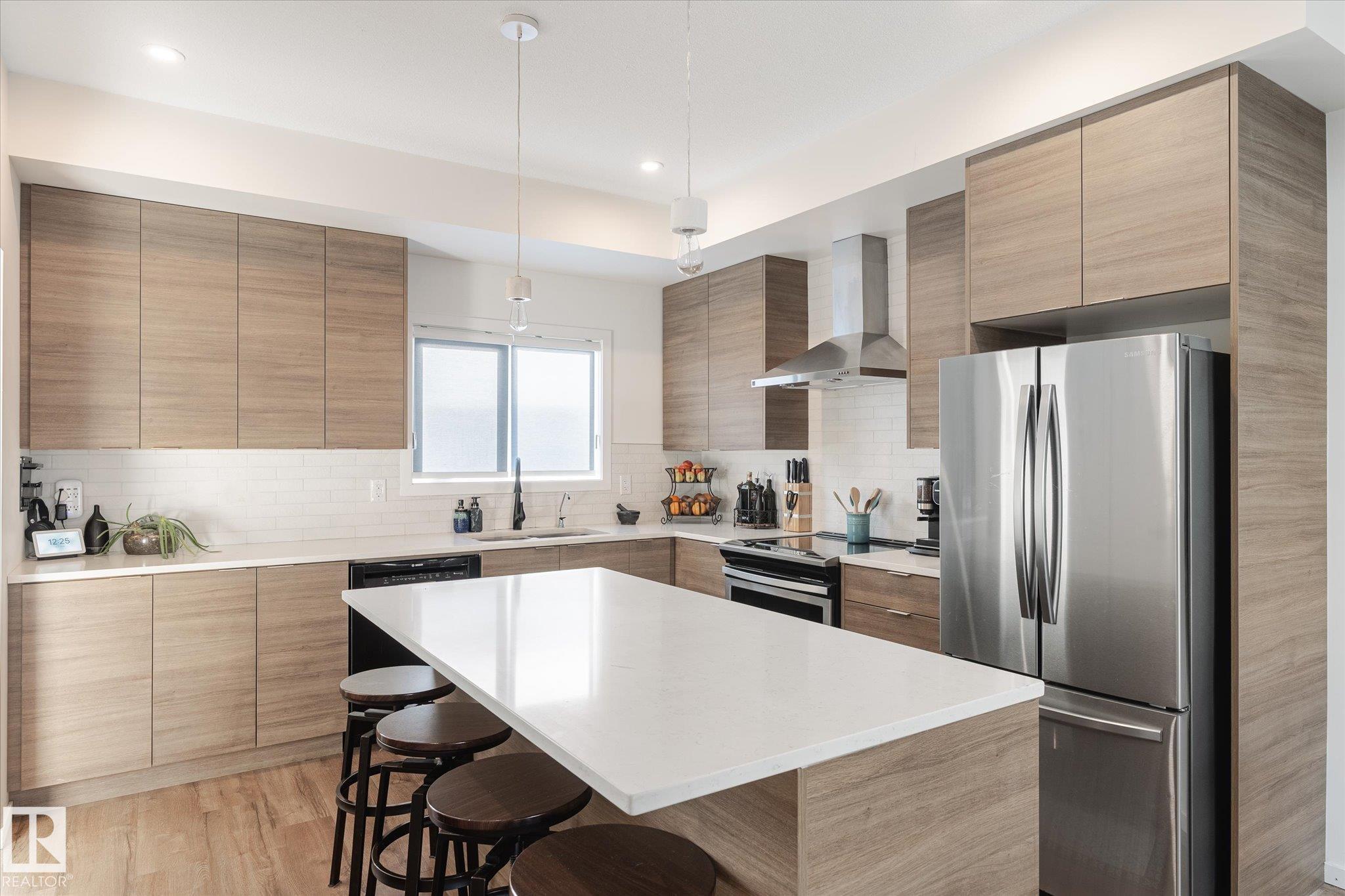 Stunning from the start! This beautiful END UNIT townhome with NO CONDO FEES is move in ready and awaits your family. Striking from the start, this curb appeal welcomes you into the 1460.21 square ft two storey beginning with the open concept main floor. This home is complete with vinyl plank floors (even upstairs!), tons of windows, and a perfectly appointed kitchen with quartz countertops and sleek cabinets to the ceiling too. The main floor also features a 2 pc bath and access to your fenced back yard with deck, lower patio pad, and of course the double garage. Upstairs is home to the main bathroom and 3 bedrooms including the primary with walk in closet, ensuite, and big windows. Located in a fabulous location near schools, parks, easy Highway 2 access, and all Beaumont has to offer.. this one is a winner!