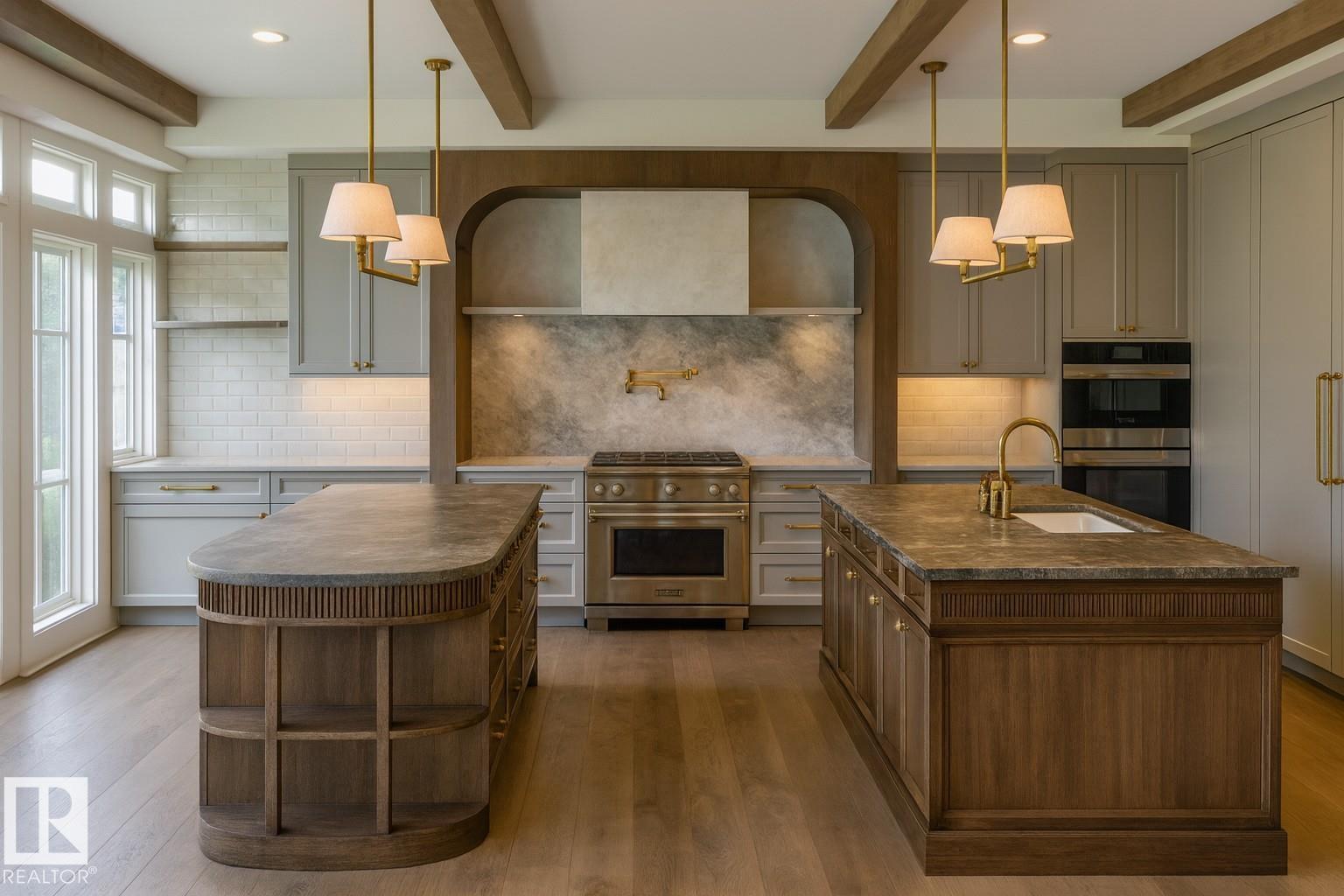 AMAZING URBIS WATERFRONT CREATION IN ST. ALBERT. Please to present this 5 bedroom WALKOUT masterpiece in Jensen Lakes. Over 5830 sqft of luxury living starts with wide open main floor featuring soaring ceilings and magnificent two island kitchen containing all the high end built-in's you would want. Numerous lake facing windows flood the main with warm natural light while you cozy up to the f/p. Upper level is host to the primary bedroom oasis along with 3 other bedrooms all with their own ensuites. Conveniently, the laundry is on the upper level as well. Rise up a little higher to the office loft area with lake facing windows/doors, bathroom and f/p. The finished basement is host to a large family/games area with bar and gym. Undeveloped flex space for golf sim? Also another bedroom and bathroom on this level. Multiple covered/open deck options adorn the lake side of this home. Park with ease in the triple attached garage that provides access to the mudroom and walkthru pantry. Pictures all renderings.