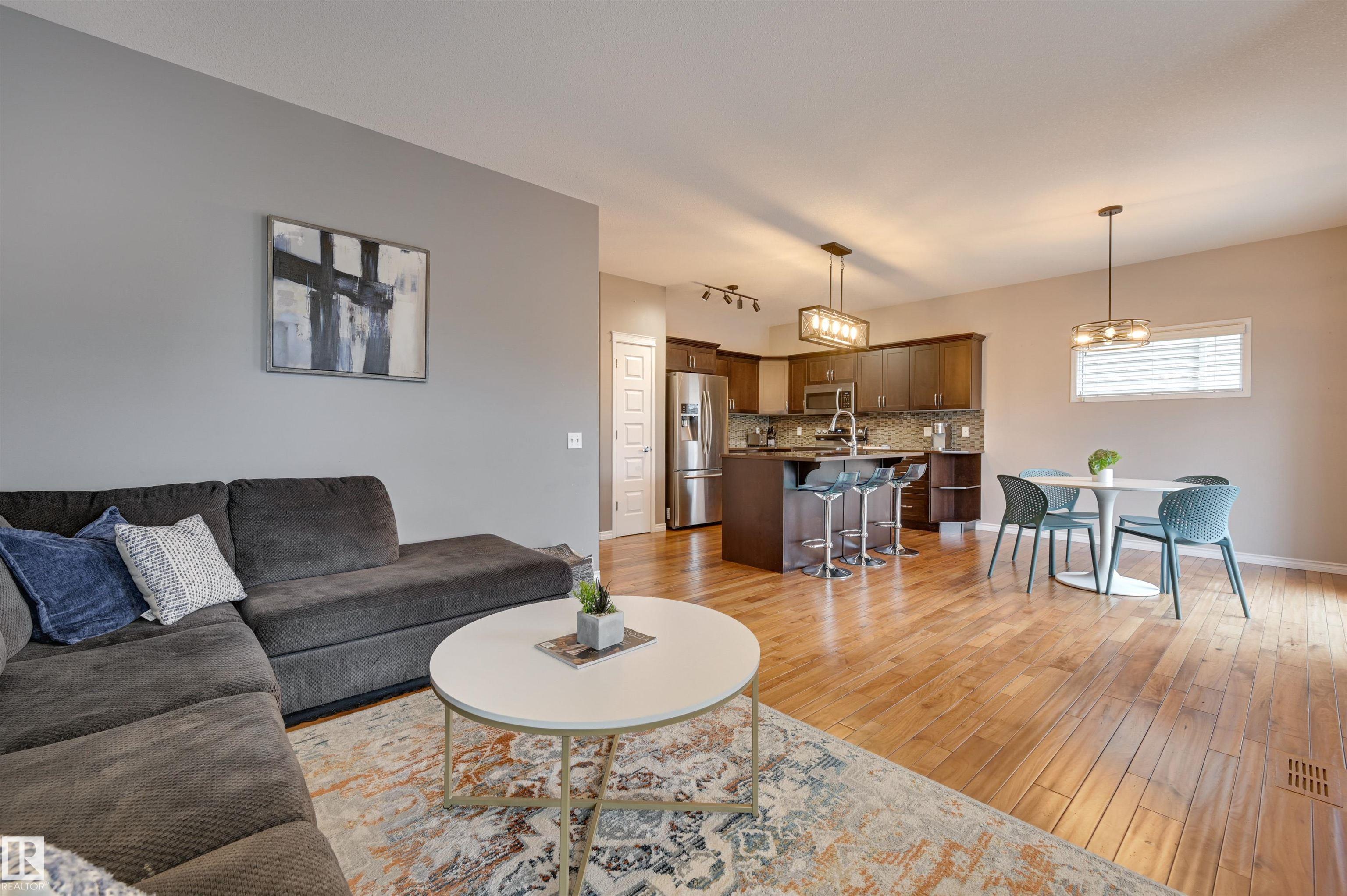 Welcome to this beautiful 4 bed + 4 bath home in Chappelle Gardens! Thoughtful upgrades make it turn-key + ready for your family. Your spacious kitchen features an oversized island + updated appliances! Your bright living room is cozy + comfortable thanks to your new fireplace. Cozy carpet leads you upstairs to the primary bedroom complete w/ a walk-in closet, ensuite, + blackout custom blinds, along w/ 2 additional bedrooms. The fully finished basement provides more living space w/ a bonus room, great for a home gym or flex space. A fully fenced backyard w/ upgraded landscaping + a larger-than-standard deck is perfect for outdoor entertaining. Enjoy A/C in the summer months + a heated double garage w/ dimmable pot lighting during winter! Rest assured w/ keyless entry, new interior paint + garage paint, custom blinds + new main floor lighting! Ice skating, a splash park, schools, trails, + daycares are nearby. Your HOA puts on fun holiday parties for all residents! Don't miss the chance to call this home!