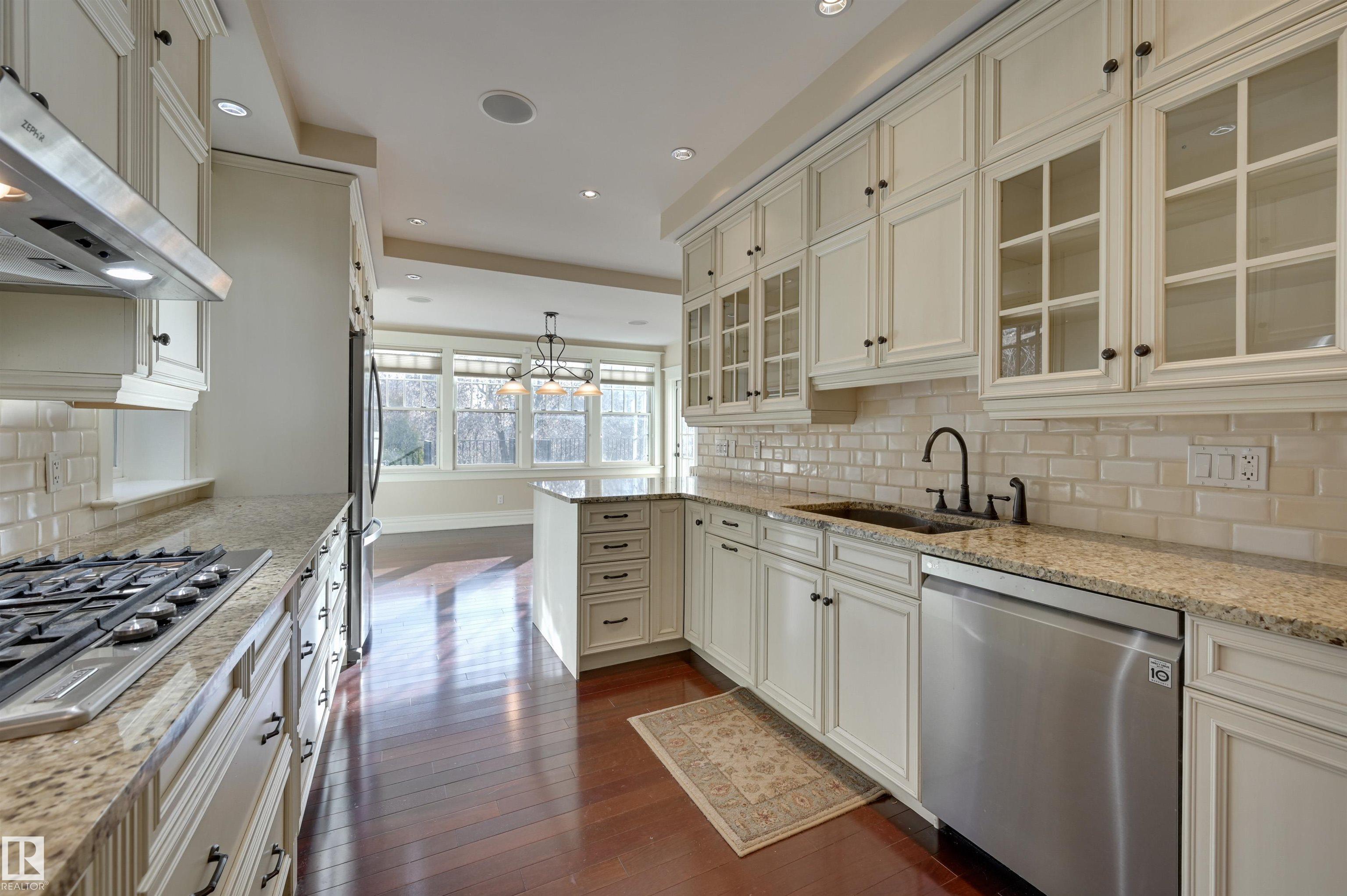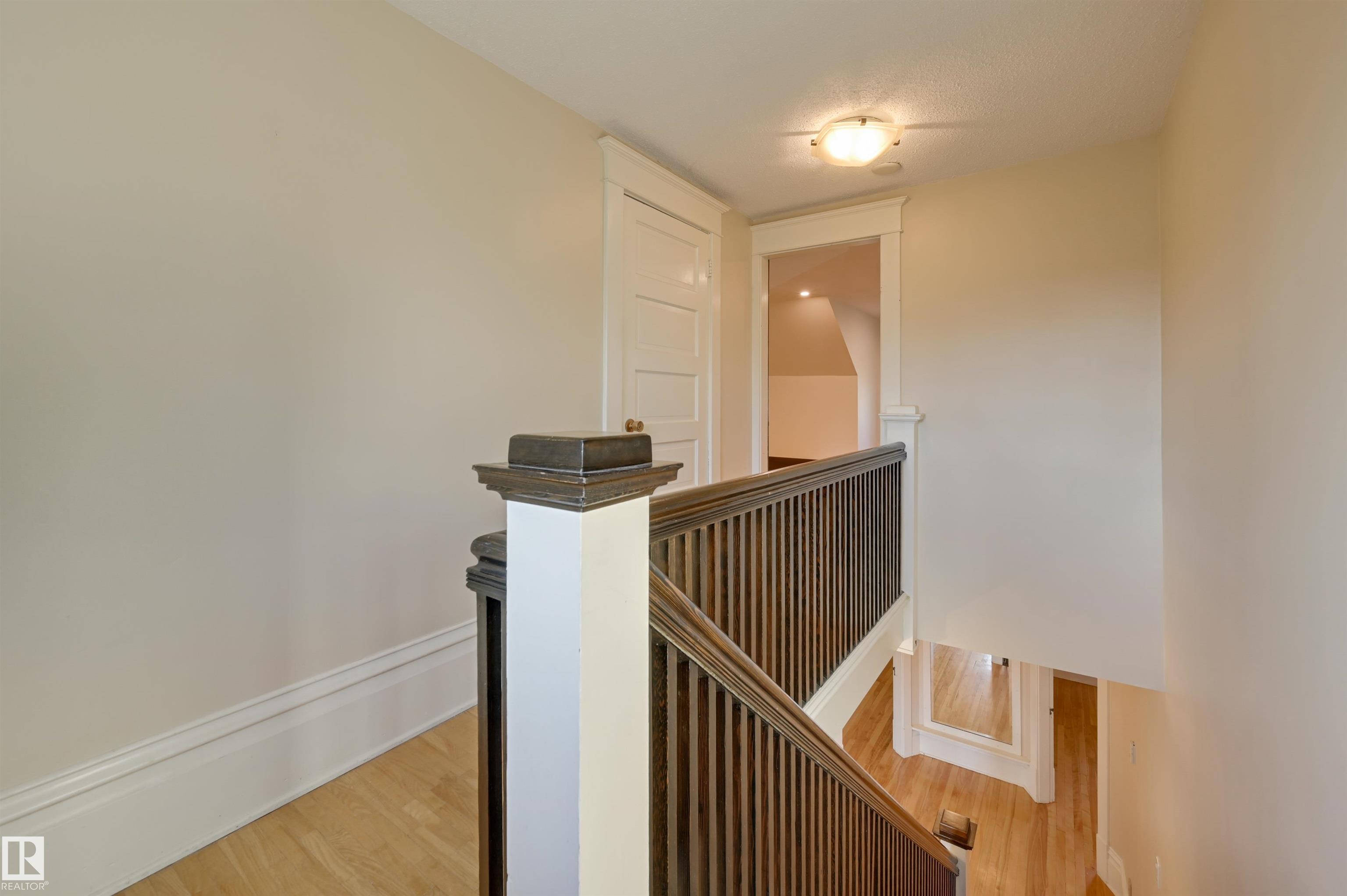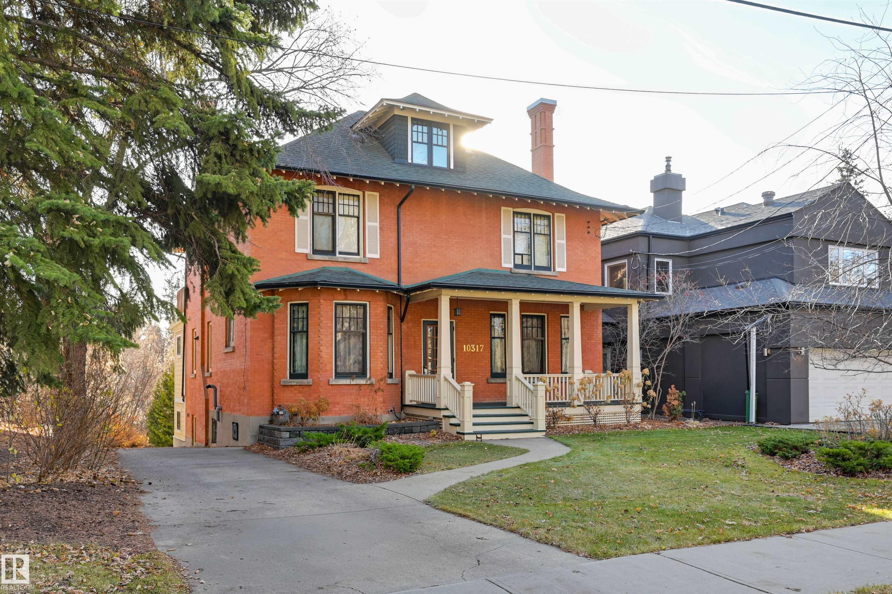 An exceptional blend of historic character & modern luxury in one of Edmonton?s most cherished neighbourhoods. Situated on a rare 1/3 acre ravine lot in Historic Westmount, this grand 1912 residence has been lovingly modernized & has so much to offer. This impressive 6 bedroom, 4 bathroom estate has been extensively renovated. The main floor features a regal living room with a beautiful fireplace, & spacious dining area - great for entertaining. Next is the fully renovated, south-facing chef's kitchen with breakfast nook - offering deck access & unobstructed river valley views. The floor is complete with a full bathroom & bedroom/office. Upstairs is the primary suite featuring a fireplace, walk-in closet and spa-like ensuite w/ heated floors & clawfoot soaker tub. Two more bedrooms, laundry, full bath & deck complete the level. 5th bedroom or flex room with excellent storage on 3rd level. Fully finished walk out basement with heated mudroom & full bath, bedroom, bonus room w/ fireplace, attached garage!