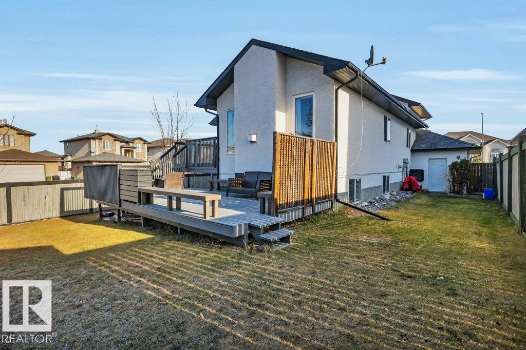 Welcome to Mayliewin! Discover this well-maintained CORNER LOT bi-level home nestled in a fantastic family-friendly neighbourhood. Offering over 2,315 sq ft of finished living space, this spacious property features 5 bedrooms, 3 full bathrooms, and a triple attached garage, providing comfort & convenience for busy households.The upper main floor welcomes you w/ a bright, open living area including the living room, a dining room, and peninsula kitchen. The kitchen is designed w/ custom wood cabinetry, ample counter space, & a walk-in pantry. The dining room opens directly onto the back deck, overlooking the fully fenced backyard.This level offers 2 bedrooms and a 4-piece bath. Just a few steps up, the private upper floor hosts the Primary Suite, featuring a generous bedroom and a 3-piece ensuite. The lower main level offers more living space w/ 2 additional bedrooms, a 4-pc bath, a large recreation room & a utility/laundry room! Located within walking distance to schools, parks, and playgrounds!