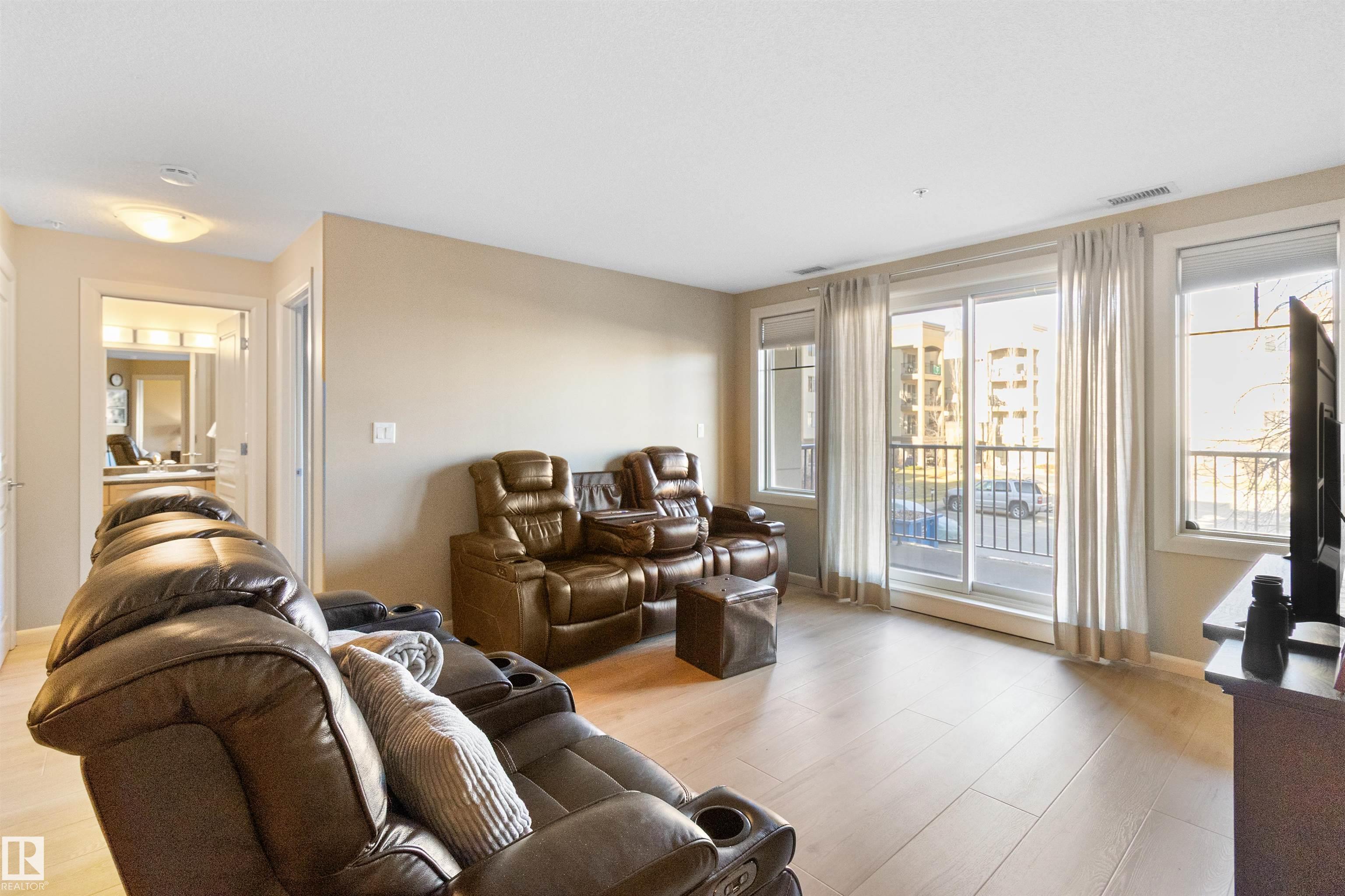 Fantastic 2 bedroom 2 bath single level apartment in desirable Palisades On The Park! Adult living (18+) in peaceful concrete building. New vinyl plank flooring in great room plus and ceramic tile in kitchen and baths. Maple island kitchen with pantry. Insuite laundry. Spacious primary bedroom with walk-in closet with built-in organizer shelving. Full ensuite. Private balcony. Insuite storage. Titled heated underground parking plus assigned private storage in parkade. Great building amenities including: theater room, steam room, sauna, exersize room, social room and car wash. Condo fees include heat and water. Close to Centenial Park, public transportation, shopping, dining and easy city access. Furniture is negotiable!