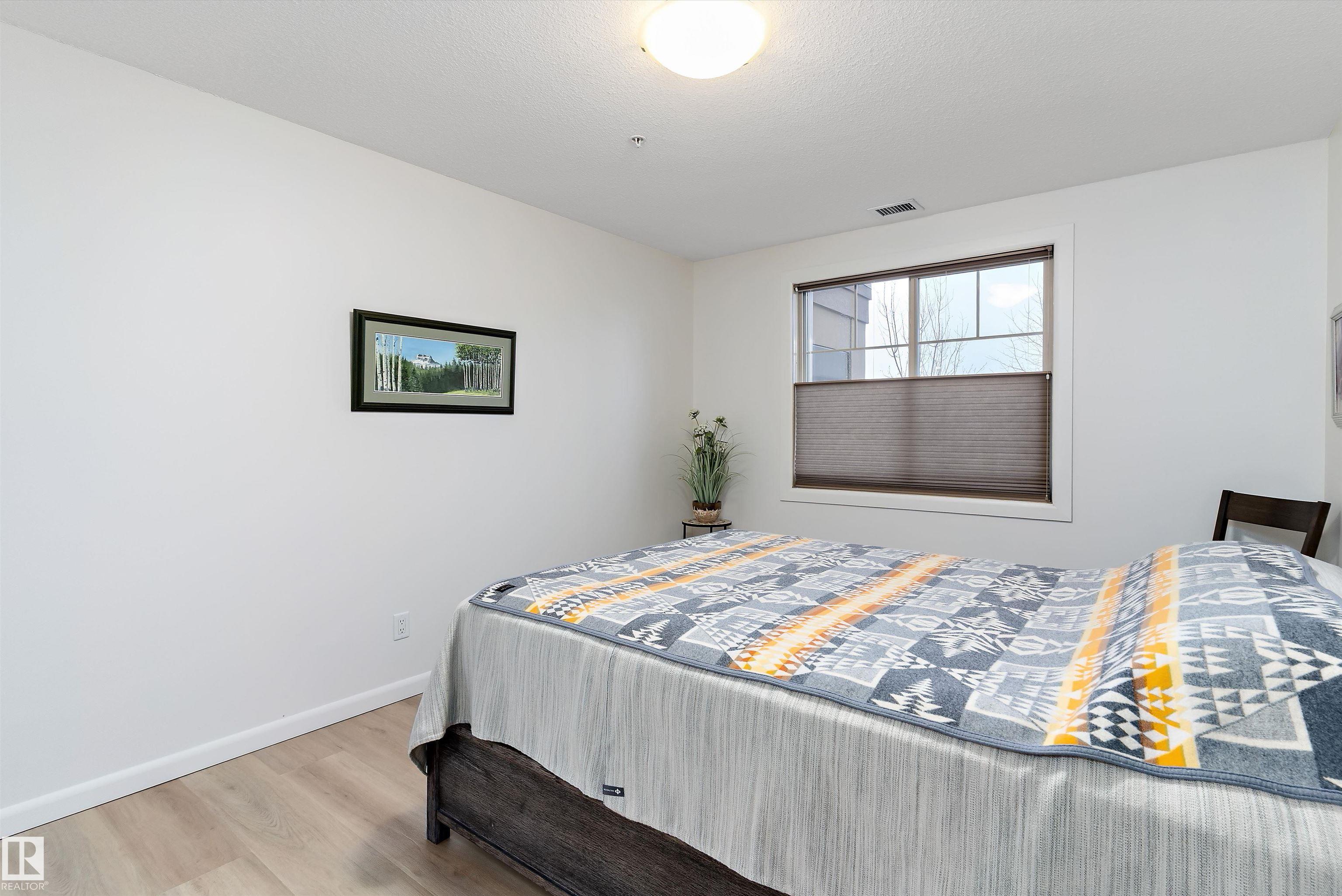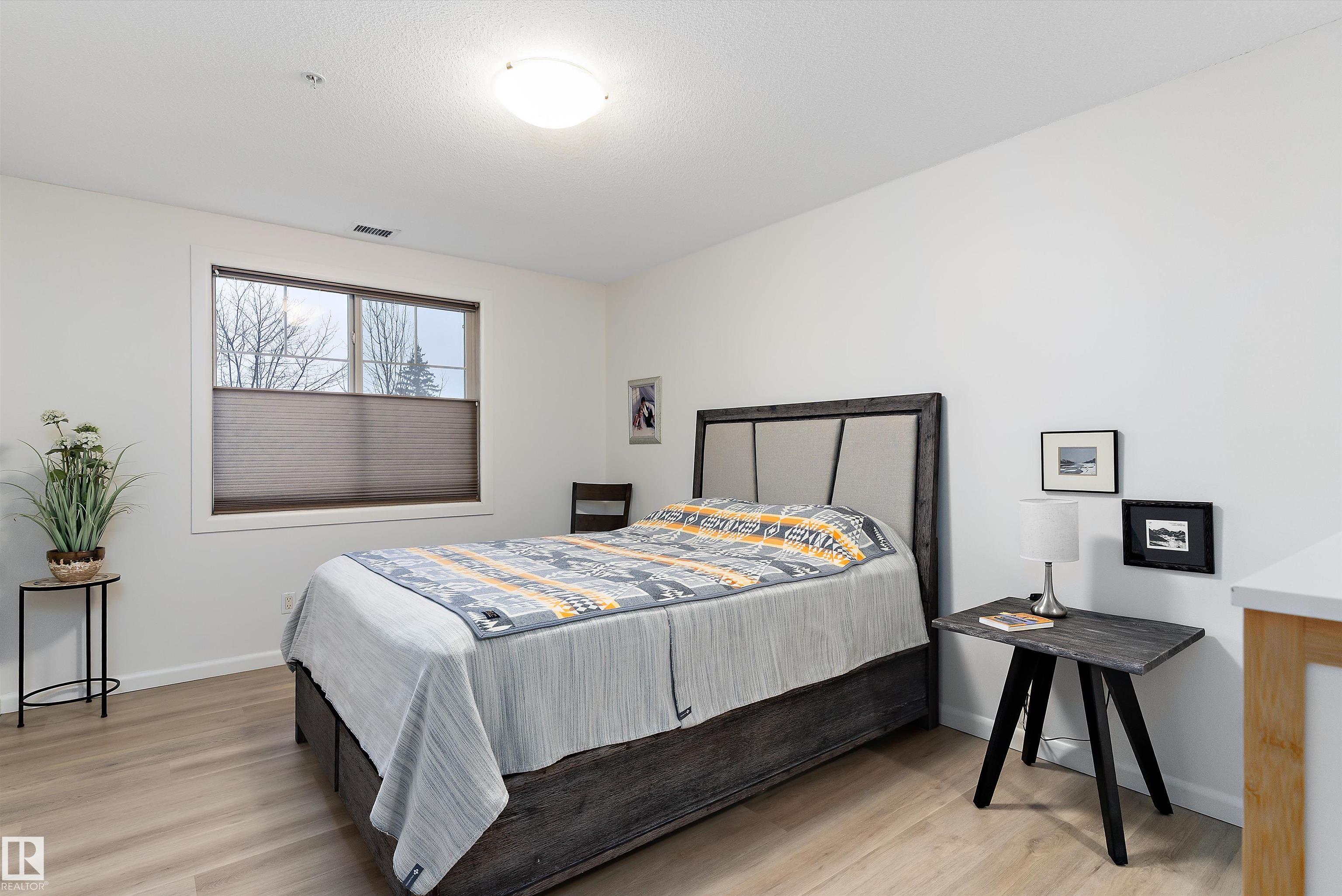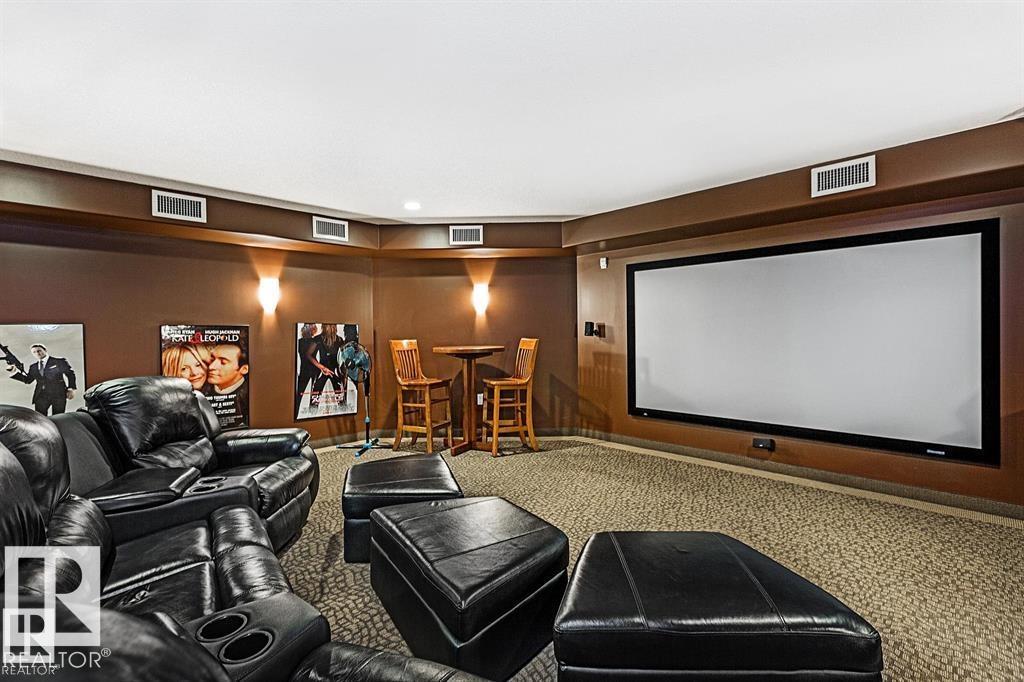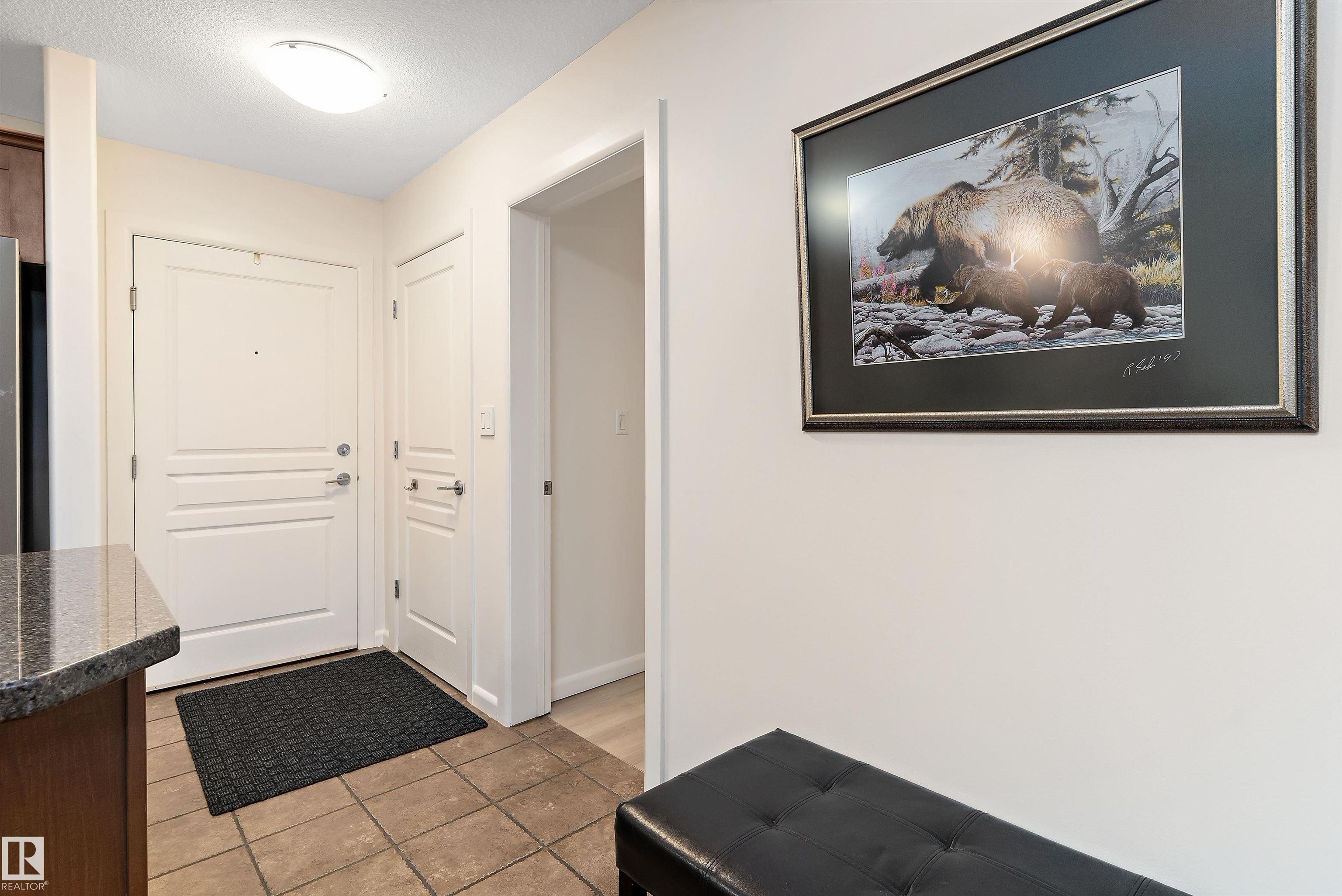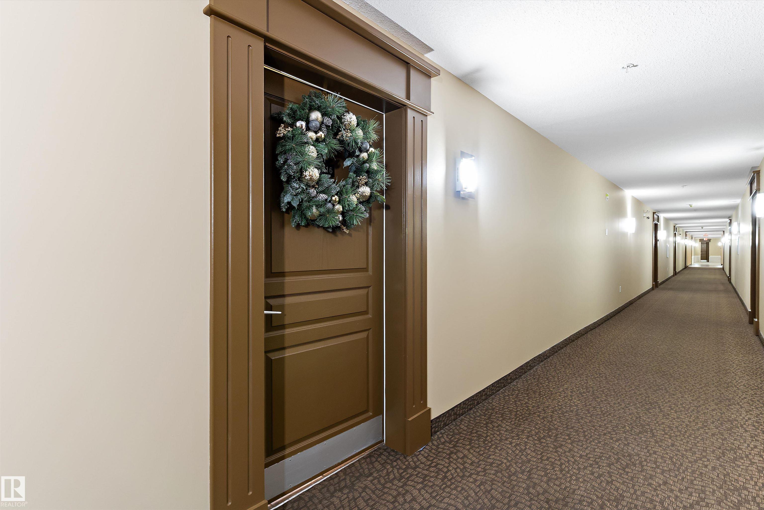 IMMACULATE 2 bedroom + 2 bathroom situated halfway between the north and south entrances which offers VERY QUIET LIVING free of elevator/lobby noise. Along with quick/easy access to the parkade or front entrances. THE OWNERS LIKE: their UNDERGROUND PARKING STALL, not having to wait for elevators, GRANITE COUNTERTOPS, the WEST FACING PATIO w/screens offering privacy that regulate wind and sun exposure. ALSO: Emerald Hills shopping center, easy access to bike / walking trails, cross country skiing, birdwatching, Edmonton, Elk Island National Park, Cooking Lake and Strathcona Wilderness Center. Total upgrades May, 2024-October, 2025 = $24,853. NEW GE appliances July/Aug 2025 ($8700), CUSTOM MADE patio enclosure installed Dec, 2024 ($6700), New luxury vinyl plank flooring (June, 2025 - $6653.00), PROFESSIONAL PAINTING of suite May 2024 ($2000), Natural stone on fireplace Oct 2025($800). Building features: GUEST SUITES, GAMES room, THEATRE room, FITNESS room, SAUNA + STEAM rooms, LIBRARIES, and CAR WASH.