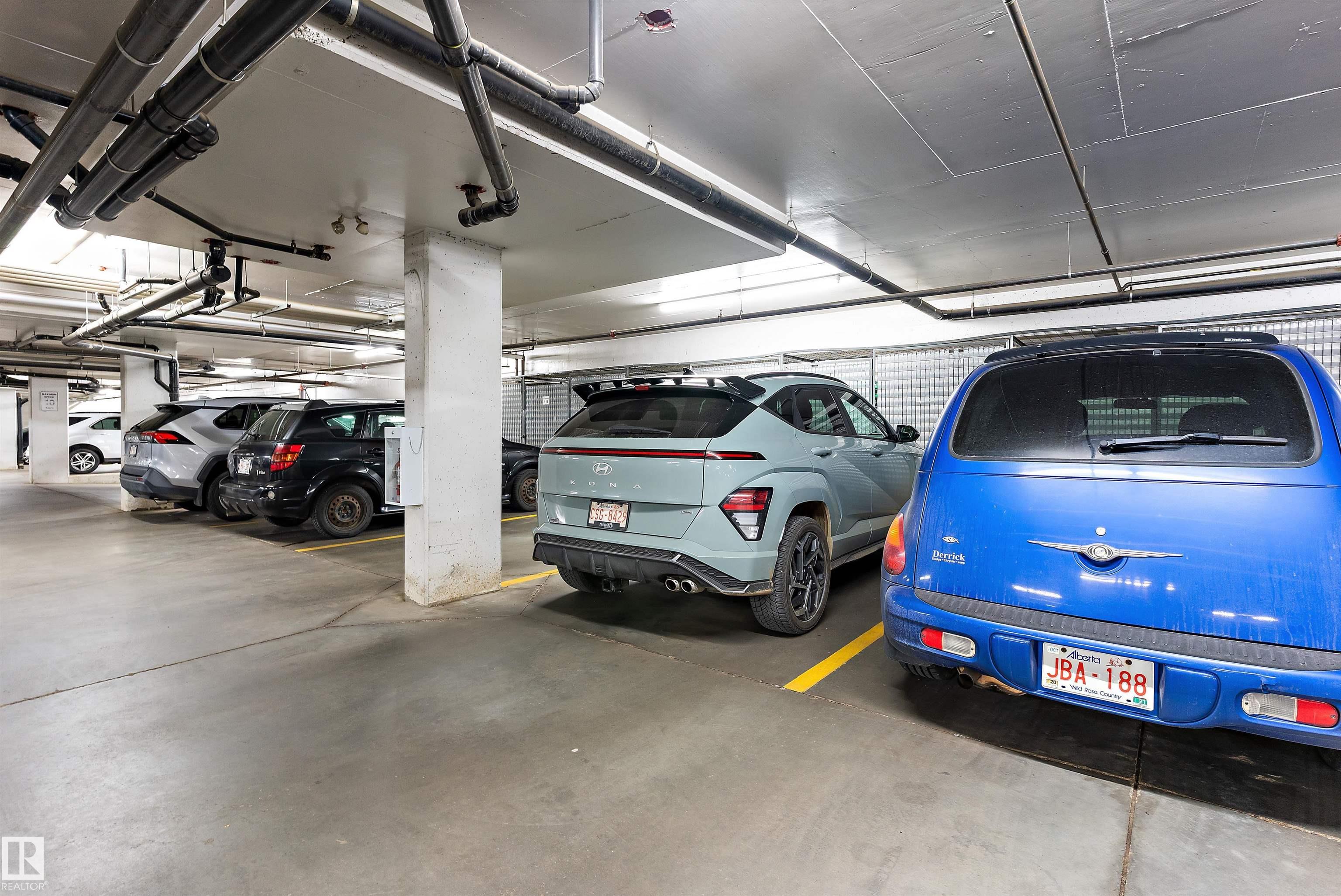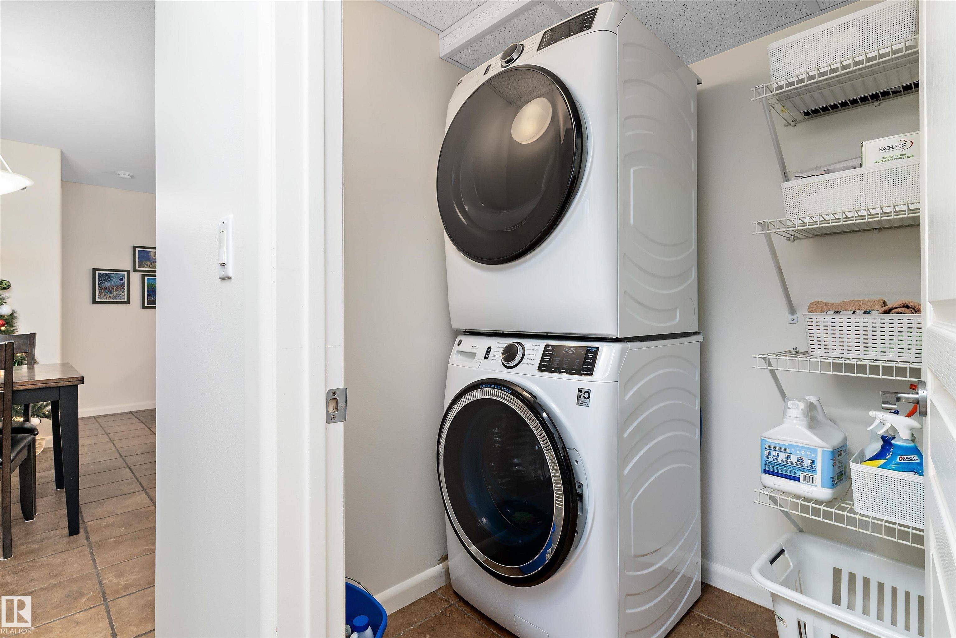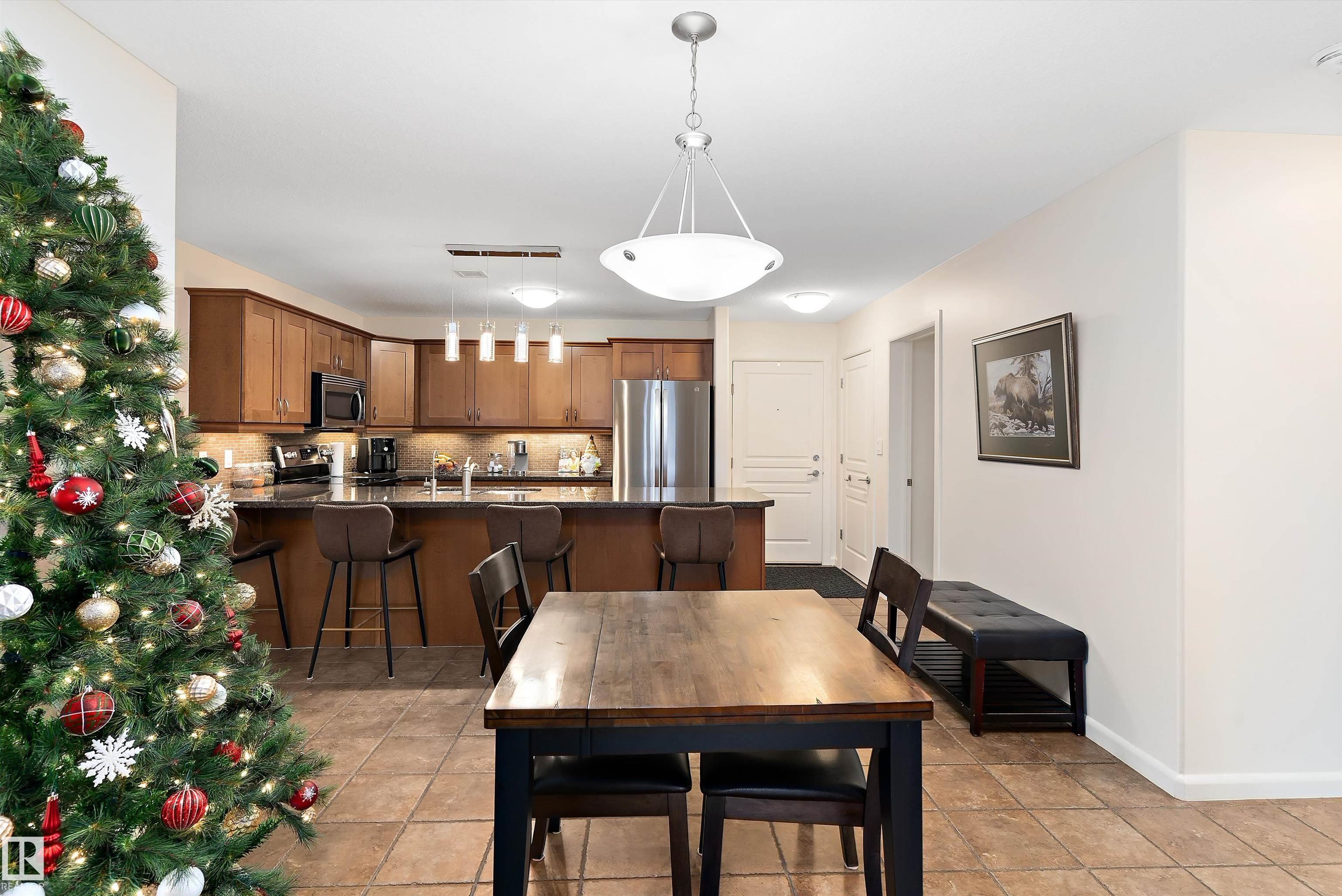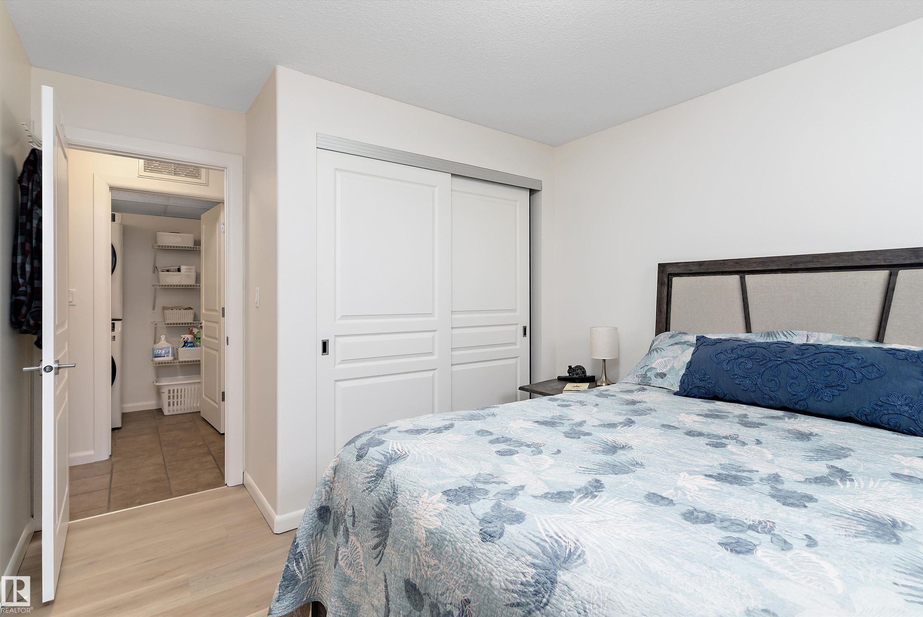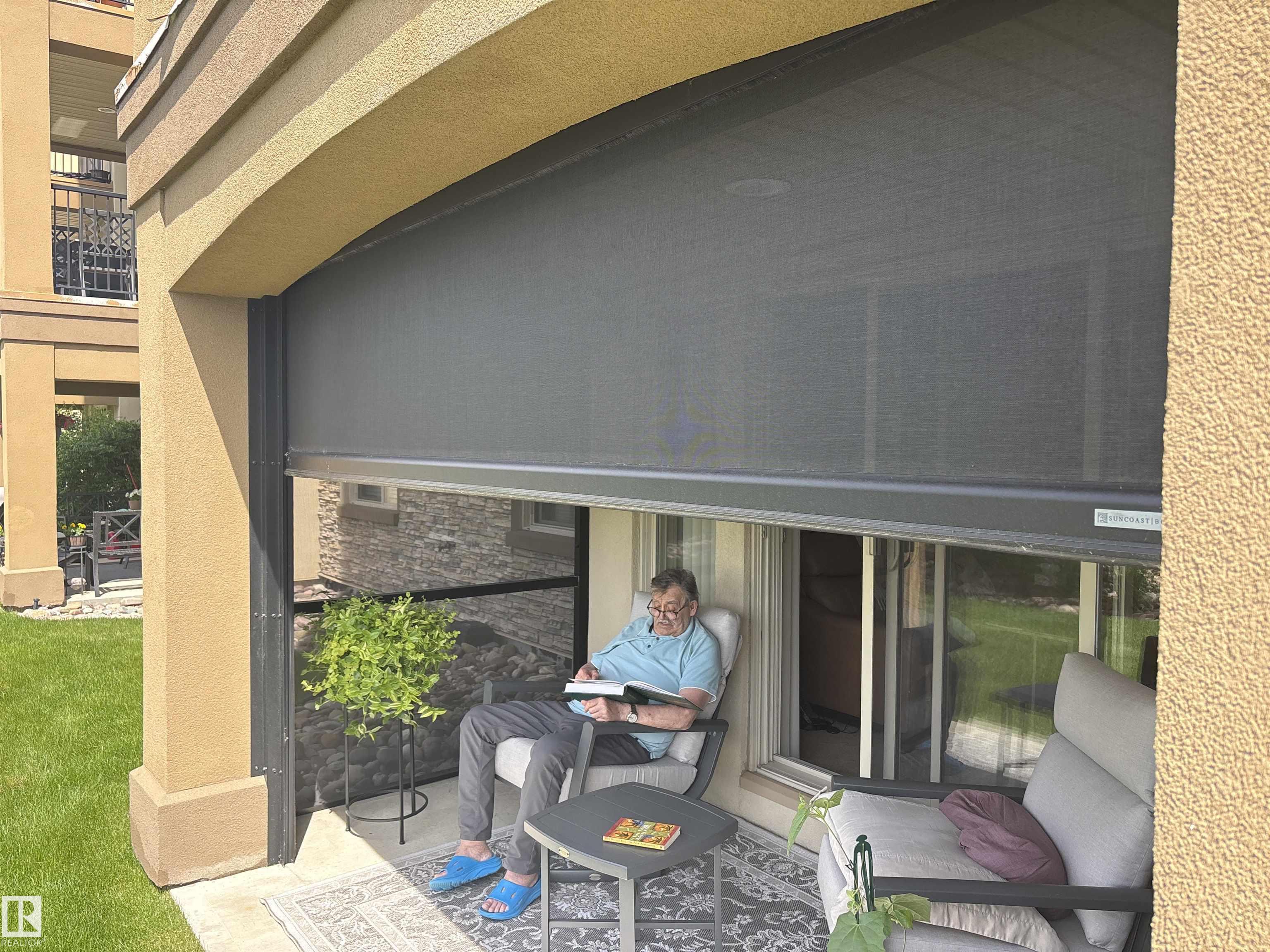 IMMACULATE 2 bedroom + 2 bathroom situated halfway between the north and south entrances which offers VERY QUIET LIVING free of elevator/lobby noise. Along with quick/easy access to the parkade or front entrances. THE OWNERS LIKE: their UNDERGROUND PARKING STALL, not having to wait for elevators, GRANITE COUNTERTOPS, the WEST FACING PATIO w/screens offering privacy that regulate wind and sun exposure. ALSO: Emerald Hills shopping center, easy access to bike / walking trails, cross country skiing, birdwatching, Edmonton, Elk Island National Park, Cooking Lake and Strathcona Wilderness Center. Total upgrades May, 2024-October, 2025 = $24,853. NEW GE appliances July/Aug 2025 ($8700), CUSTOM MADE patio enclosure installed Dec, 2024 ($6700), New luxury vinyl plank flooring (June, 2025 - $6653.00), PROFESSIONAL PAINTING of suite May 2024 ($2000), Natural stone on fireplace Oct 2025($800). Building features: GUEST SUITES, GAMES room, THEATRE room, FITNESS room, SAUNA + STEAM rooms, LIBRARIES, and CAR WASH.