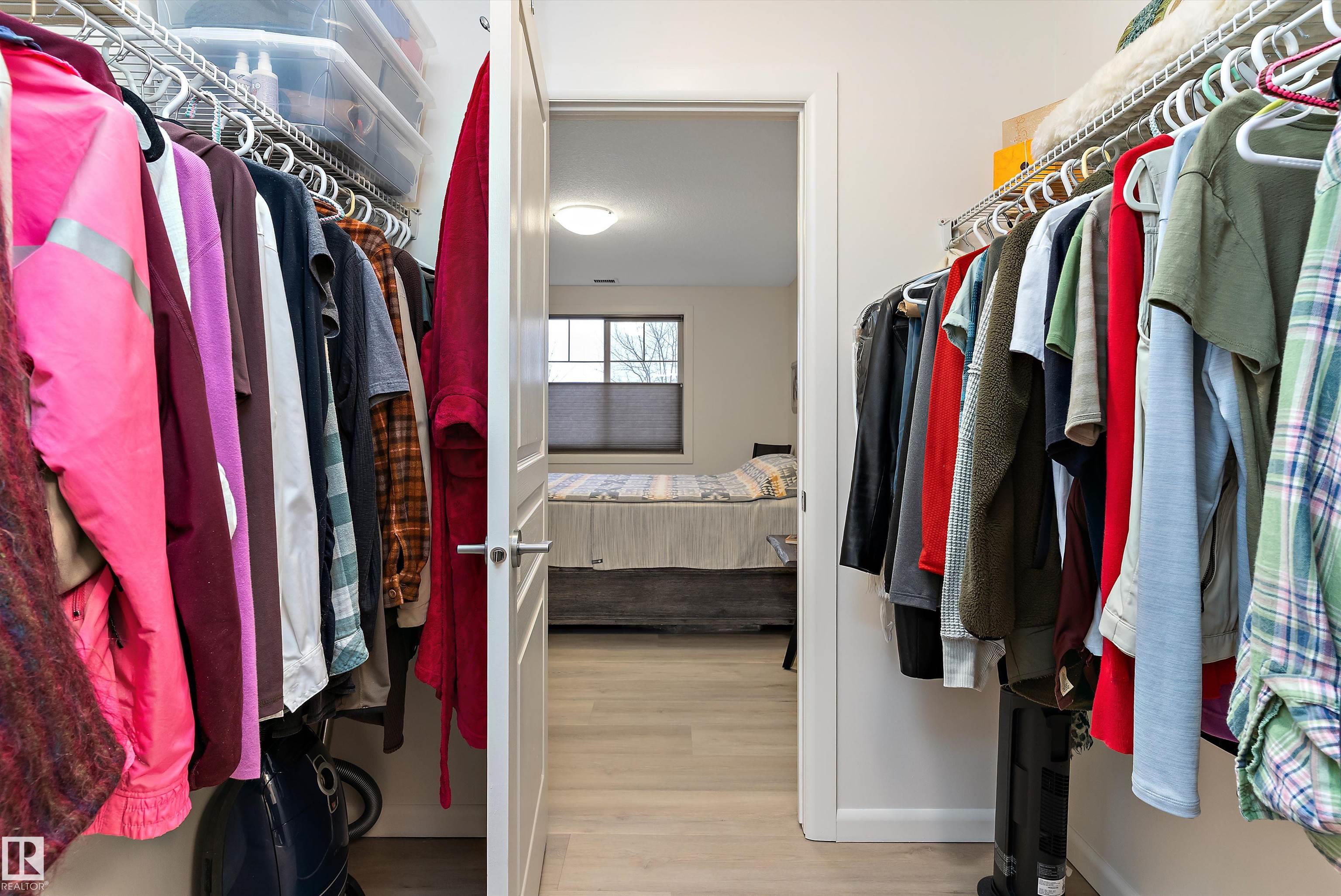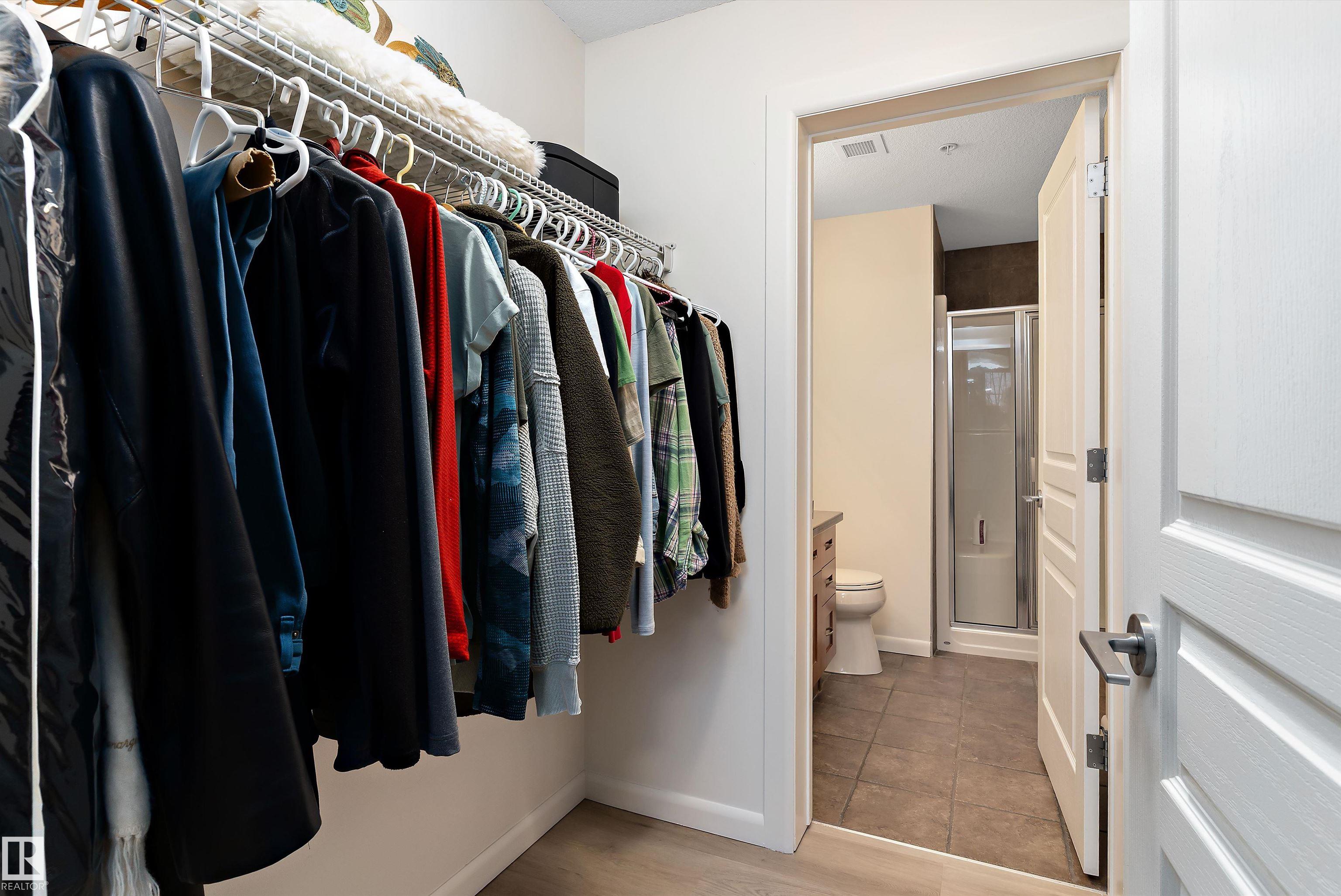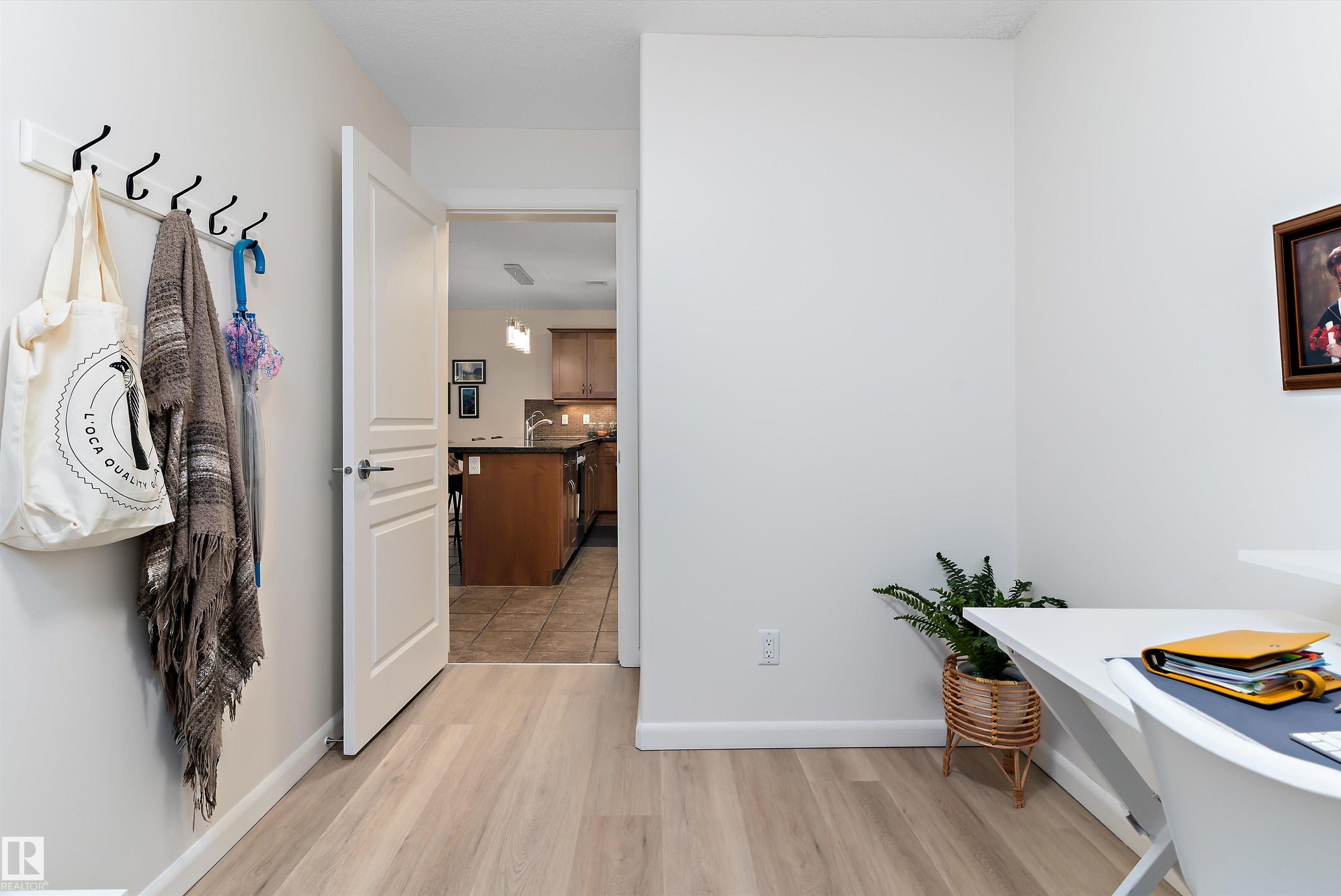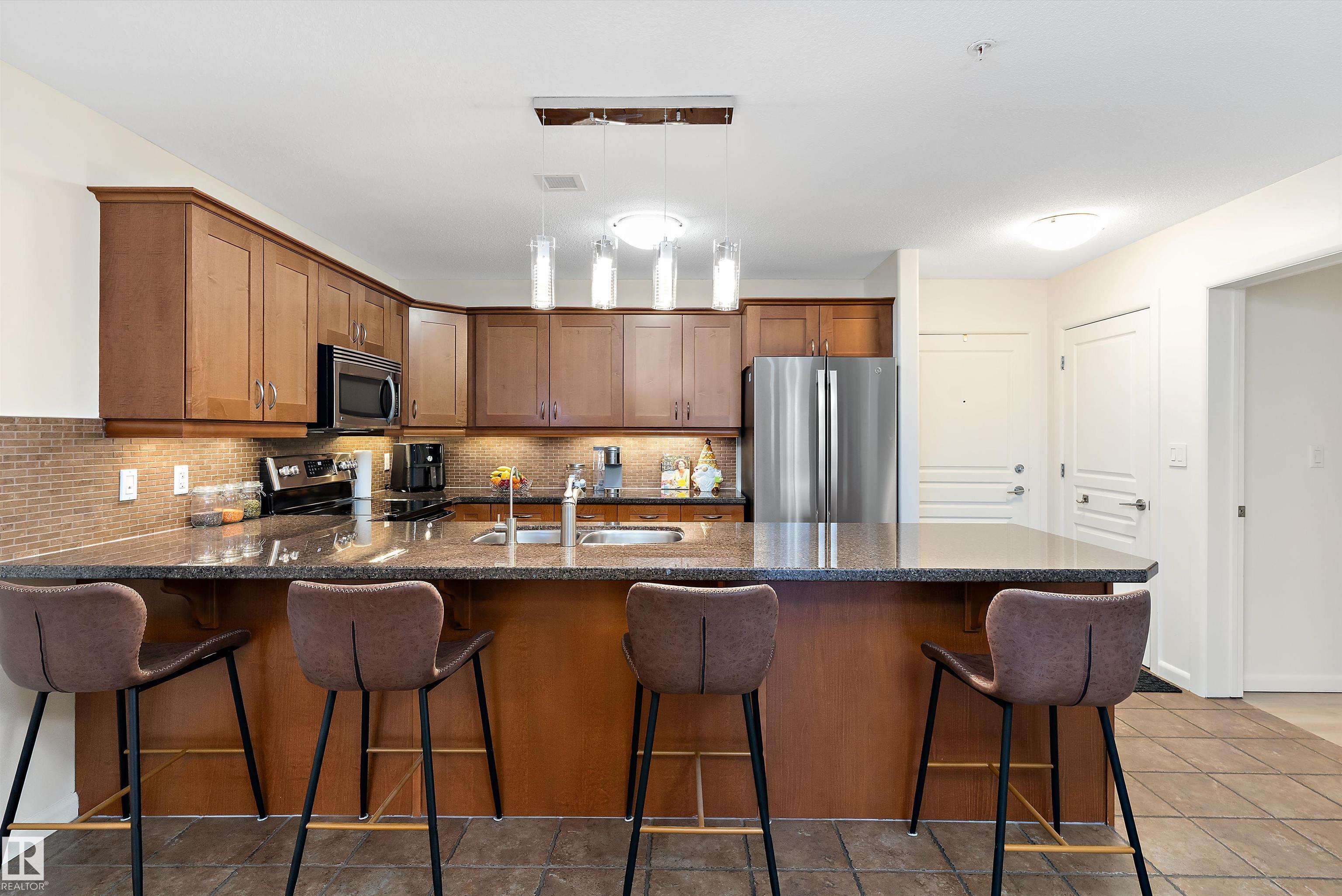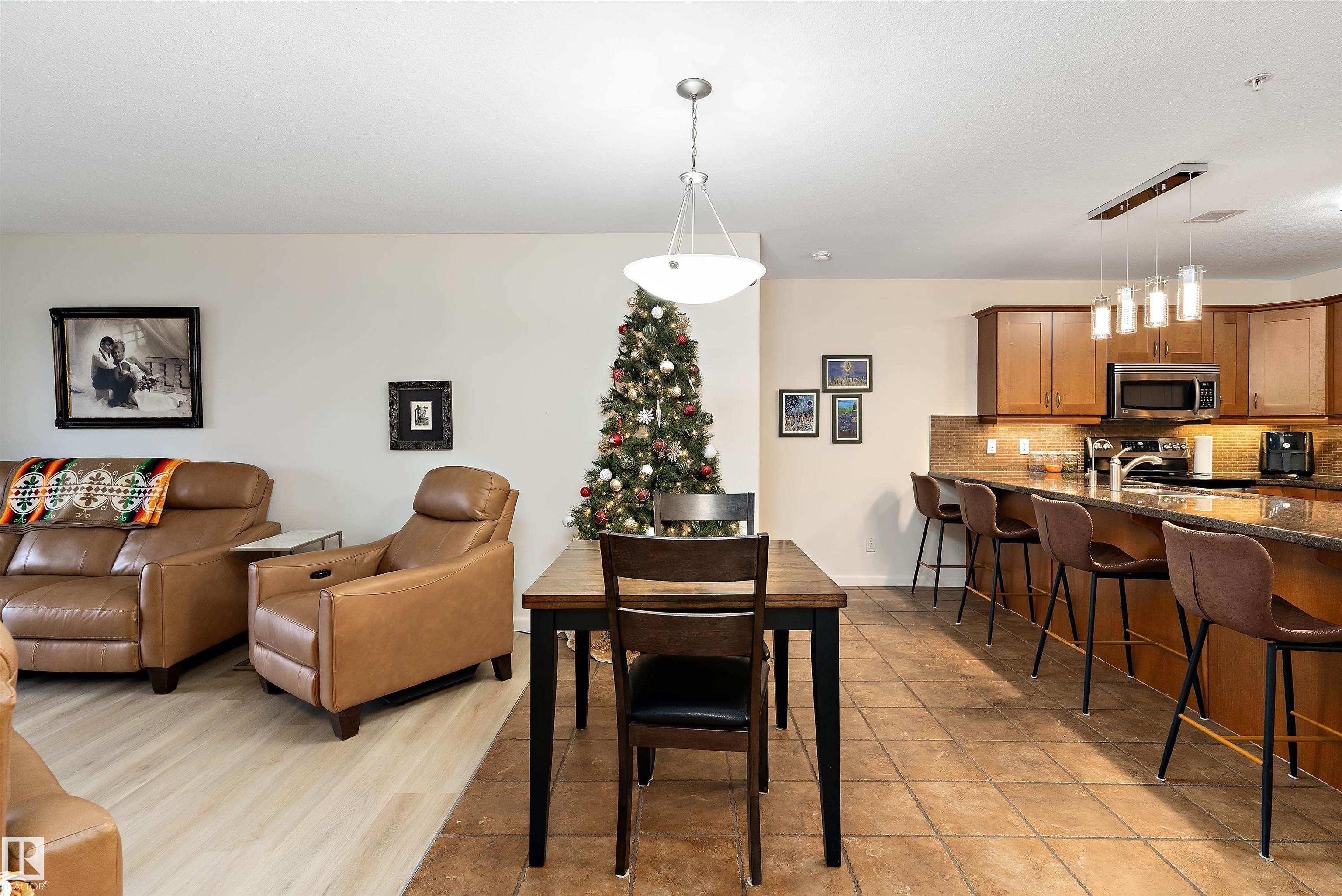 IMMACULATE 2 bedroom + 2 bathroom situated halfway between the north and south entrances which offers VERY QUIET LIVING free of elevator/lobby noise. Along with quick/easy access to the parkade or front entrances. THE OWNERS LIKE: their UNDERGROUND PARKING STALL, not having to wait for elevators, GRANITE COUNTERTOPS, the WEST FACING PATIO w/screens offering privacy that regulate wind and sun exposure. ALSO: Emerald Hills shopping center, easy access to bike / walking trails, cross country skiing, birdwatching, Edmonton, Elk Island National Park, Cooking Lake and Strathcona Wilderness Center. Total upgrades May, 2024-October, 2025 = $24,853. NEW GE appliances July/Aug 2025 ($8700), CUSTOM MADE patio enclosure installed Dec, 2024 ($6700), New luxury vinyl plank flooring (June, 2025 - $6653.00), PROFESSIONAL PAINTING of suite May 2024 ($2000), Natural stone on fireplace Oct 2025($800). Building features: GUEST SUITES, GAMES room, THEATRE room, FITNESS room, SAUNA + STEAM rooms, LIBRARIES, and CAR WASH.