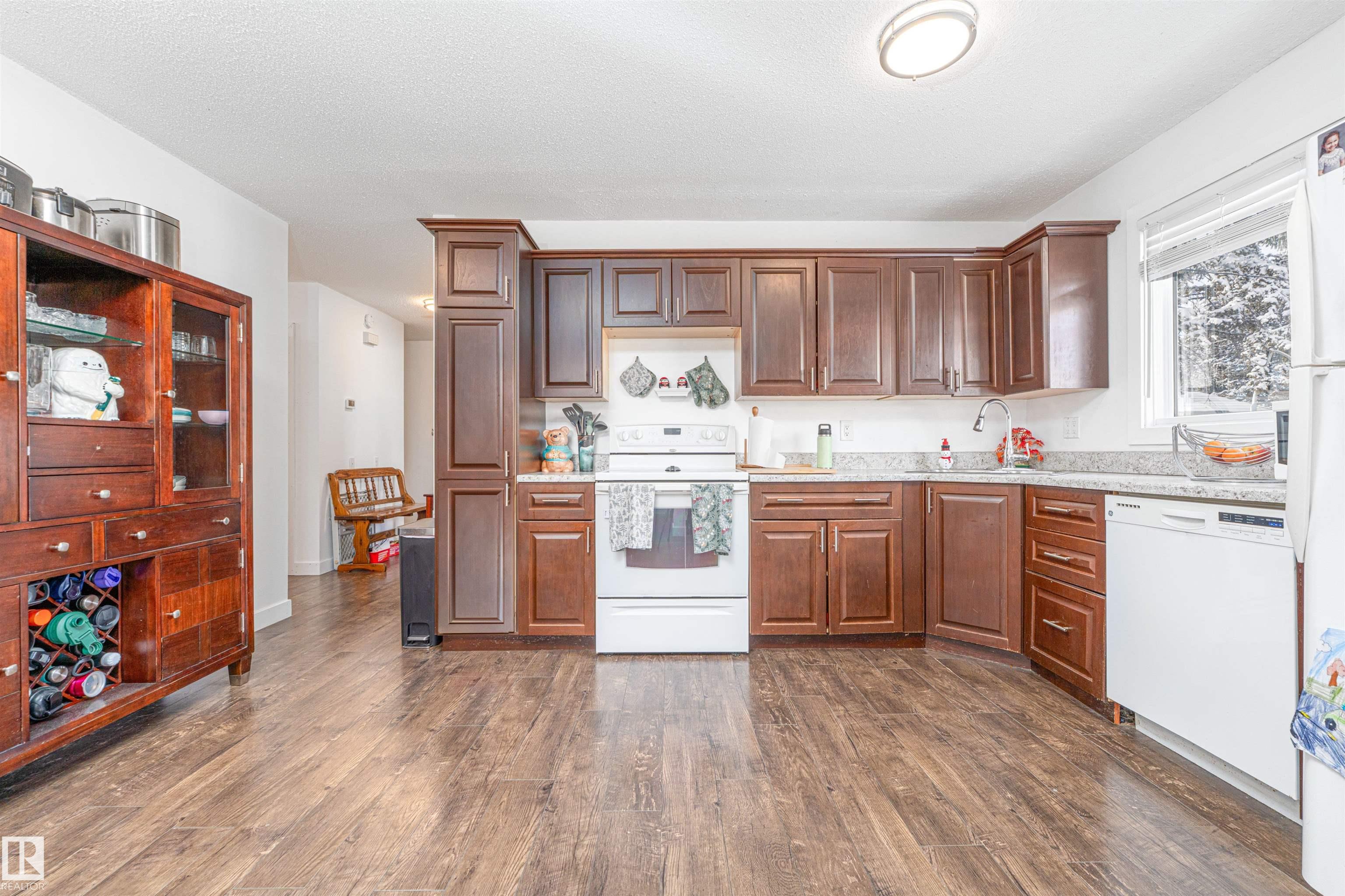 Check out this open concept family home in Redwater. It boasts 3 bedrooms on the main floor plus an addition bedroom and office in the basement. The open kitchen and living area allows for family interaction regardless of where the family members are. The master bedroom has a 2 piece ensuite. Walk down the stairs to a very large rec room for family game or movie nights. This home features a large fenced backyard that borders the edge of town on a quiet cul-de-sac. Enjoy outdoor family time with privacy as there are not any neighbors at the back of the property. The large insulated garage allows for parking out of the elements and ample storage. The furnace and air conditioning are only 8yrs old. Shingles are newer as well. If a home purchase is in your future, don't miss out on this one.