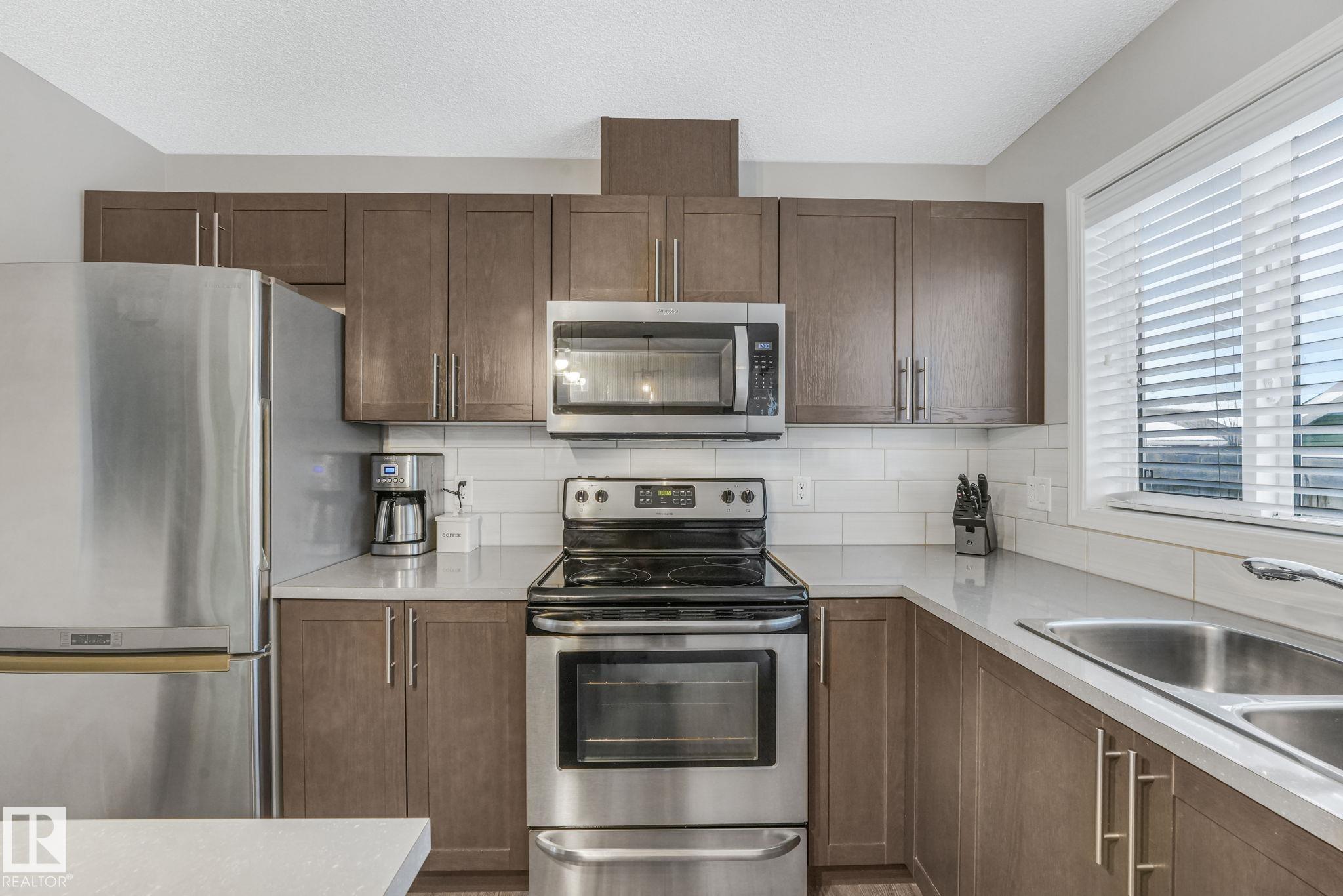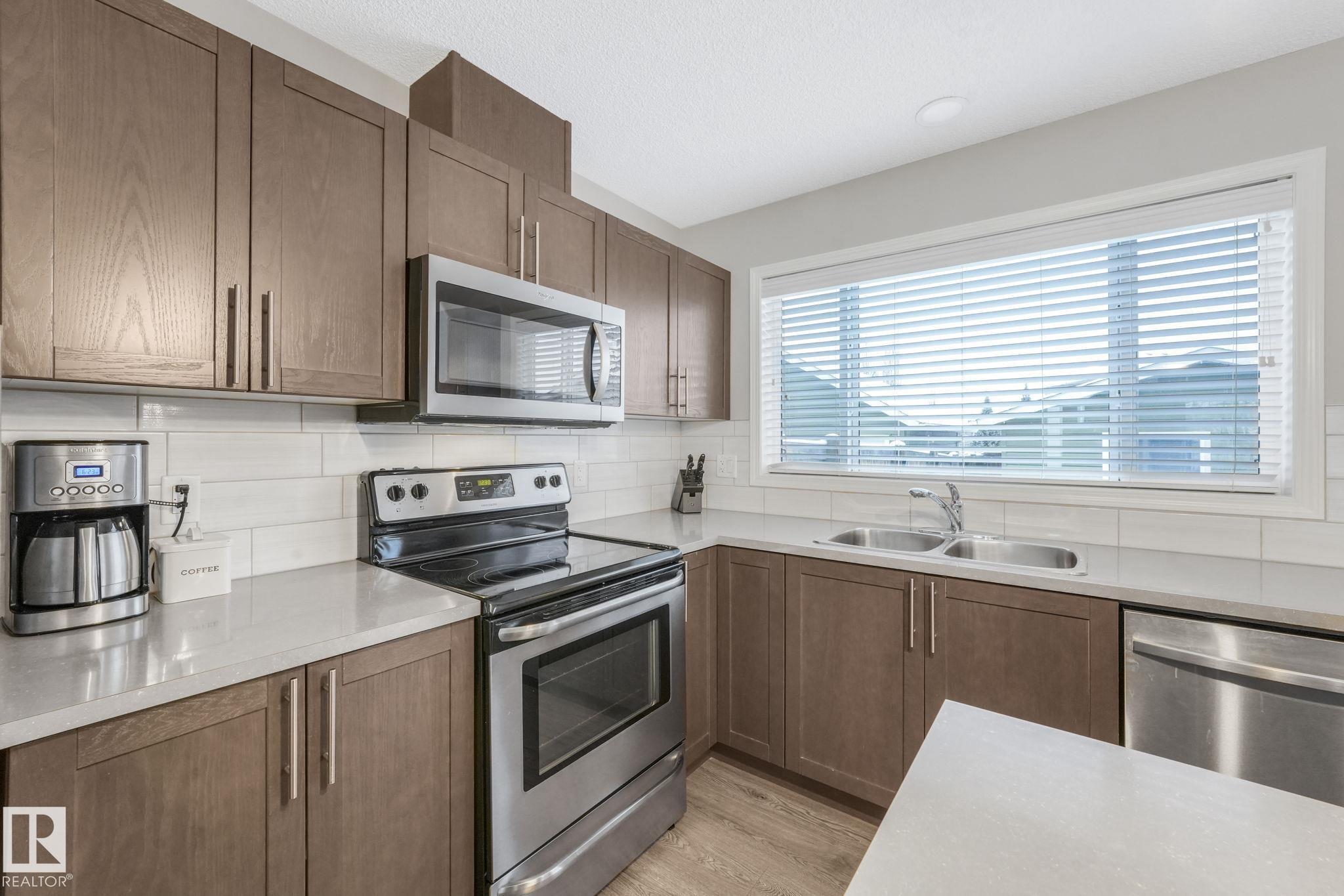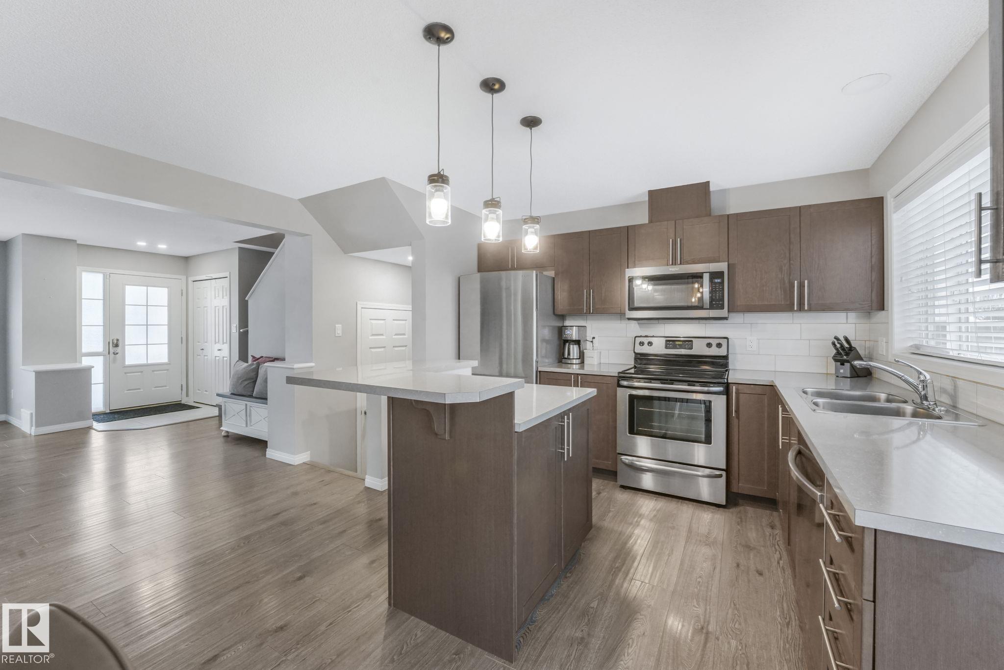 Overlooking the park and playground, you can keep an eye on the kids right from your living room in family-friendly Summerside! This 3 bedroom, 2.5 bathroom home offers an open-concept main floor with stylish laminate and luxury vinyl plank flooring throughout and rich dark cabinetry paired with stainless steel appliances. Upstairs features a bright primary suite with a walk-in closet and 3-pc ensuite, along with two additional spacious bedrooms and a full 4-pc bath. The backyard is low-maintenance with a beautiful stamped concrete patio and artificial grass (no mowing!). You?ll also love the detached double garage and air conditioning. Best of all, enjoy full Lake Summerside access?the #1 reason people love this community. With quick connections to the Anthony Henday and 99 Street, excellent schools, and an unbeatable location, this is the move you?ve been waiting for!