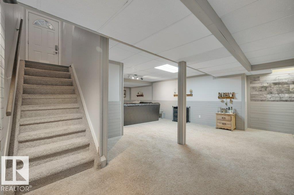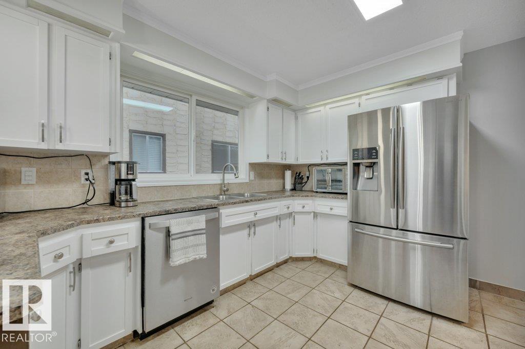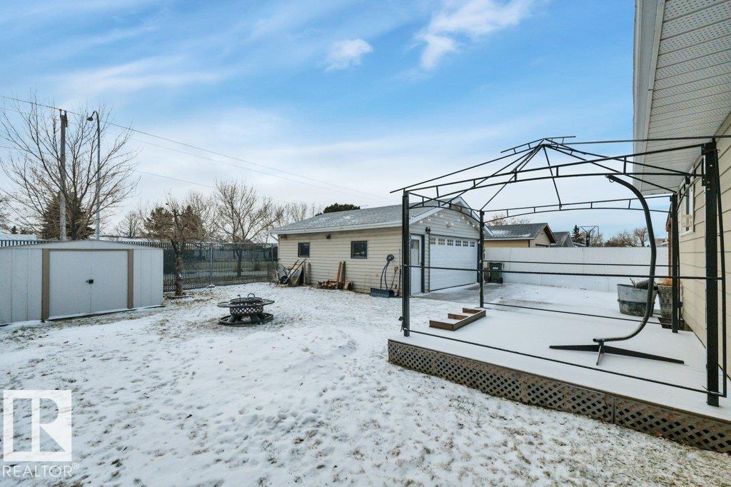 Beautiful family home in Southpark! This bungalow features a spacious living room with a cozy gas fireplace, dining area with large windows, and a generous sized kitchen. There are 3 bedrooms on the main floor including the primary with a walk-in closet and ensuite with 2 sinks. There is also an additional 4 piece bathroom on the main floor. The fully-finished basement has two additional bedrooms, 3-piece bathroom, storage area, laundry, and a huge rec room. The yard has a covered deck, large storage shed and and an oversized heated garage. New shingles, newer windows on most of the man floor, newer water tank. Fully fenced, landscaped and awaiting its new family! Steps to Notre Dame School, and close to the Leduc Recreation Centre.