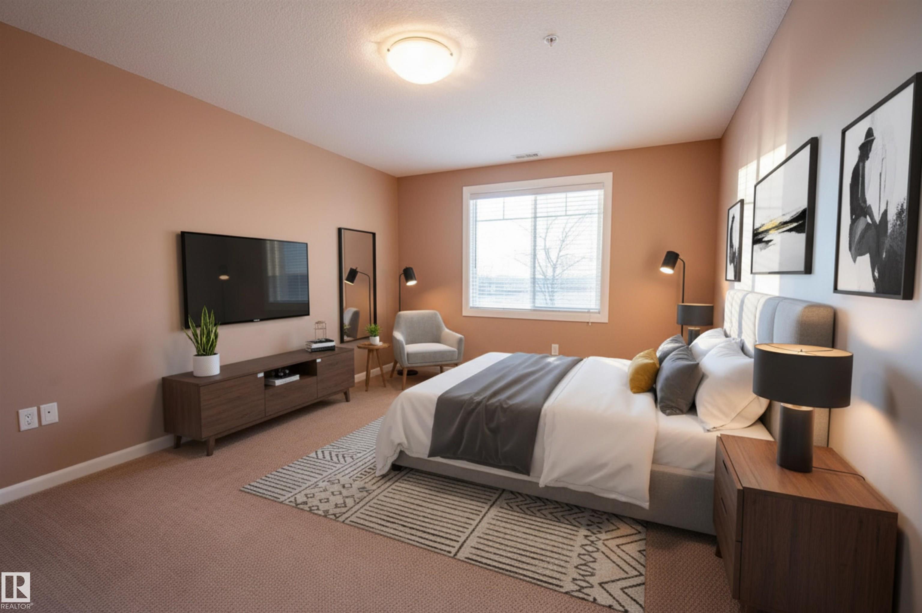 Live the Good Life in the sought-after 300 building at the Palisades in Sherwood Park. This exceptionally well maintained west-facing main-floor condo is flooded w/ natural light. Backing onto stunning greenbelt w/ wetlands and walking trails?an incredibly rare view. Conveniently located as the first unit off the entranceway, it offers a spacious layout ideal for entertaining! Enjoy a massive kitchen w/ a huge peninsula, two walk-in closets at the entry, and a laundry area w/ extra storage. The smart split-bedroom floorplan features a bedroom and bath on one side and a private primary suite with ensuite on the other. The brand new Forced-air heating system provides fresh air exchange w/ cozy comfort vs. standard baseboard systems. The ground-level patio has direct access to green space. Building is loaded w/ amenities: games room, theatre, full gym, steam room, sauna, and a car wash! A rare combination of location, view, and lifestyle. Visit REALTORŪ website for more info! Some photos are virtually staged