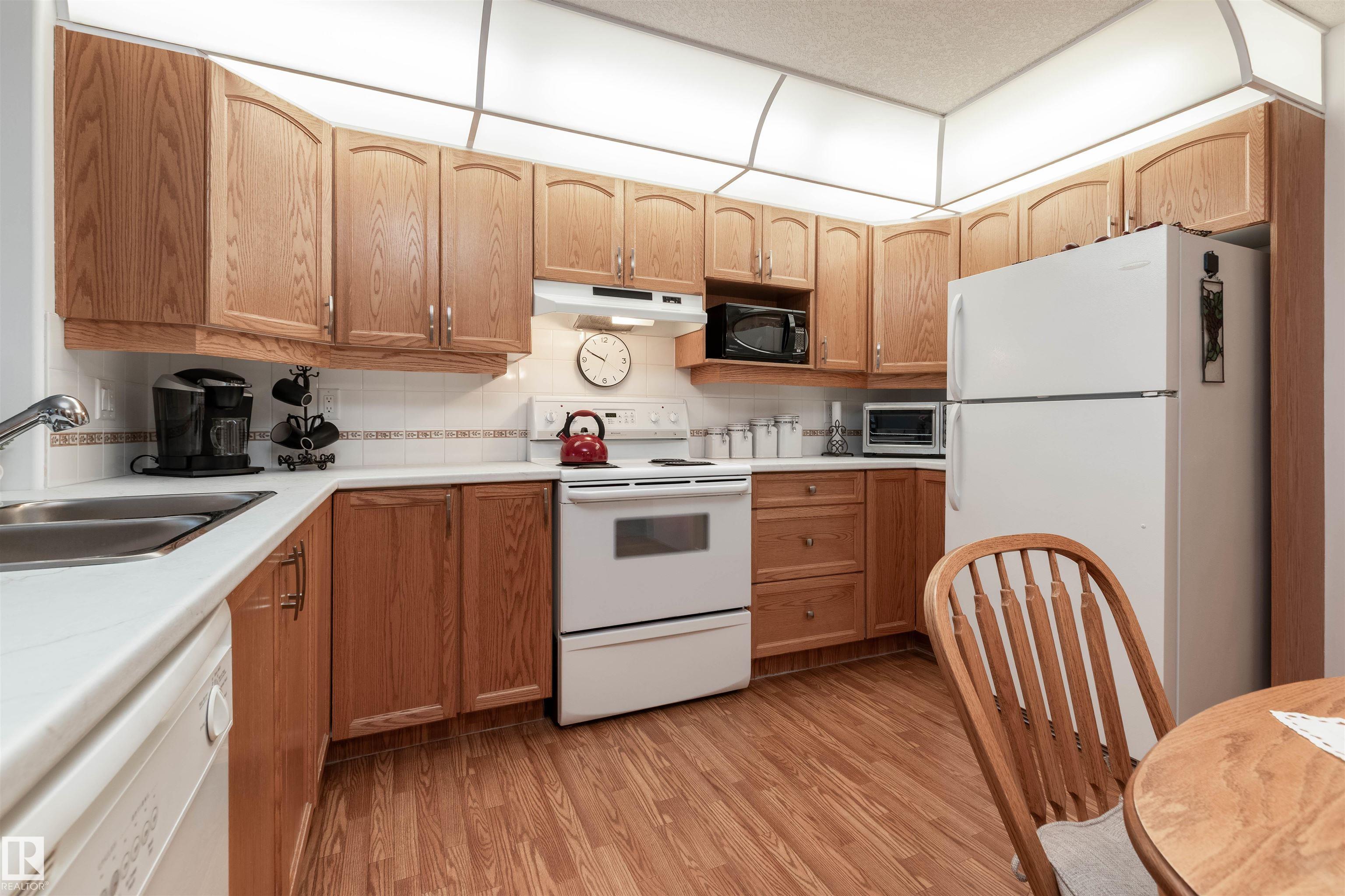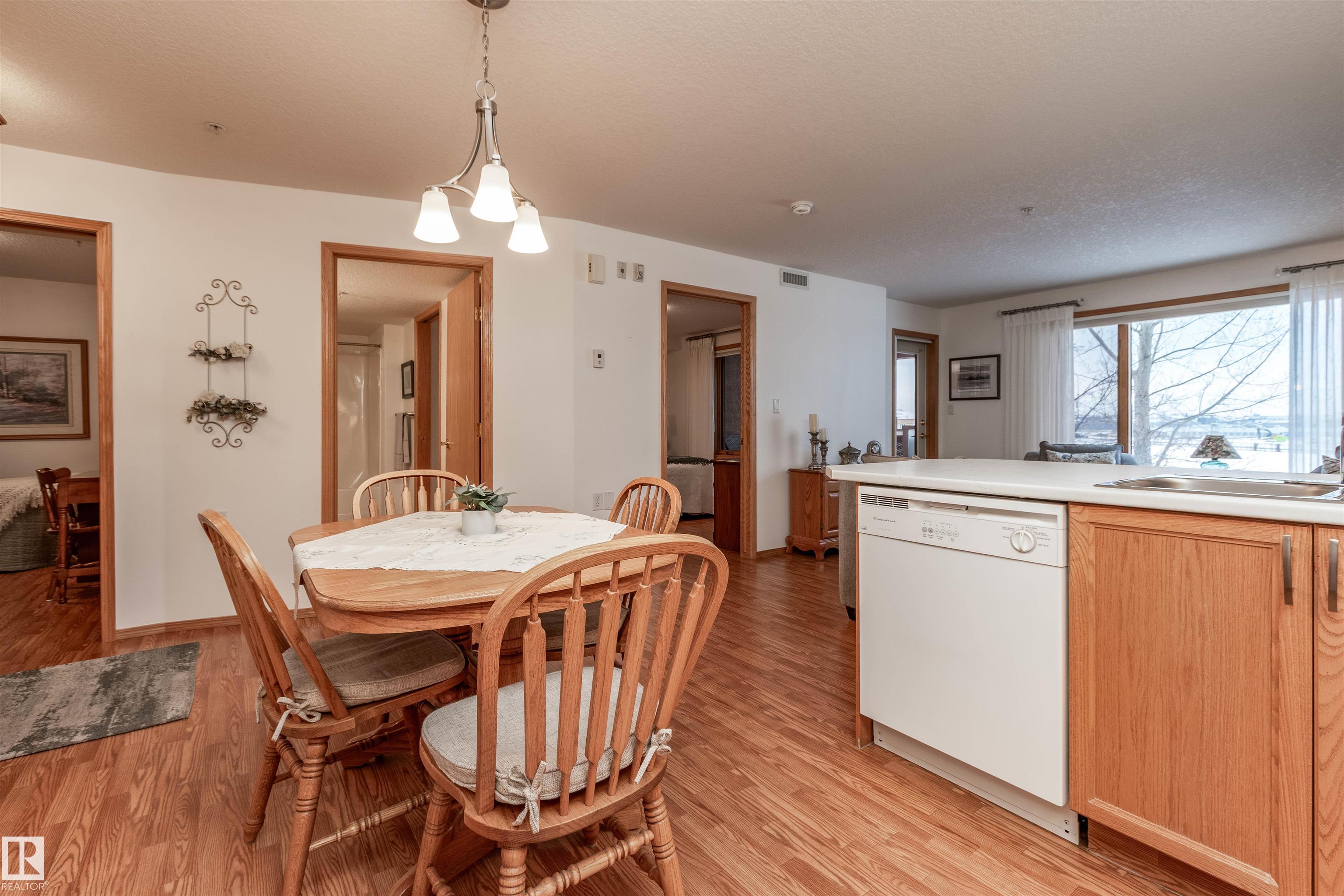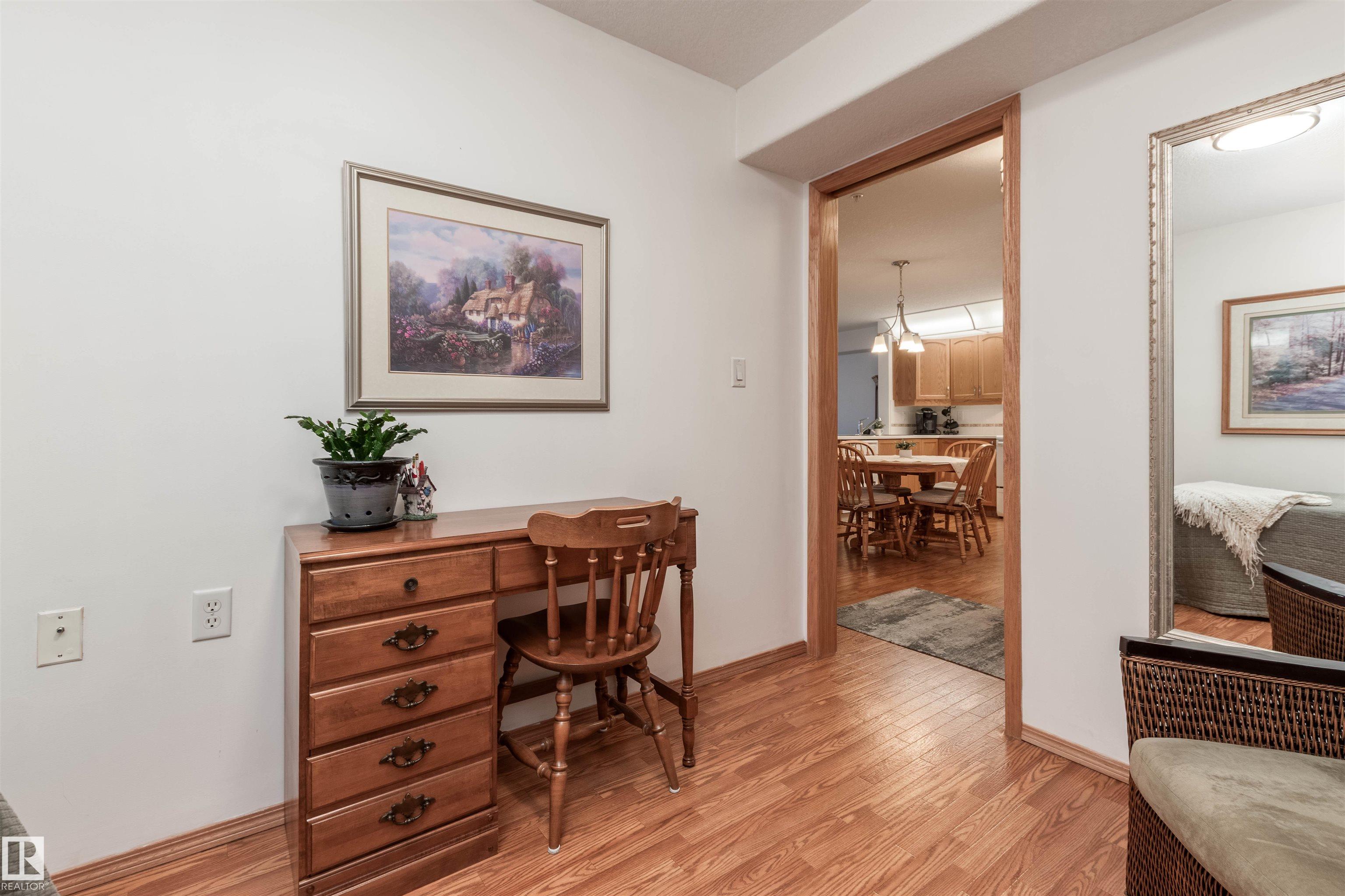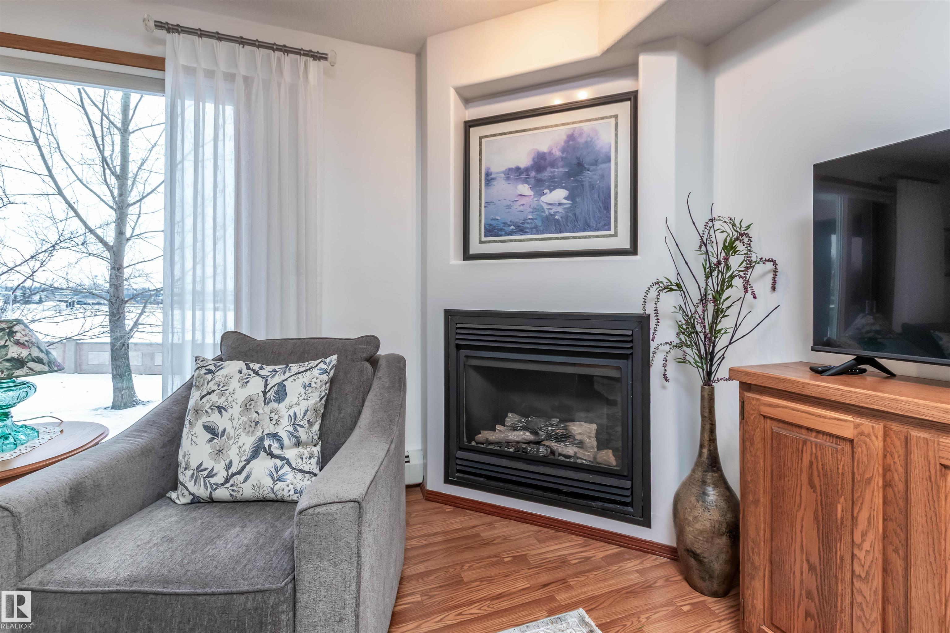 A great place to call home with lots of amentities and a real community feel. Amenities include a snooker table, pool tables, shuffleboard, darts, a library, swimming pool, hot tub, gym, hobby room, guest rooms, common room for special events, outdoor courtyard, gazebo, and carwash. Very well maintained bright air conditioned suite with a large bedroom, attached bathroom, den, kitchen and dining area open to the large living room with a cozy fireplace and door to a sunny west facing deck open to a green space with a natural gas BBQ hook-up. Nothing to do but move in and relax.