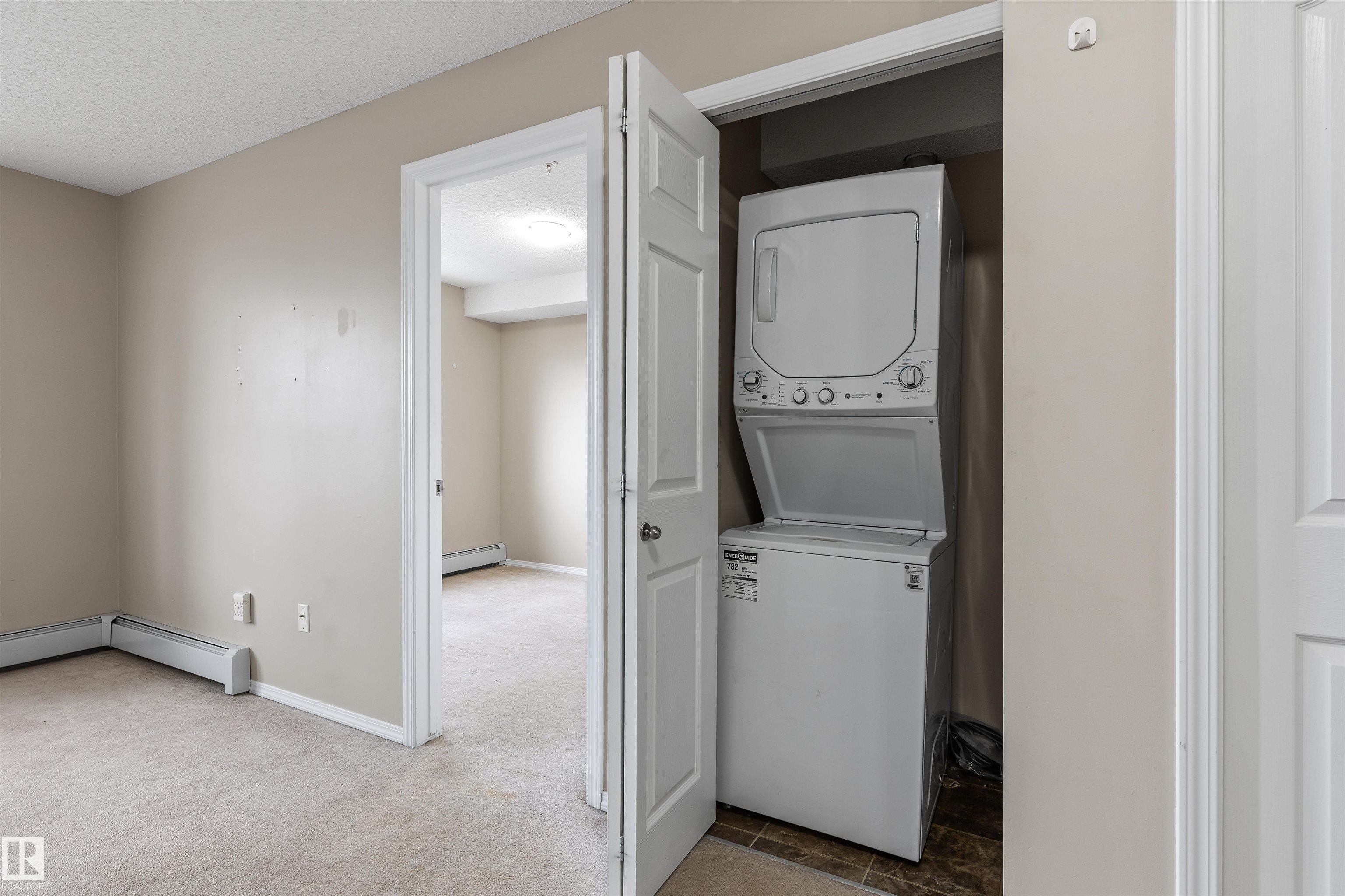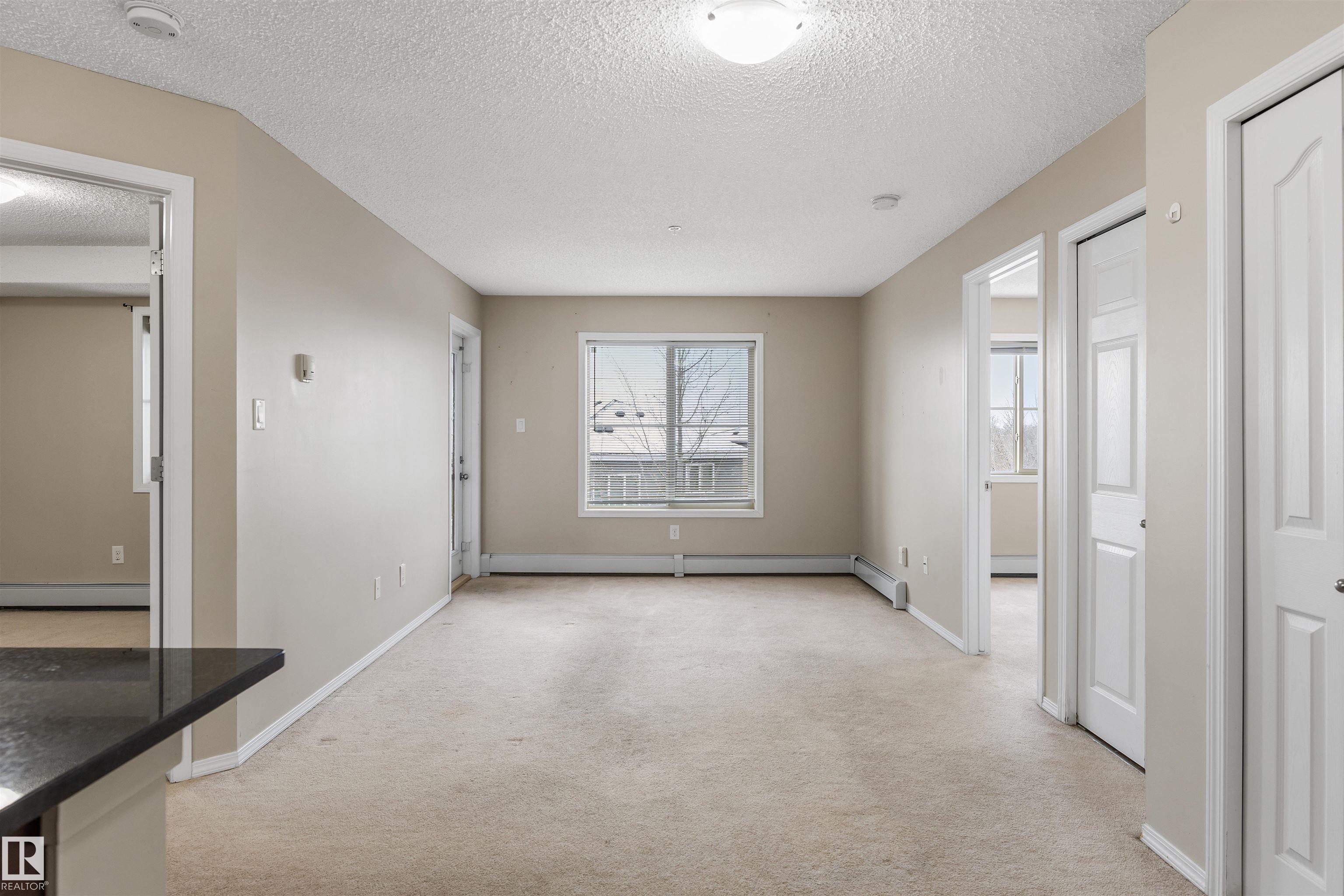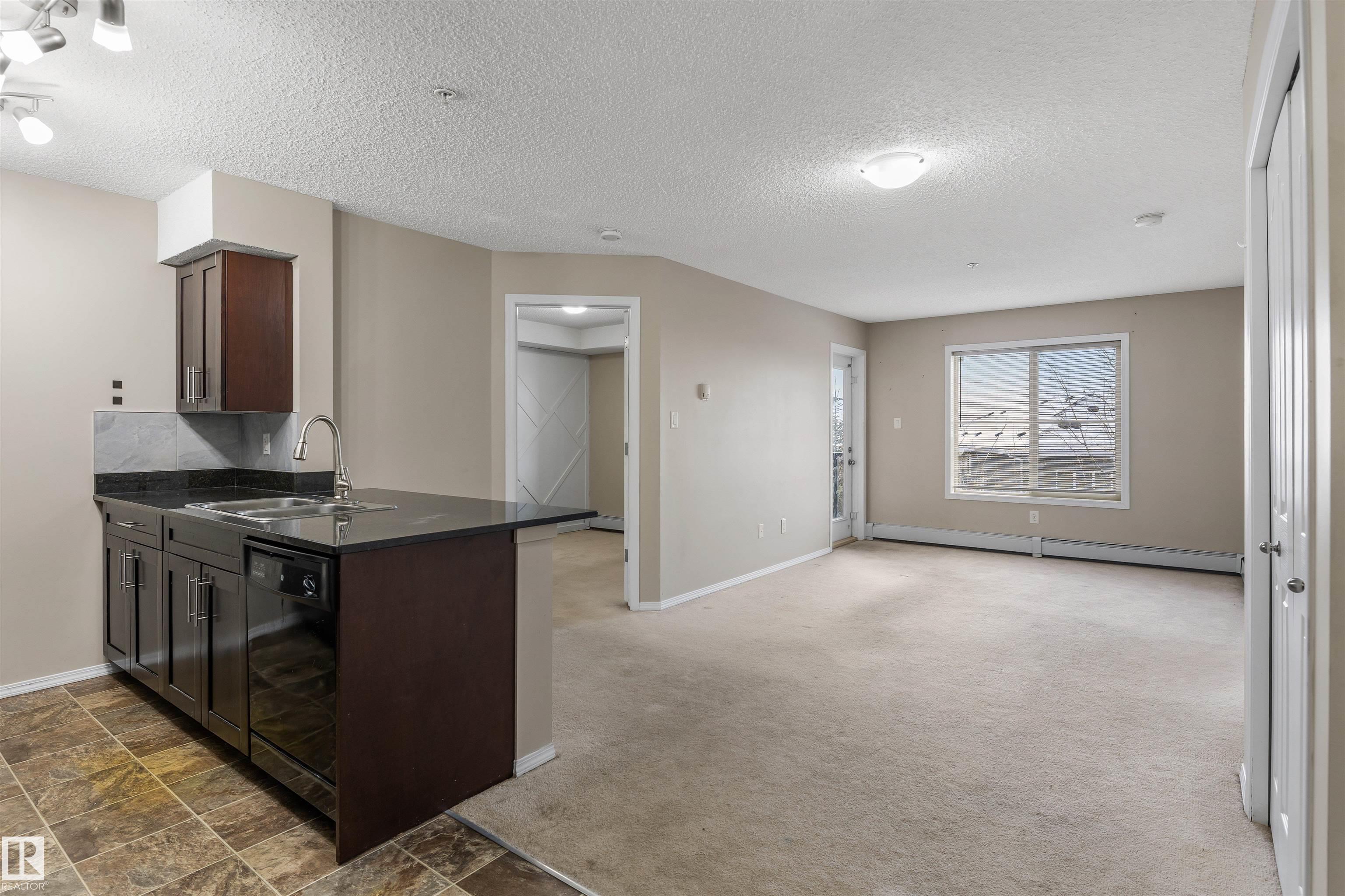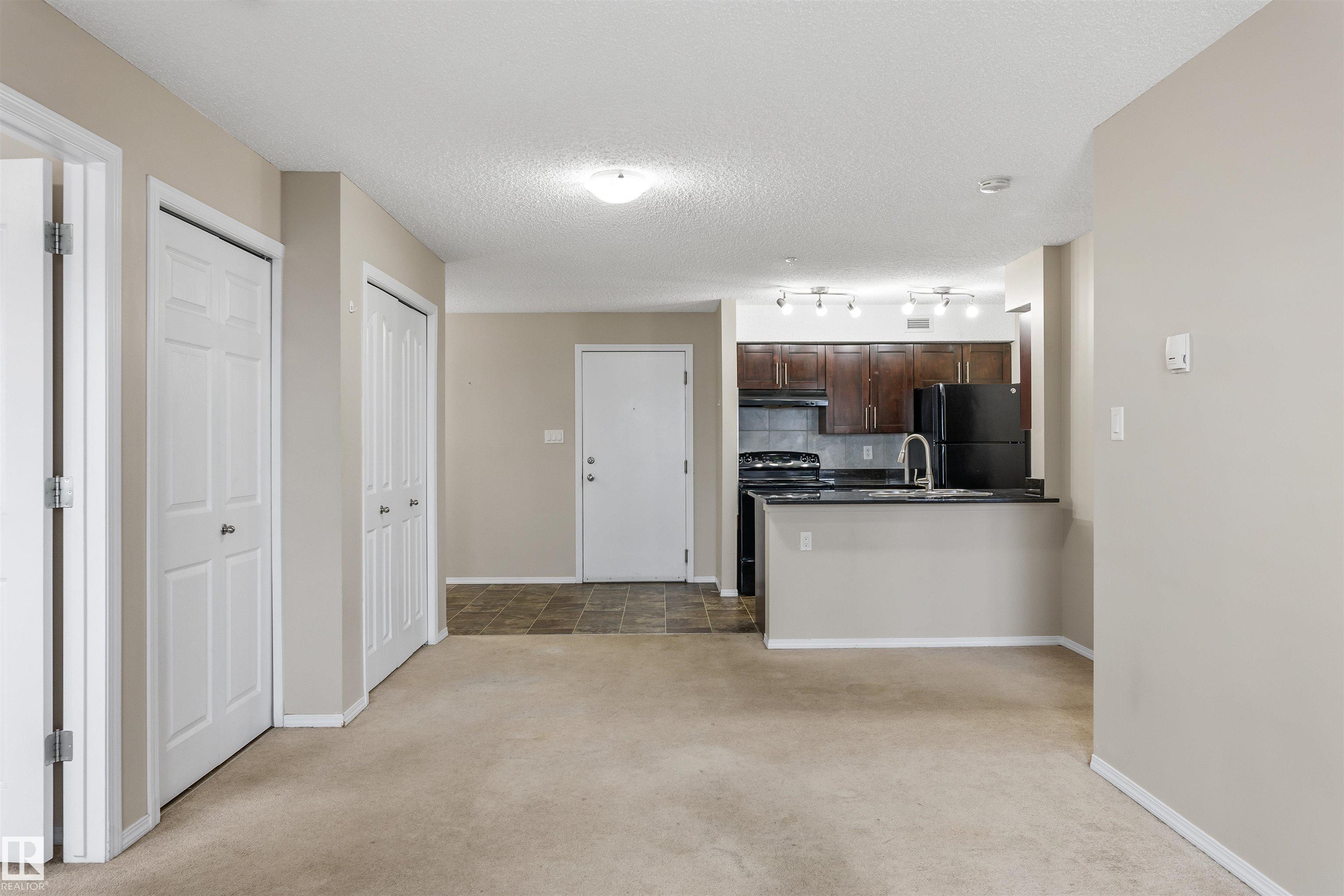 McConachie 2 bed +den, 2 full bath with a layout that truly feels like a home, crafted for real living. Soft east-facing light provides a calm, uplifting start each morning. The main living area offers impressive width and flow, easily accommodating full-size furnishings. The kitchen features rich maple cabinets, granite counters, a peninsula with extended prep space, and a black appliance package, creating a cohesive, warm aesthetic throughout. The den serves perfectly as a full dining area for hosting or a comfortable home office with room to work. Bedrooms sit on opposite sides for balance and privacy. The primary includes a walk-through closet and a 4-pc ensuite with granite and tile finishes, while the second bedroom has access to another full 4-pc bath. In-suite laundry adds convenience. The balcony is a meaningful extension of your living space with room for a BBQ. Parking is an energized stall close to the building for easy access. A home with substance, thoughtful flow, and refined finishes.