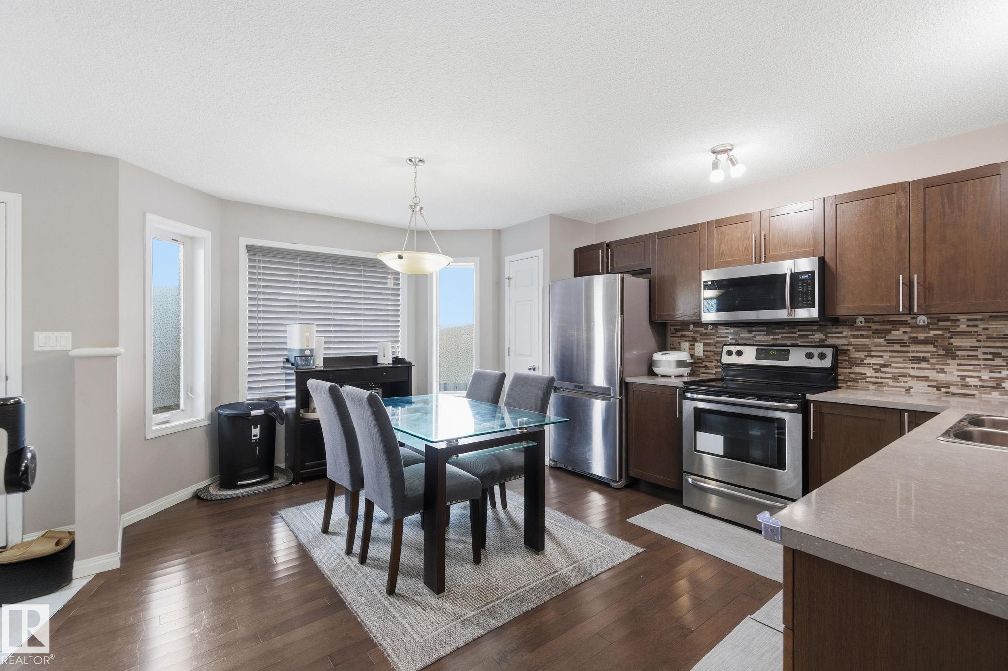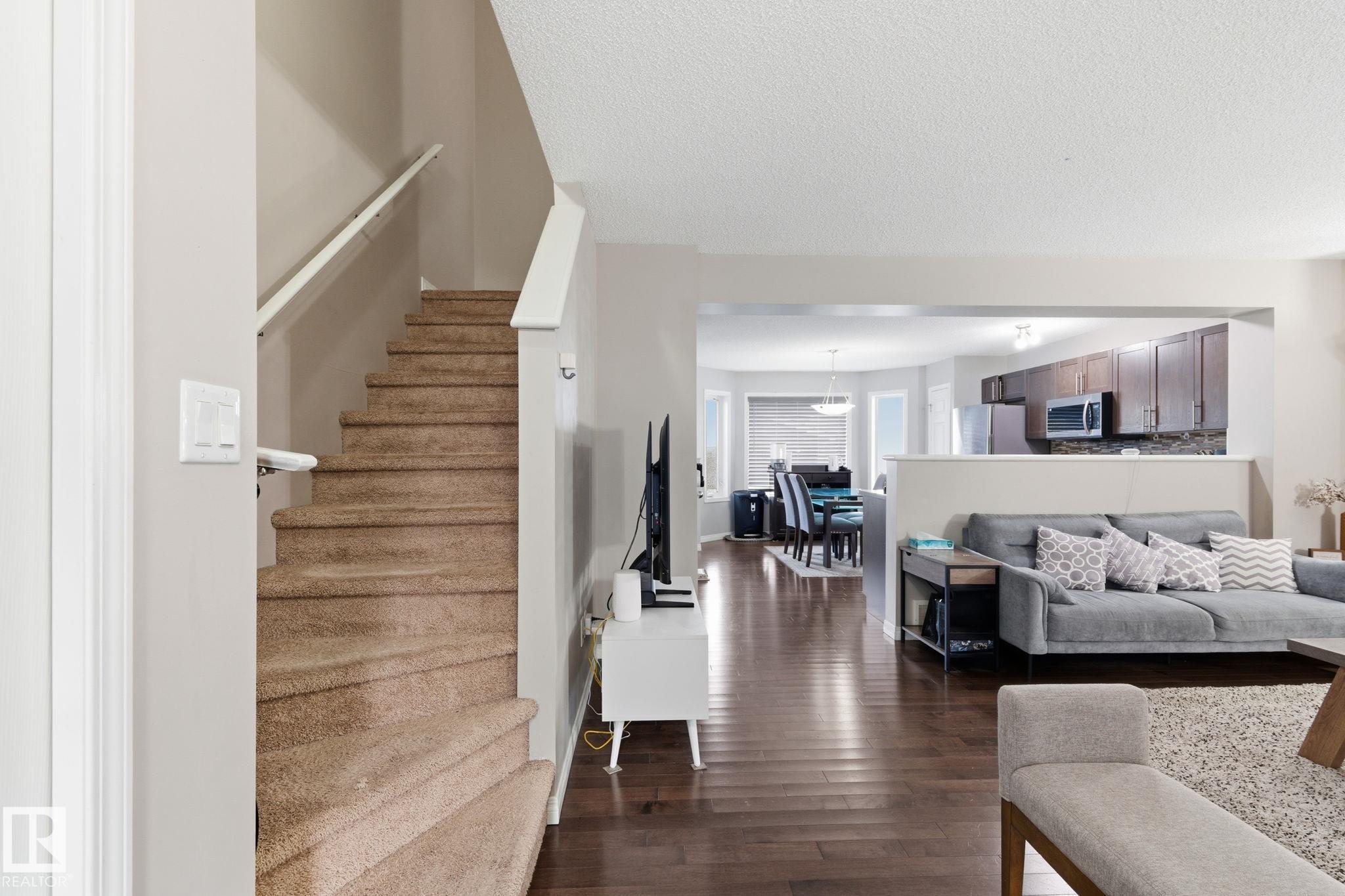 Experience Summerside living with lake access, beach club amenities, and a warm community feel. This four bedroom luxury half duplex sits in an amazing location beside a walking path and directly across from a park and playground, perfect for families. The main floor offers hardwood and tile with an open concept kitchen and living room filled with natural light. Upstairs features three comfortable bedrooms including a primary suite with a three piece ensuite and a large closet. The fully finished basement adds flexibility with a bright living area, spacious bedroom, and three piece bathroom ideal for guests or family. A custom double detached garage stands out, and the low maintenance backyard lets you enjoy the space without the upkeep. Close to schools, green spaces, and all that Summerside offers. This is a home worth seeing.