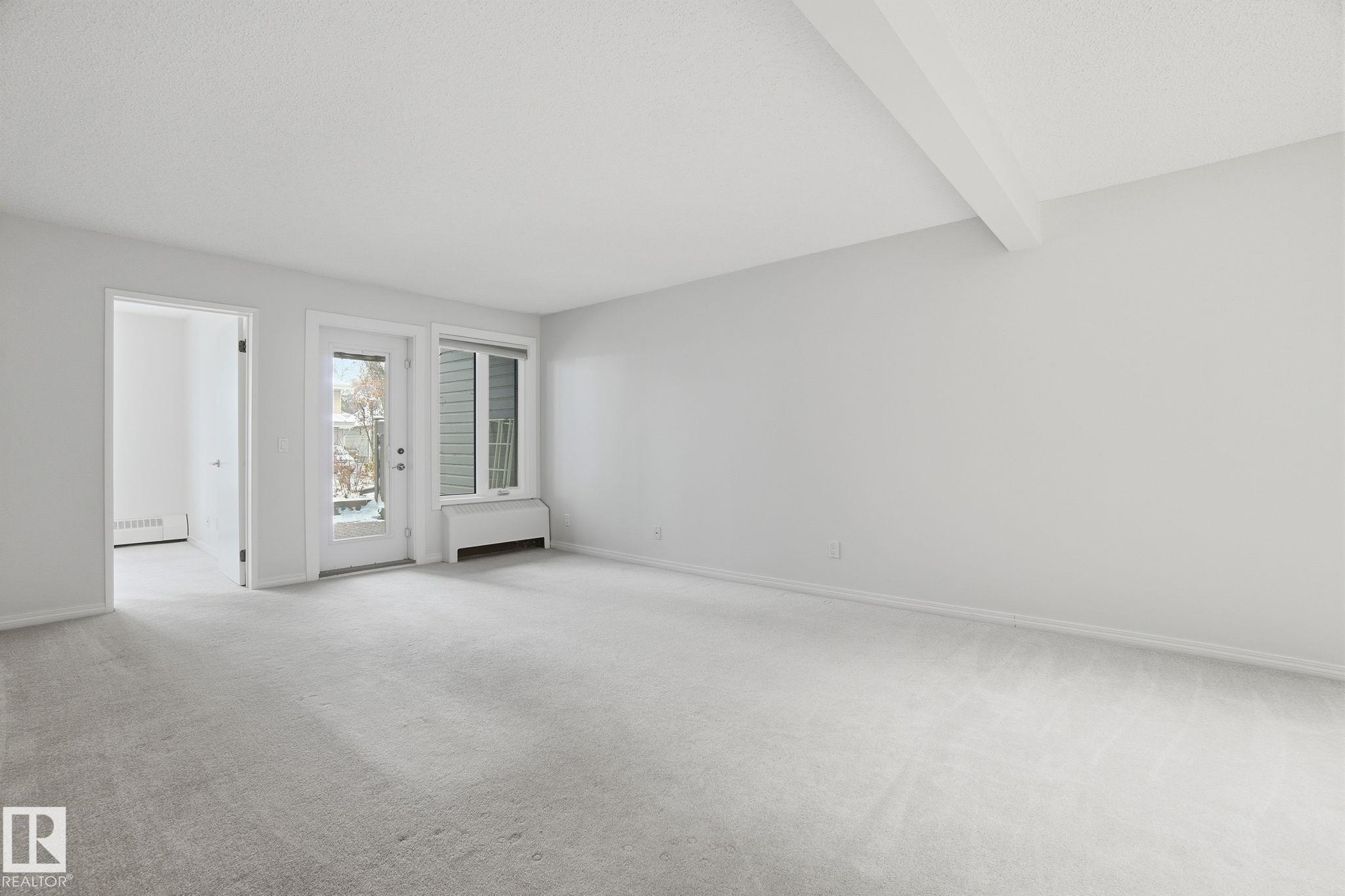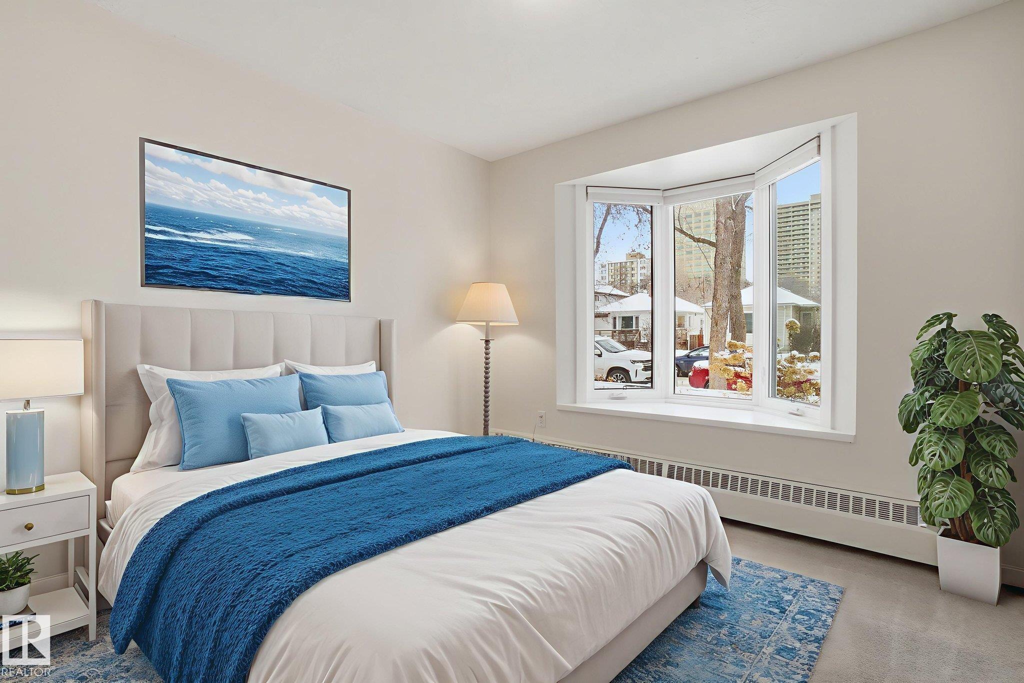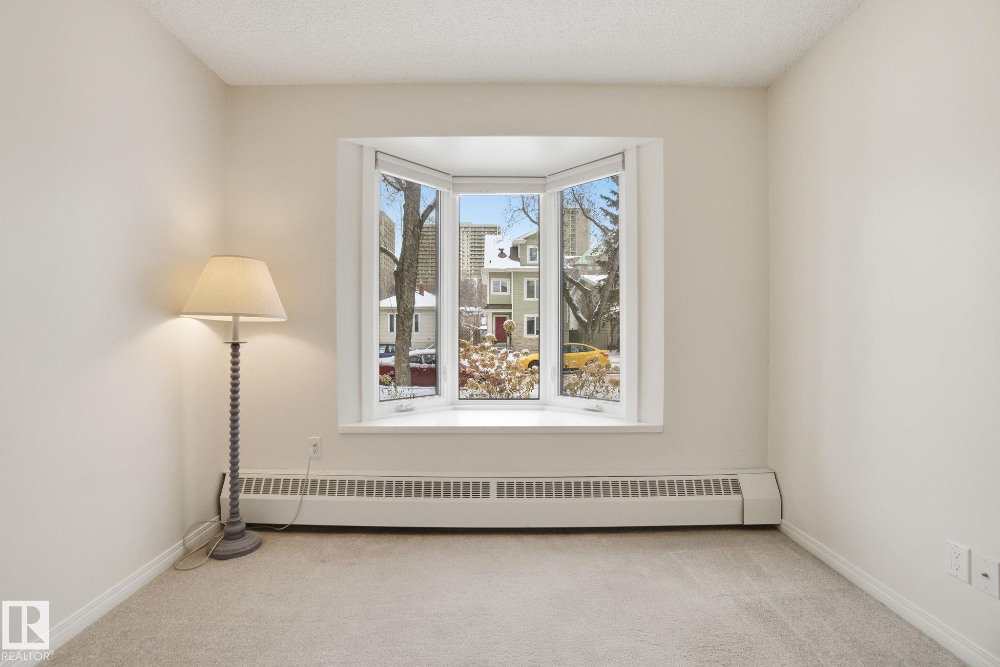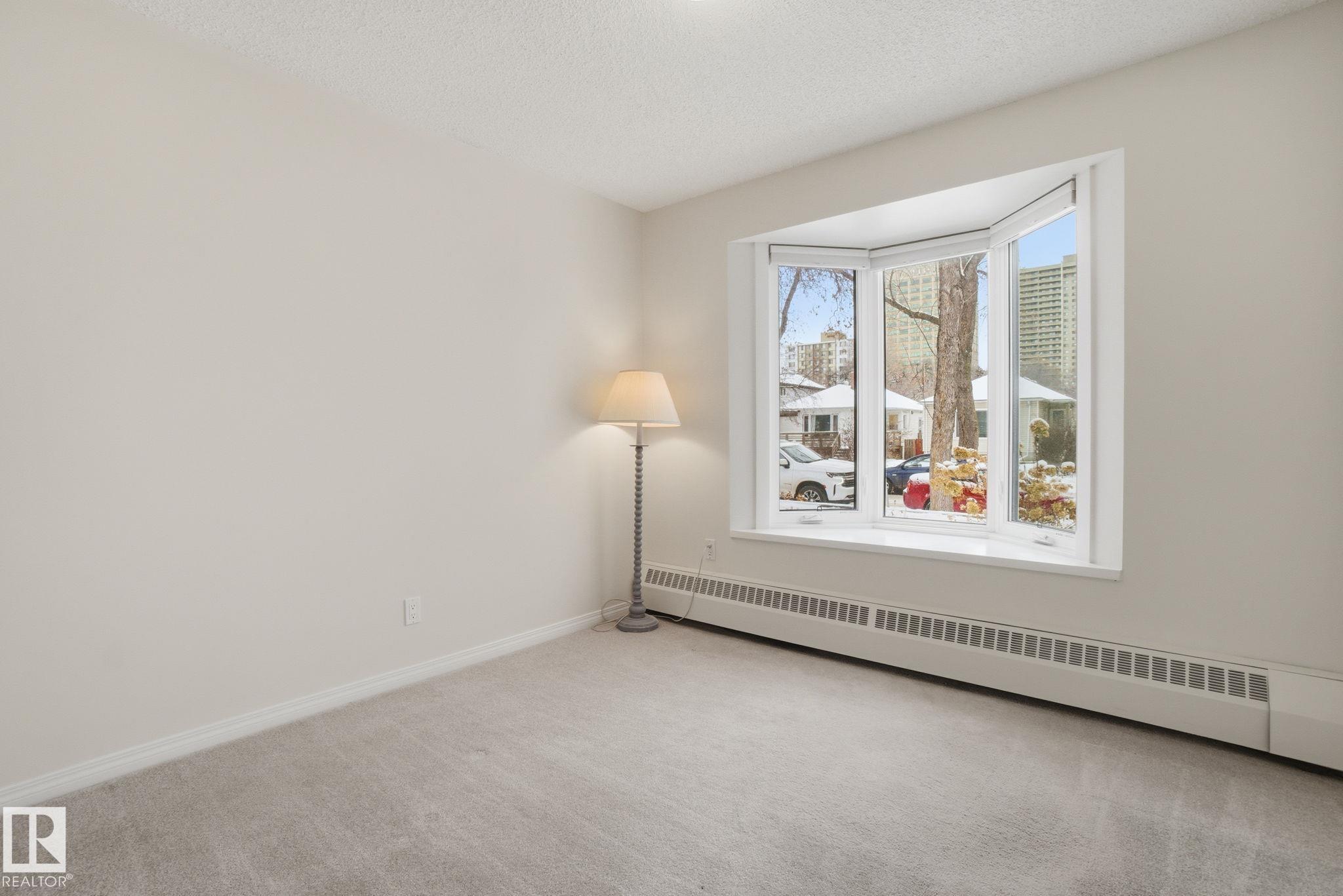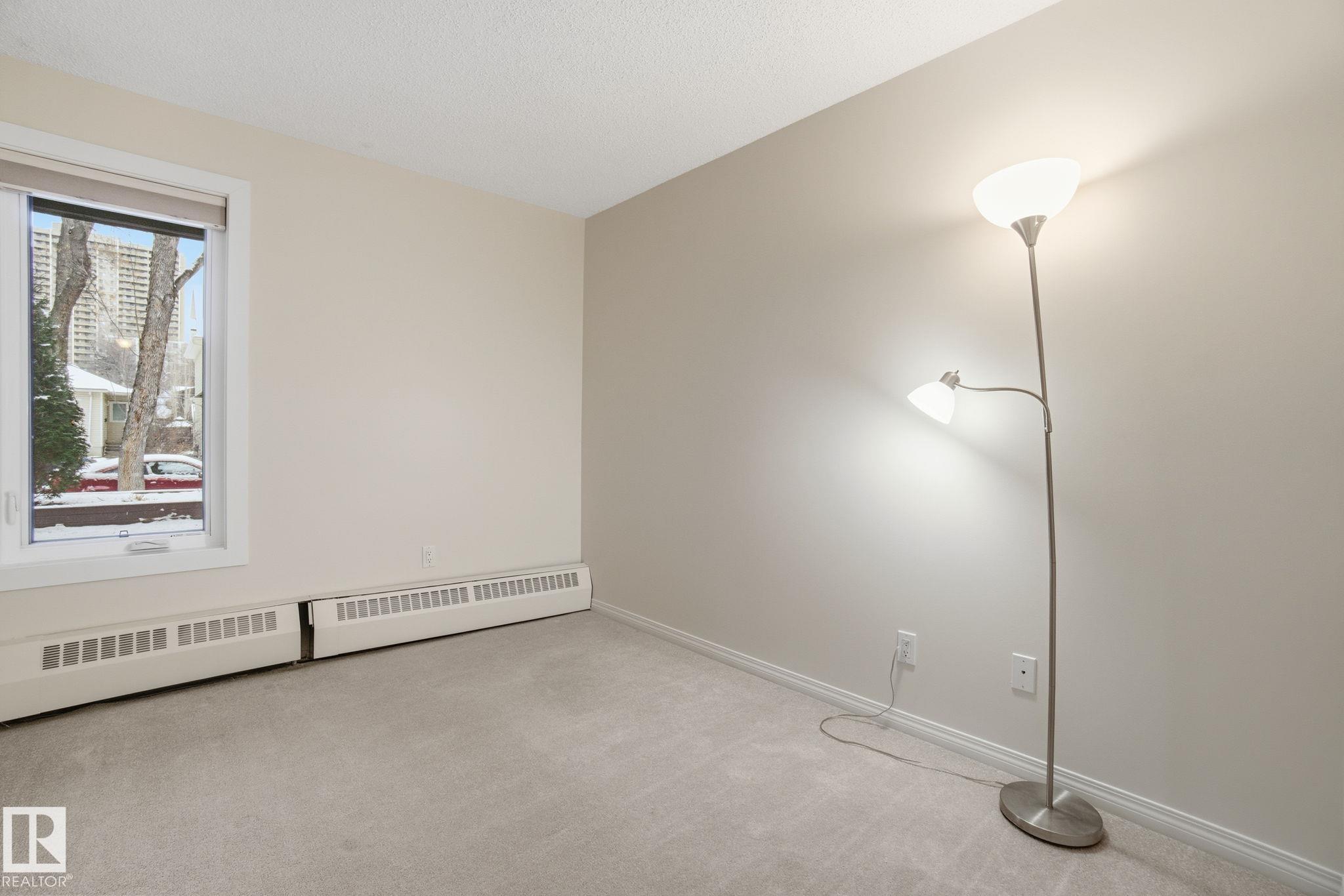 Welcome home to Hampton Village in this expansive 2 bedroom PLUS DEN & 1 bath condo WALKING DISTANCE to University of Alberta Campus. You will love the bright/open (freshly painted fall 2025) floor plan featuring a bright white kitchen with newer dishwasher & stove (last 5 years)! Generously sized primary suite with large walk-through closet & a 4 piece bathroom is a nice oasis after a busy day. A second bedroom is perfect for a roommate or guests! An additional full den overlooking the quaint front patio & tree lined street. IN-SUITE LAUNDRY - a rare find! SPRAWLING brick patio facing mature trees! Easy access to TWO underground heated parking stalls & assigned storage! Prime location within walking distance to University of Alberta Hospital & Campus, HMART & Safeway, Starbucks, Tim Hortons & all the shopping that Whyte Ave has to offer. Convenience at its finest- Only a 10 MINUTE WALK to TWO LRT stations - beat downtown vehicle traffic! **CONDO FEES OF $803.48 INCLUDE heat & water** Welcome home!