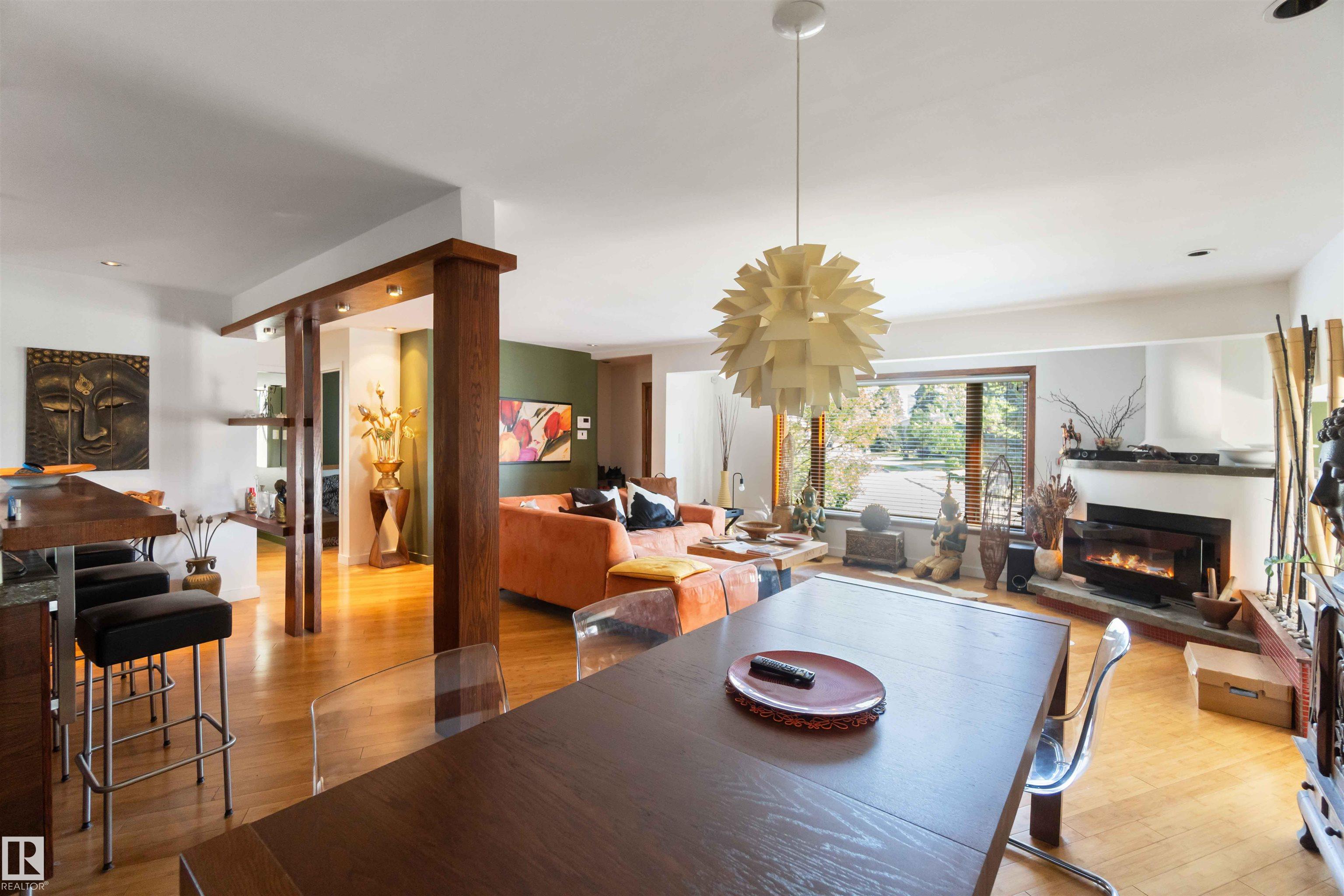 UPDATED BUNGALOW ON A LARGE PIE-SHAPED CORNER LOT (7,285 sq.ft.) in Queen Mary Park?steps from NAIT, Kingsway Mall, Grant MacEwan, Downtown, and adjacent to three green spaces/parks. This unique home has a tower attachment to the main bungalow. The main floor features bamboo flooring, two bedrooms, a bathroom with a jacuzzi tub, and an open-beam kitchen with modern lighting and concrete countertops. Additional highlights include a stone fireplace, water heating system, and a green room with heated floors.The tower?s upper-level bedroom showcases cinematic downtown views. The basement is partially finished with laundry and a 3-piece tiled bathroom.The fenced in backyard is a private, lush oasis with single-garage parking. Ideal as a primary residence, redevelopment project, or investment opportunity. Bonus: can be negotiated and combined with the neighboring property (11022?110 Avenue) for a double-wide corner lot opportunity.