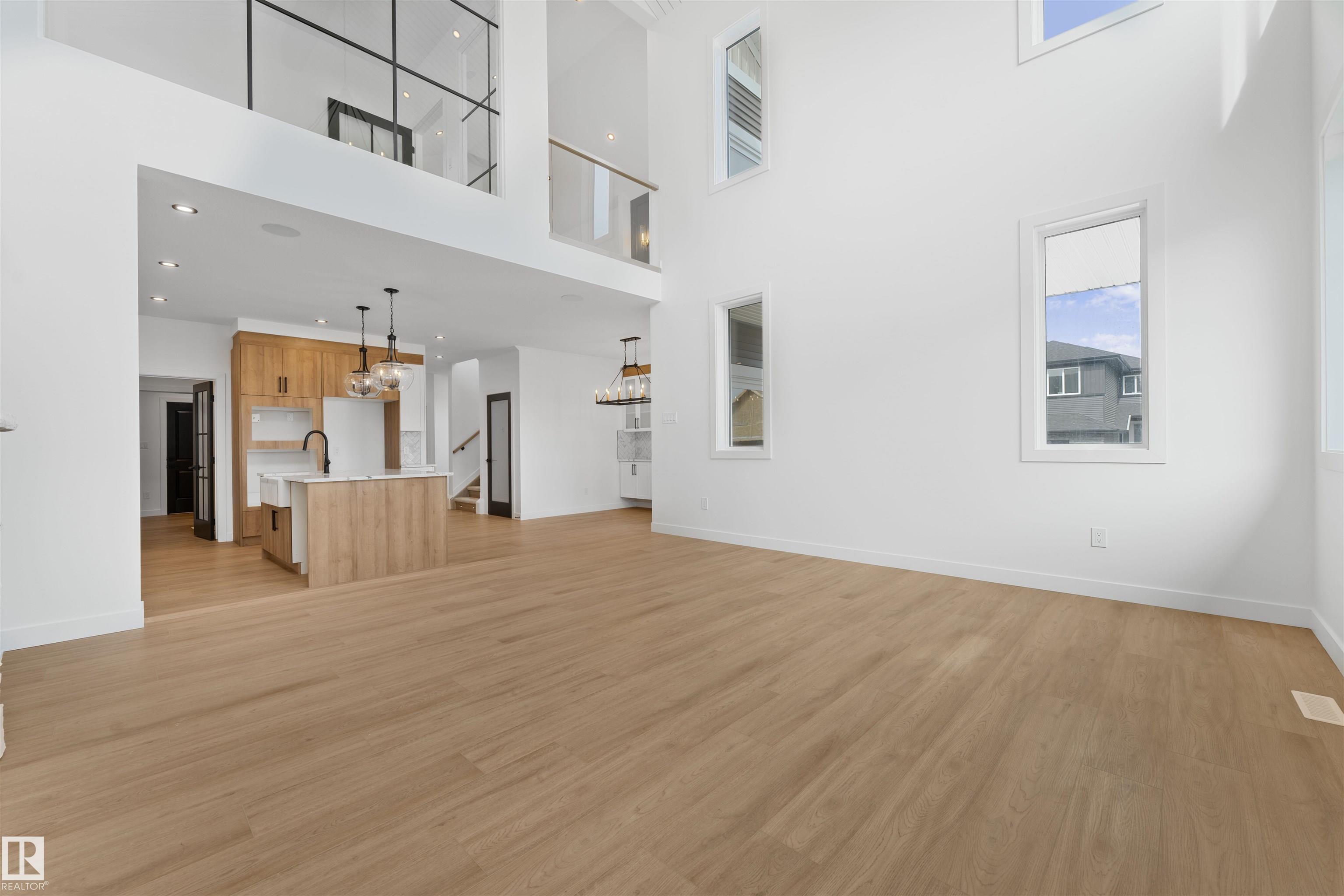 Stunning home with luxury Upgrades. Open-to-above living room with lot of windows, fireplace & beautiful feature wall. A convenient main-floor bedroom with a full bathroom is perfect for guests or extended family. The heart of the home is its modern kitchen, flowing into a dining area and expansive deck, ideal for summer gatherings. Upstairs beautiful bonus room with fireplace & feature wall, perfect for family entertainment, along with a private office/gym. The spacious primary suite with stunning ceiling & wall design offers a custom ensuite with a soaking tub, dual vanities, and a walk-in closet. Two additional bedrooms share a full bath. An upper balcony adds a peaceful retreat for morning coffee or evening relaxation. Every corner of this home has been thoughtfully designed, checking all the boxes for style, comfort, luxury and convenience.