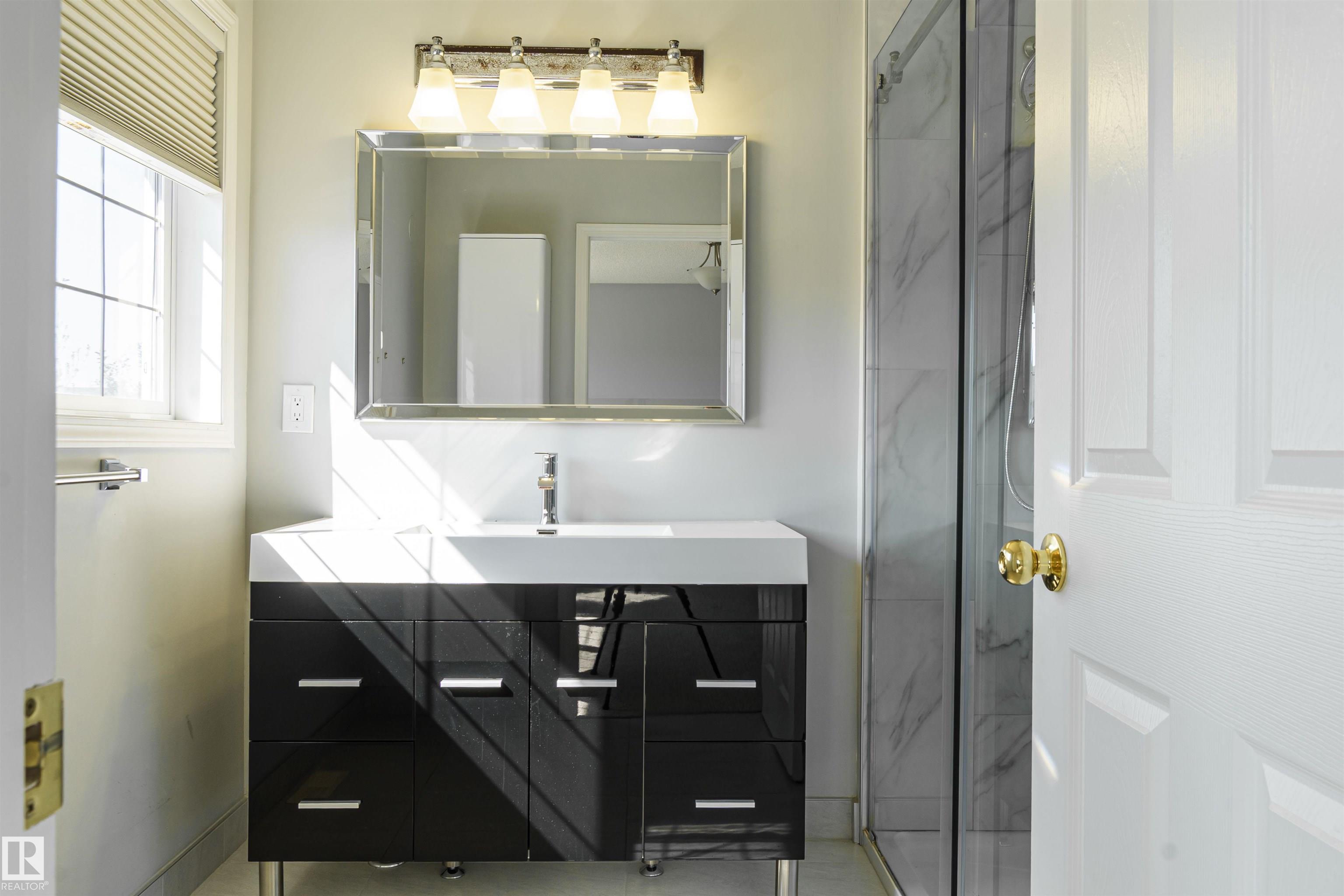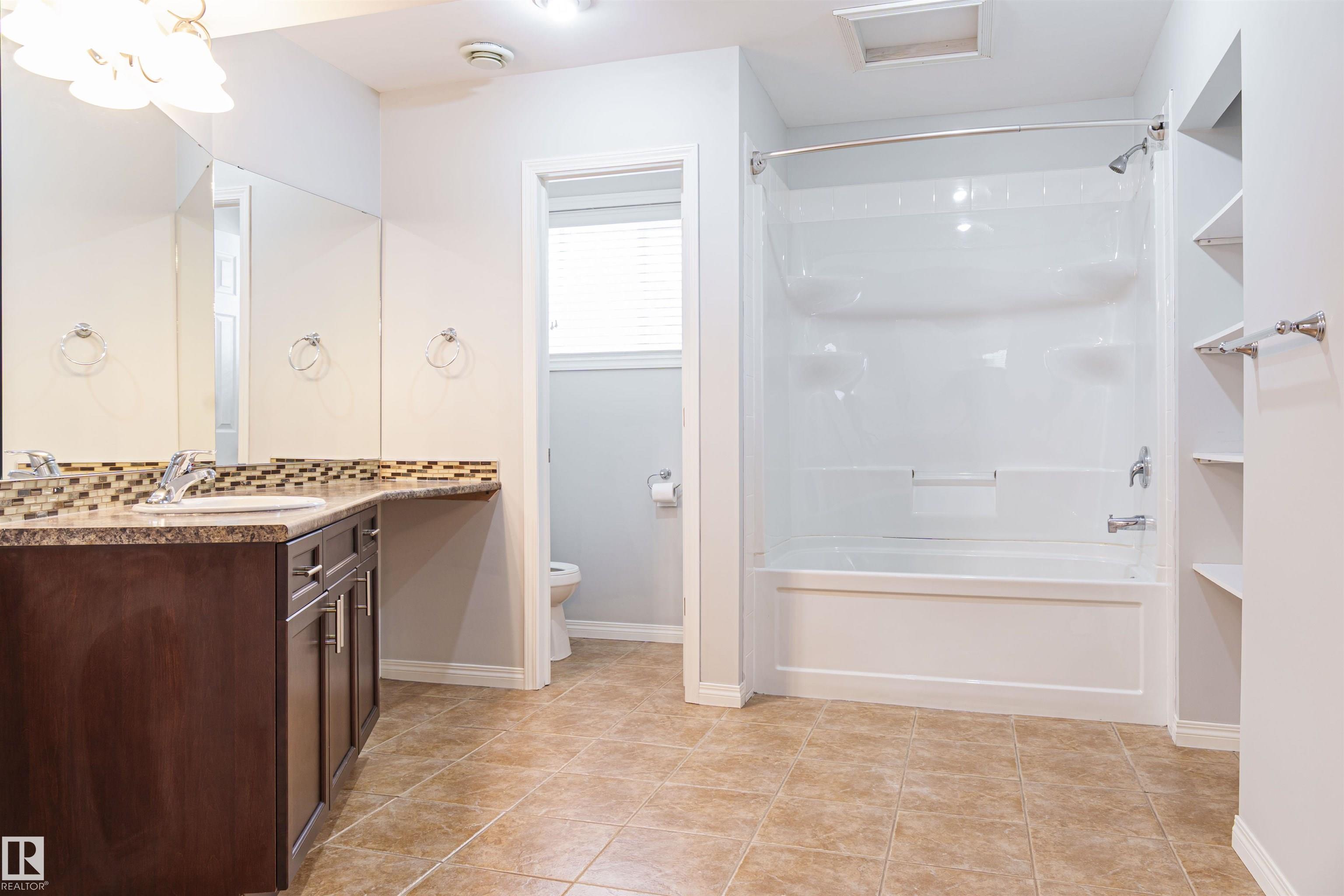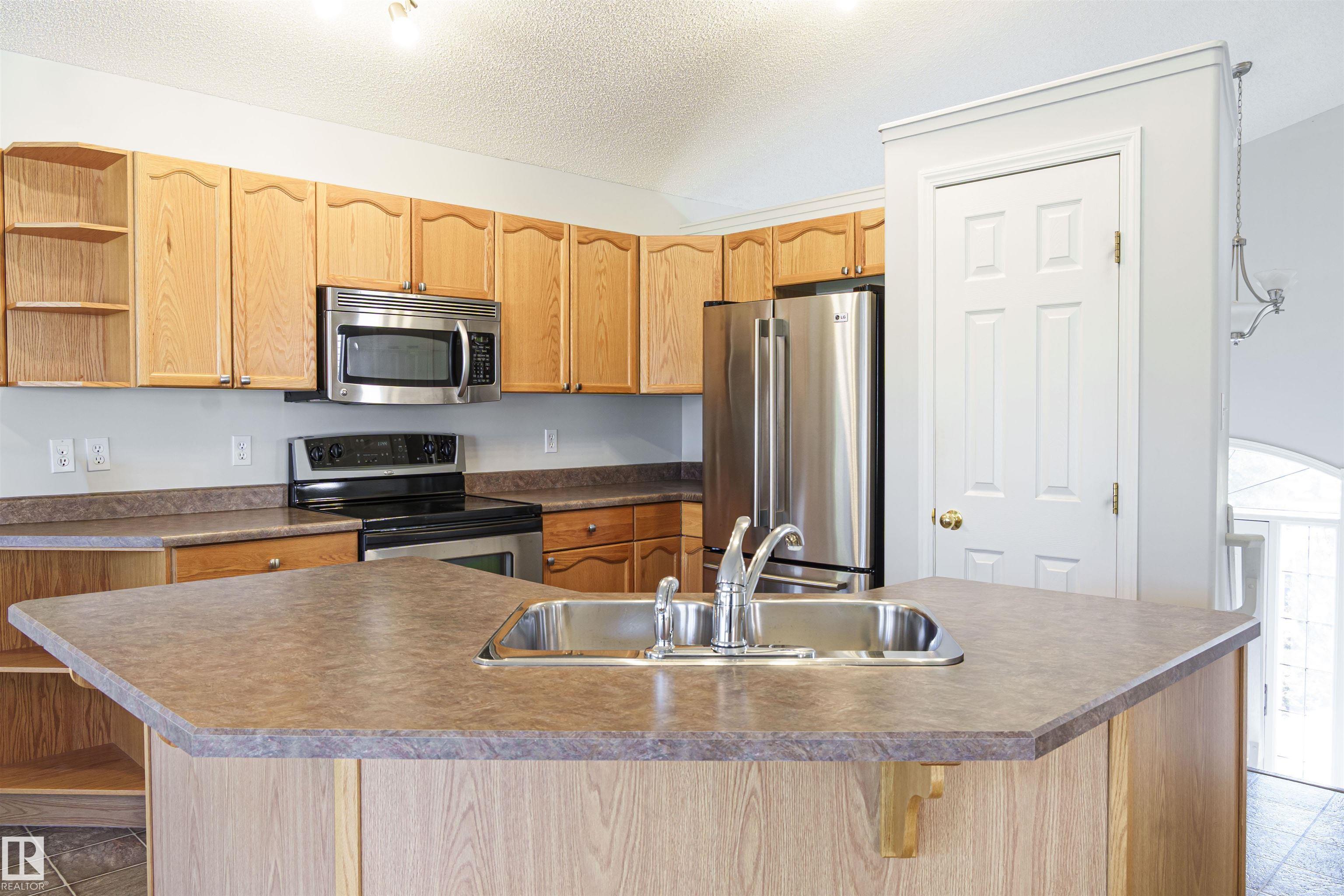 Located in the highly desirable community of Leger, this bi level offers over 2,400 sq ft of well planned, functional living space. With 4 bedrooms and 3 full bathrooms, the layout provides excellent flexibility, including separate front and rear access to the lower level. The kitchen features maple cabinetry, a walk in pantry, and a large island with raised eating bar, flowing into an open living room with gas fireplace and a versatile dining or flex space. A main floor bedroom and full bathroom add everyday convenience. Upstairs, the primary suite offers privacy with a walk in closet and a beautifully renovated ensuite. The lower level includes a spacious family room, two additional bedrooms, a full bath, and laundry with storage. An oversized garage and two tier deck complete the home. Walking distance to schools, parks, transit, and the Terwillegar Rec Centre. Major improvements include roof in 2023, furnace in 2020, two hot water tanks, and fresh paint. Clean, well maintained, and move in ready.