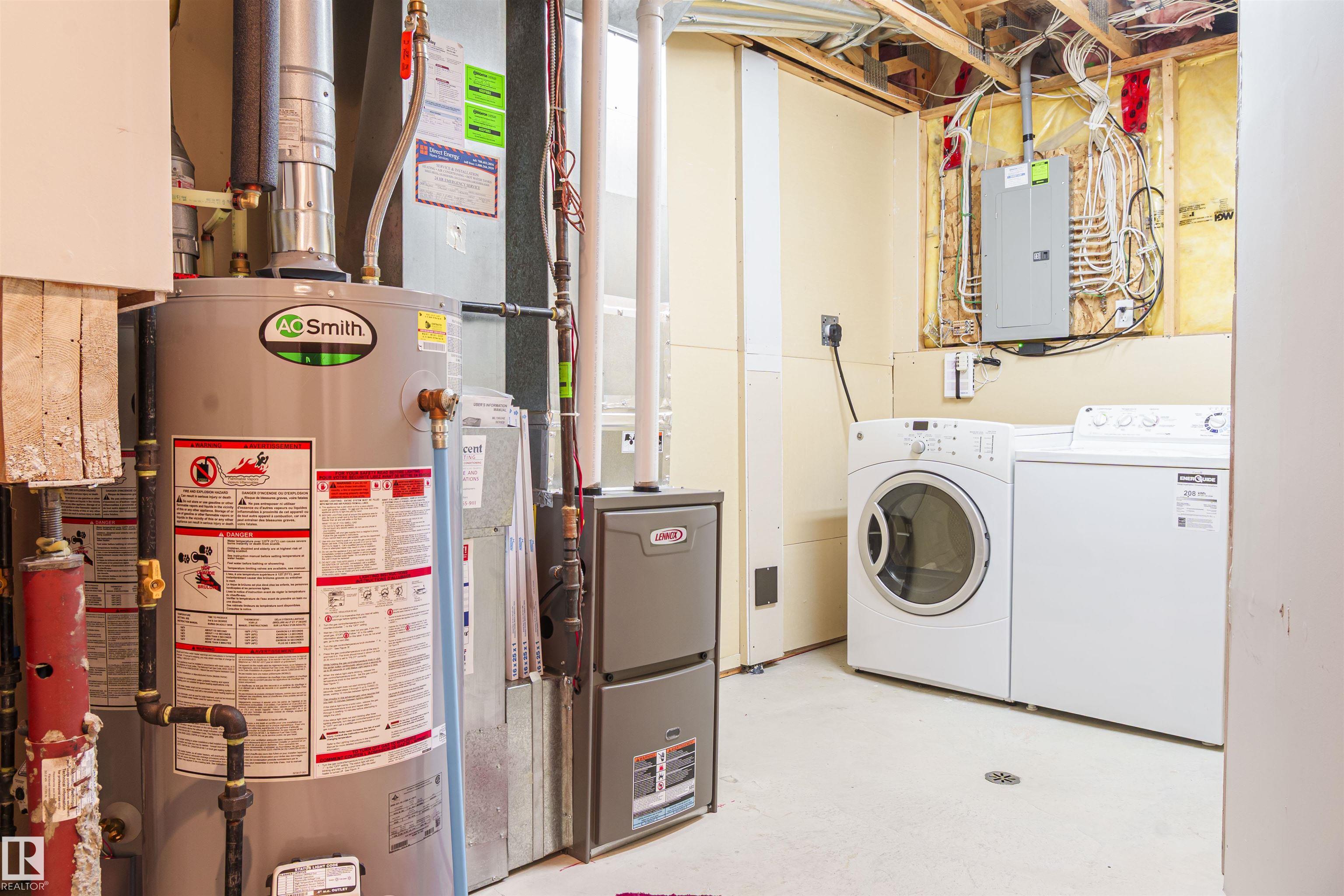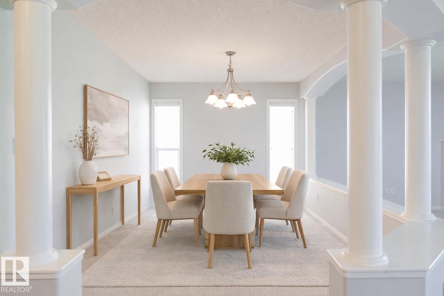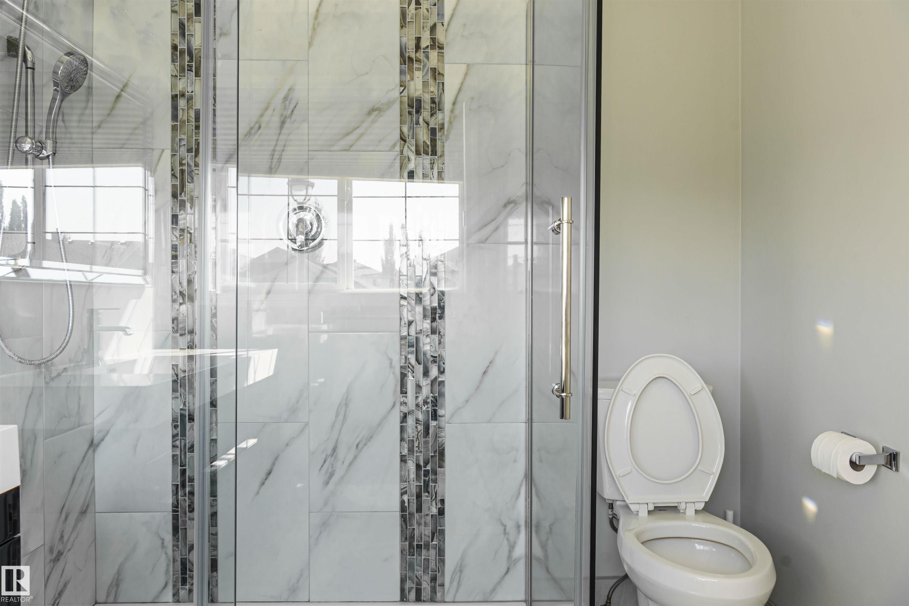 Located in the highly desirable community of Leger, this bi level offers over 2,400 sq ft of well planned, functional living space. With 4 bedrooms and 3 full bathrooms, the layout provides excellent flexibility, including separate front and rear access to the lower level. The kitchen features maple cabinetry, a walk in pantry, and a large island with raised eating bar, flowing into an open living room with gas fireplace and a versatile dining or flex space. A main floor bedroom and full bathroom add everyday convenience. Upstairs, the primary suite offers privacy with a walk in closet and a beautifully renovated ensuite. The lower level includes a spacious family room, two additional bedrooms, a full bath, and laundry with storage. An oversized garage and two tier deck complete the home. Walking distance to schools, parks, transit, and the Terwillegar Rec Centre. Major improvements include roof in 2023, furnace in 2020, two hot water tanks, and fresh paint. Clean, well maintained, and move in ready.