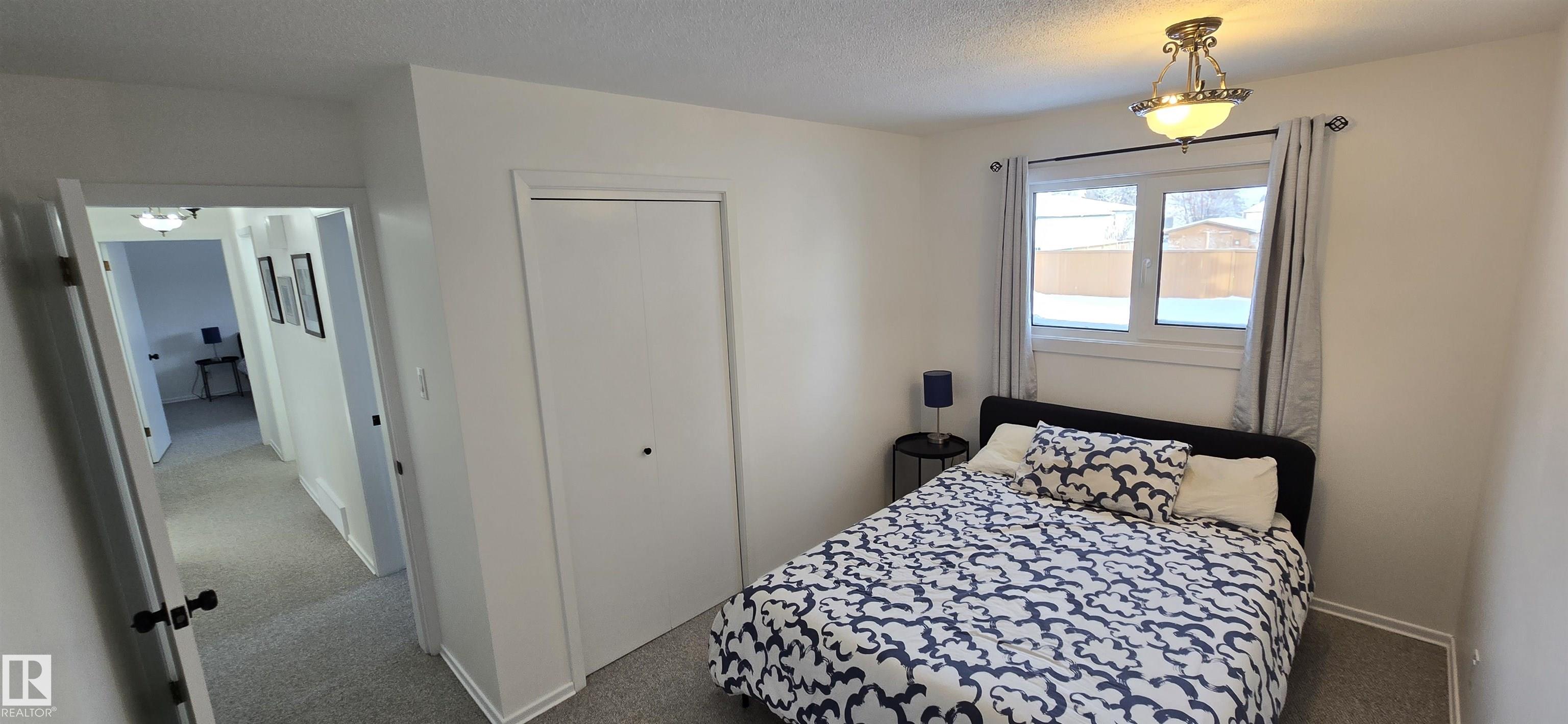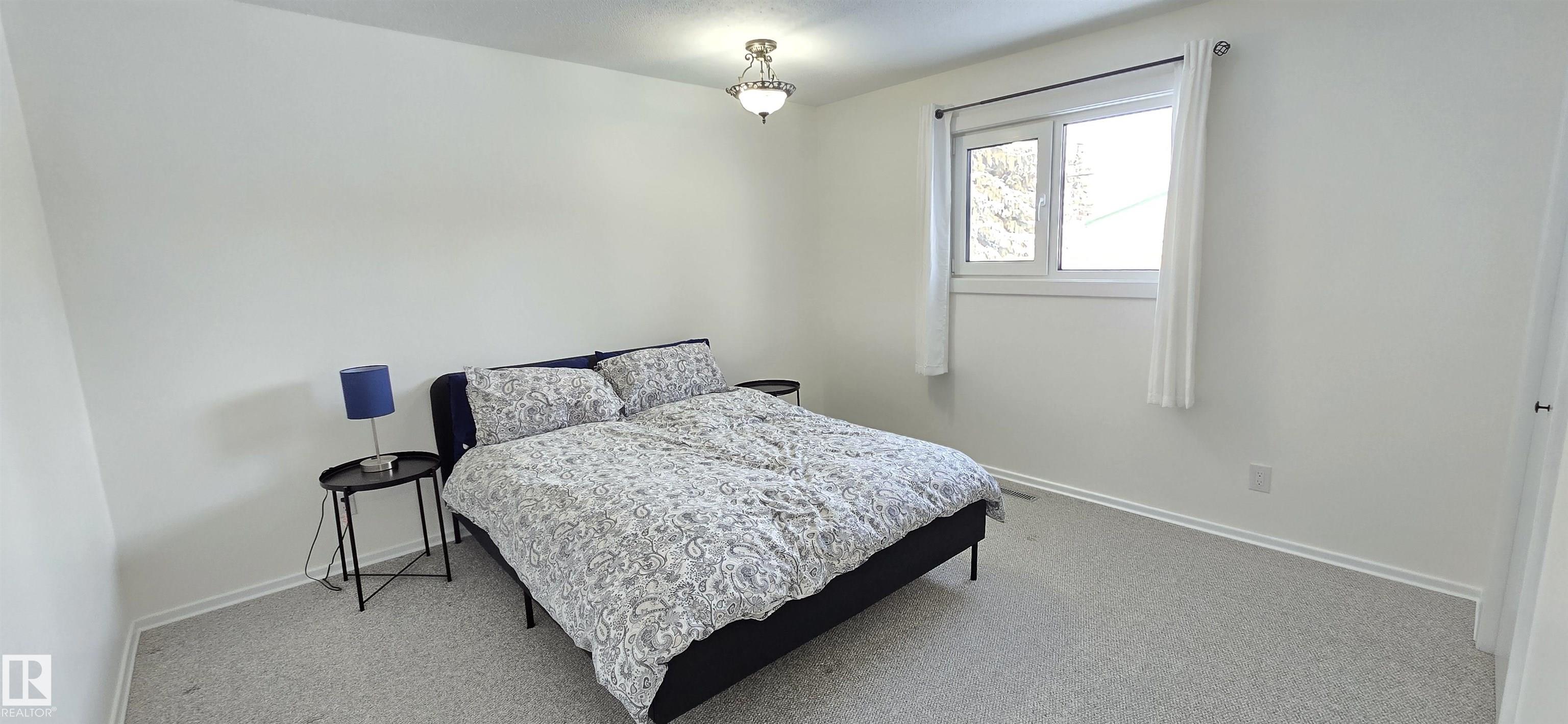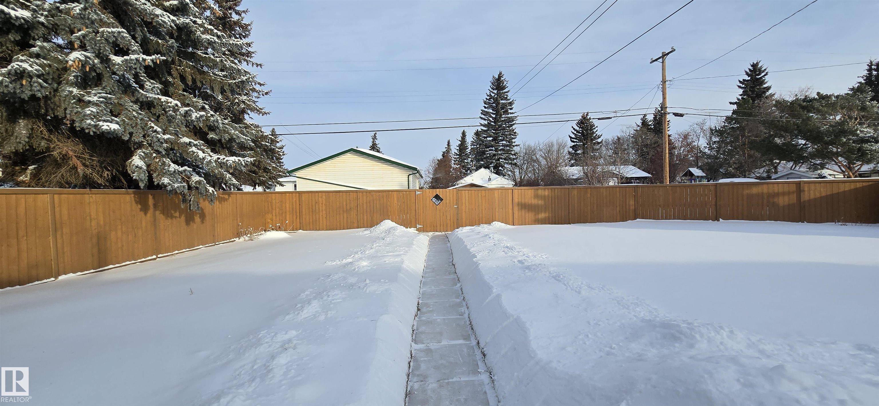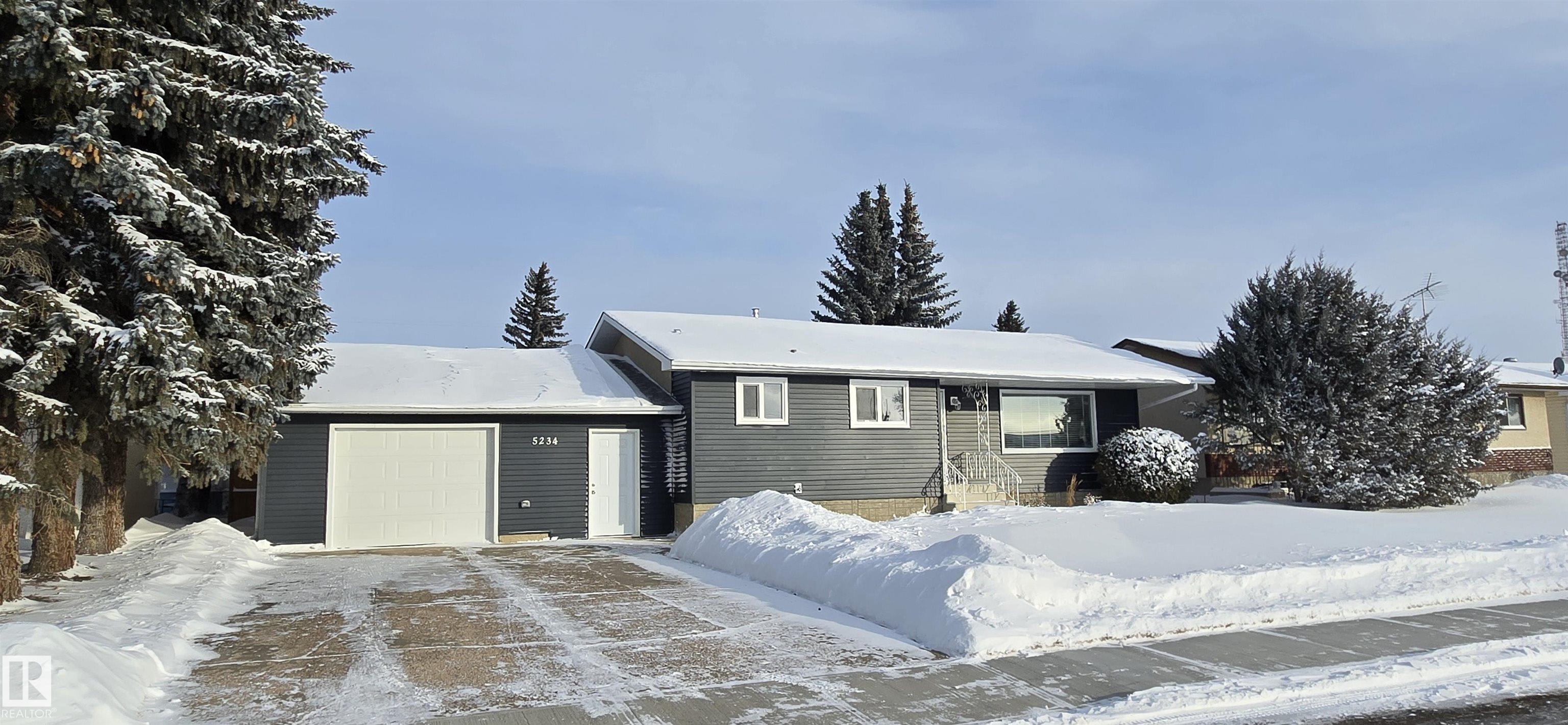 Fresh and clean family bungalow in choice neighborhood! Recent renovations with 5 PERMASOL windows, paint (including kitchen cupboards), stainless appliances, plumbing/electrical fixtures, 2 bathrooms, sump pump, furnace, fence, shingles, vinyl siding garage door and closed in breezeway. Walking distance to 3 schools, playground and amenities. A MASSIVE lot and half with Back alley access, fire pit and a patio area with privacy walls. Single attached garage. Located in Vegreville, 45 minutes east of Sherwood Park.