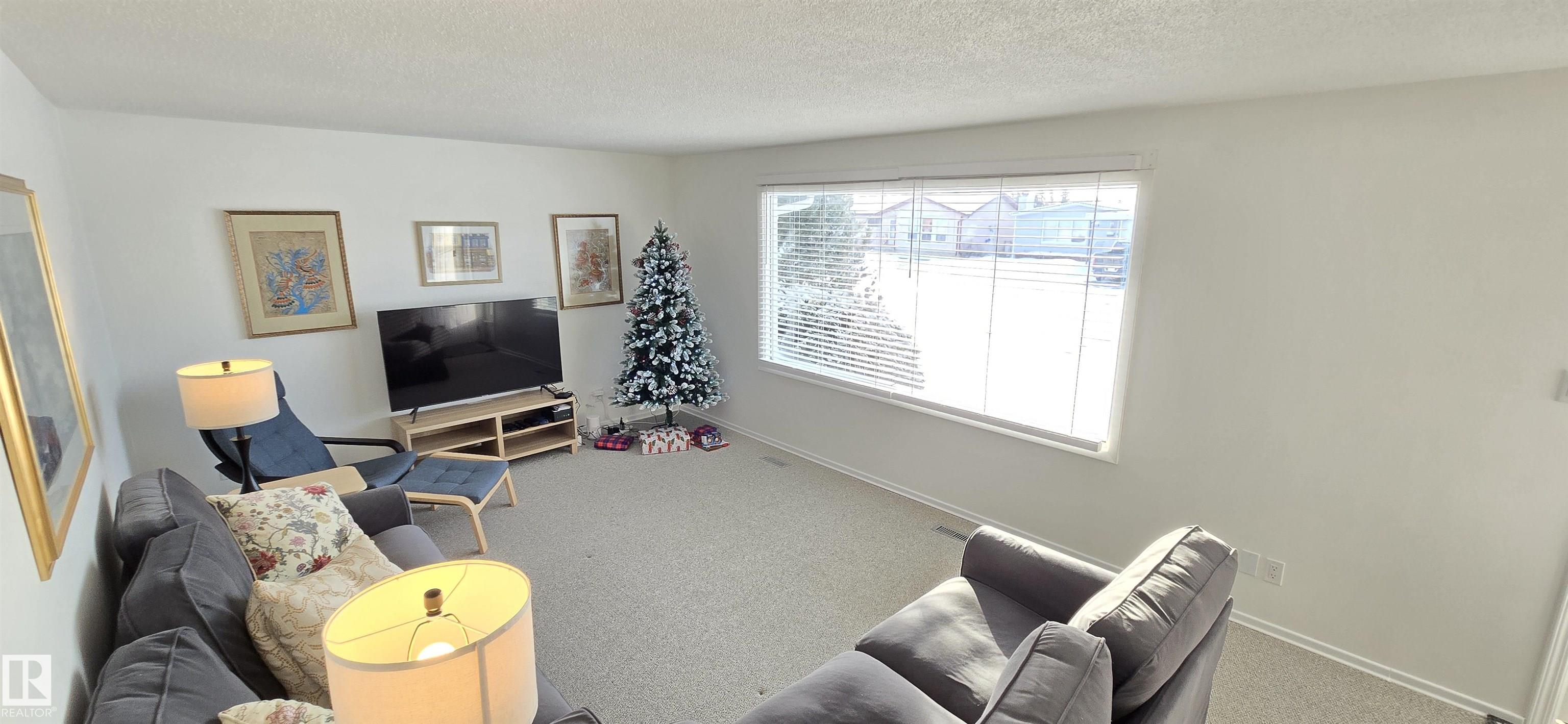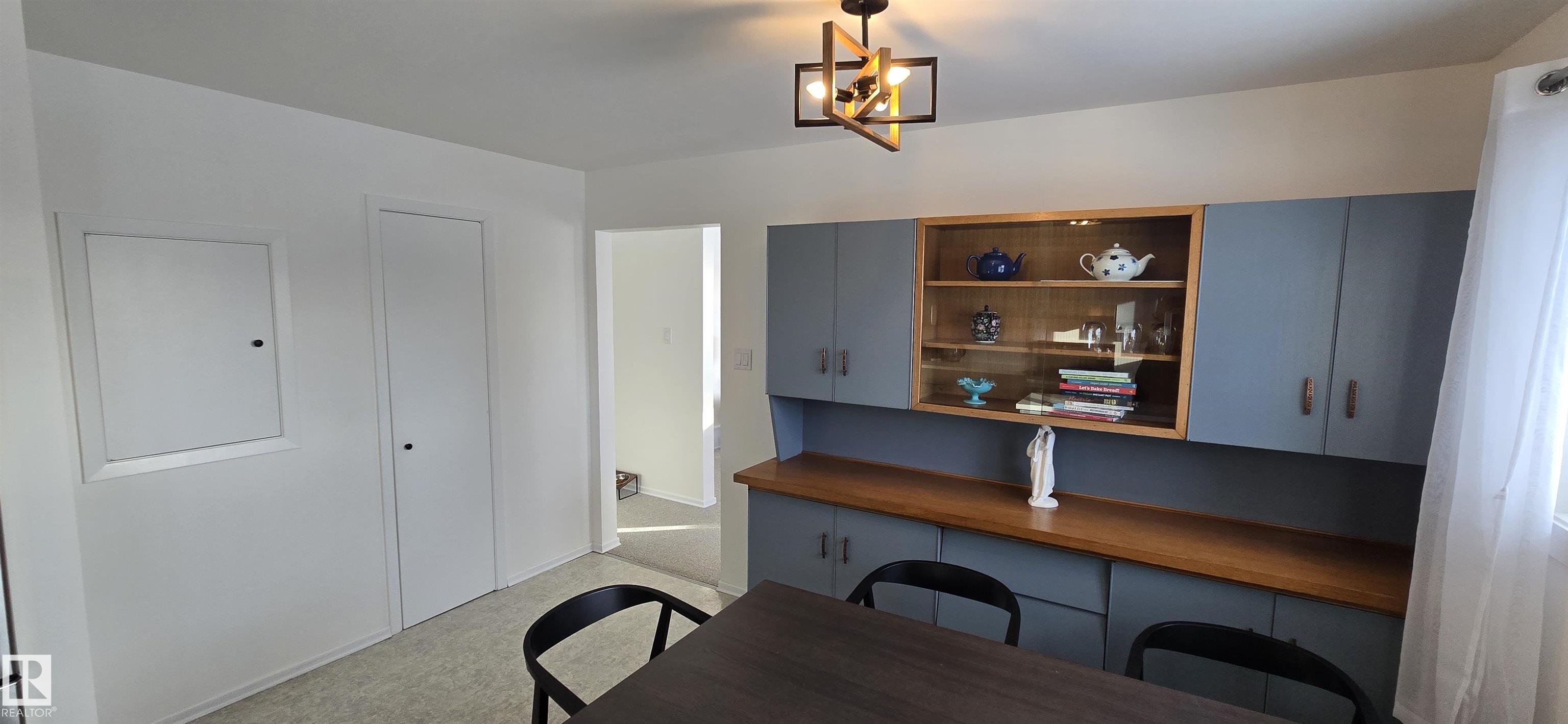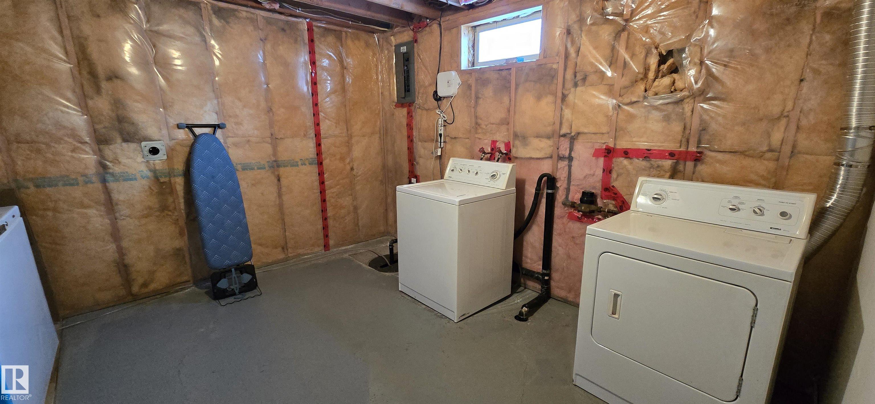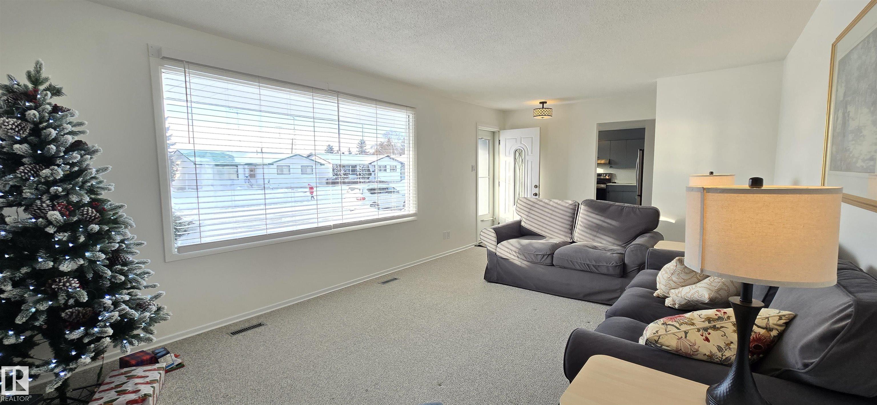 Fresh and clean family bungalow in choice neighborhood! Recent renovations with 5 PERMASOL windows, paint (including kitchen cupboards), stainless appliances, plumbing/electrical fixtures, 2 bathrooms, sump pump, furnace, fence, shingles, vinyl siding garage door and closed in breezeway. Walking distance to 3 schools, playground and amenities. A MASSIVE lot and half with Back alley access, fire pit and a patio area with privacy walls. Single attached garage. Located in Vegreville, 45 minutes east of Sherwood Park.