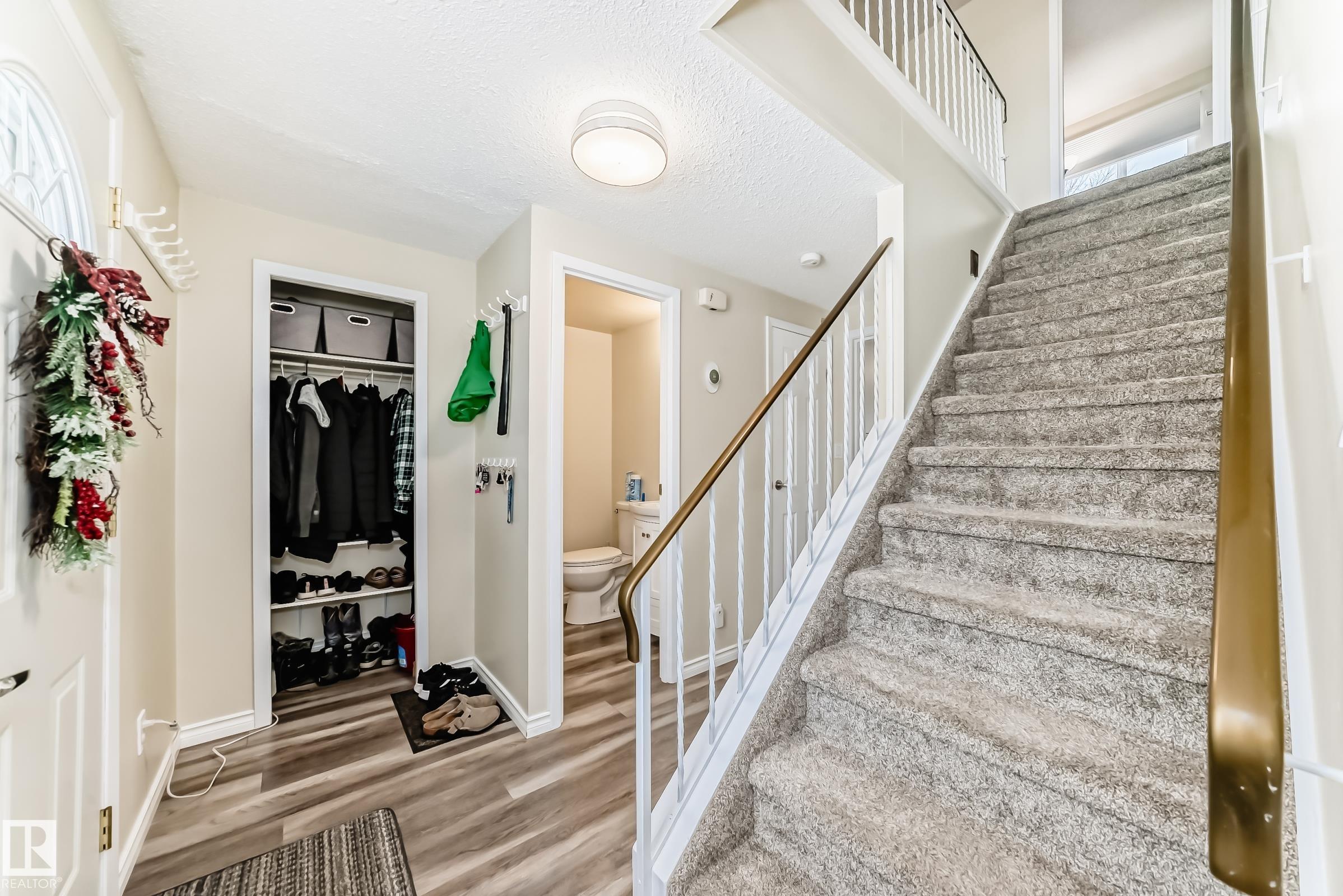 SERENITY AWAITS in this SUBSTANTIALLY RENOVATED townhome, situated in St Albert's highly coveted Braeside area. Enjoy living mere steps away from treed ravines, schools, shopping, recreation & so much more. Situated in a quiet location in Ridgewood Terrace, you will love having quick access to your COVERED PARKING SPOT, located just across from the front door. Step inside & be treated to a world of comfort & quality, with a main floor offering a functional layout, suitable for all lifestyles. Enjoy a modern color-palette, gleaming floors, a large FULLY UPGRADED KITCHEN w/ granite countertops, modern appliances & newer cabinets. The main floor offers a convenient 2-pc bathroom. Upstairs are 3 spacious bedrooms & a lovingly redesigned 4-pc bath. Downstairs is wide open & spacious, offering plenty of space for storage & living! Step out back & enjoy a fenced backyard, offering direct access onto the greenspace this unit backs onto. Affordable condo fees & a well-run condo completes this package!