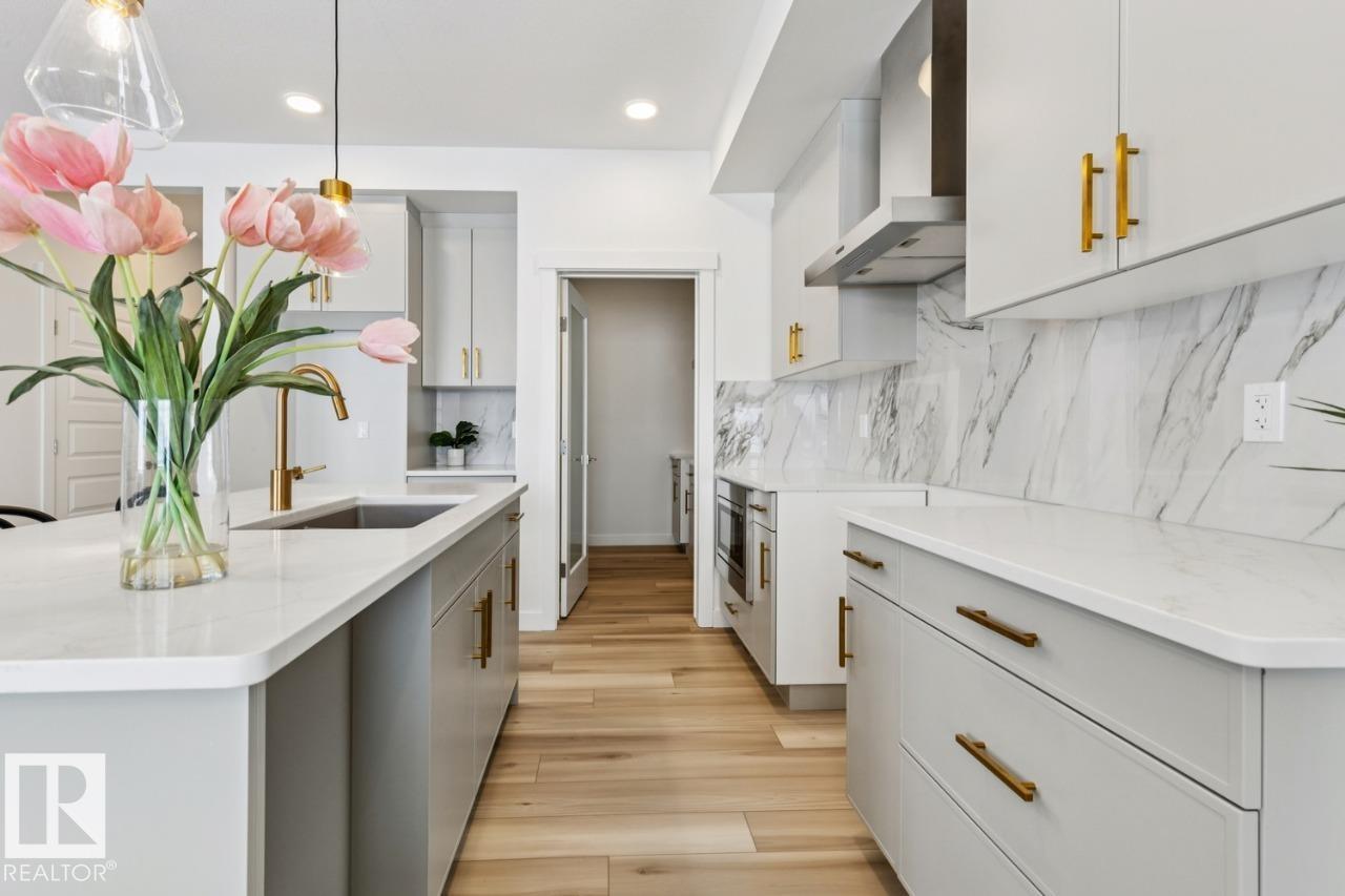 This beautifully designed Heritage elevation home by Parkwood Homes combines timeless style with modern function. Featuring a side entrance for potential future basement development, with a main-floor bedroom and full bath. The chef-inspired kitchen includes a large island, dining nook, and spice kitchen with a gas line for a future stove. The open-concept great room with a 60? electric fireplace creates a warm, welcoming space. Upstairs, enjoy four bedrooms, a bonus room, and convenient laundry. The primary bedroom features a spa-like ensuite with dual vanities, a glass shower, and a freestanding tub, while Bedroom #2 includes its own ensuite for added comfort. Elegant yet practical, this home offers the perfect balance of space, design, and functionality for growing families. Photos are representative.
