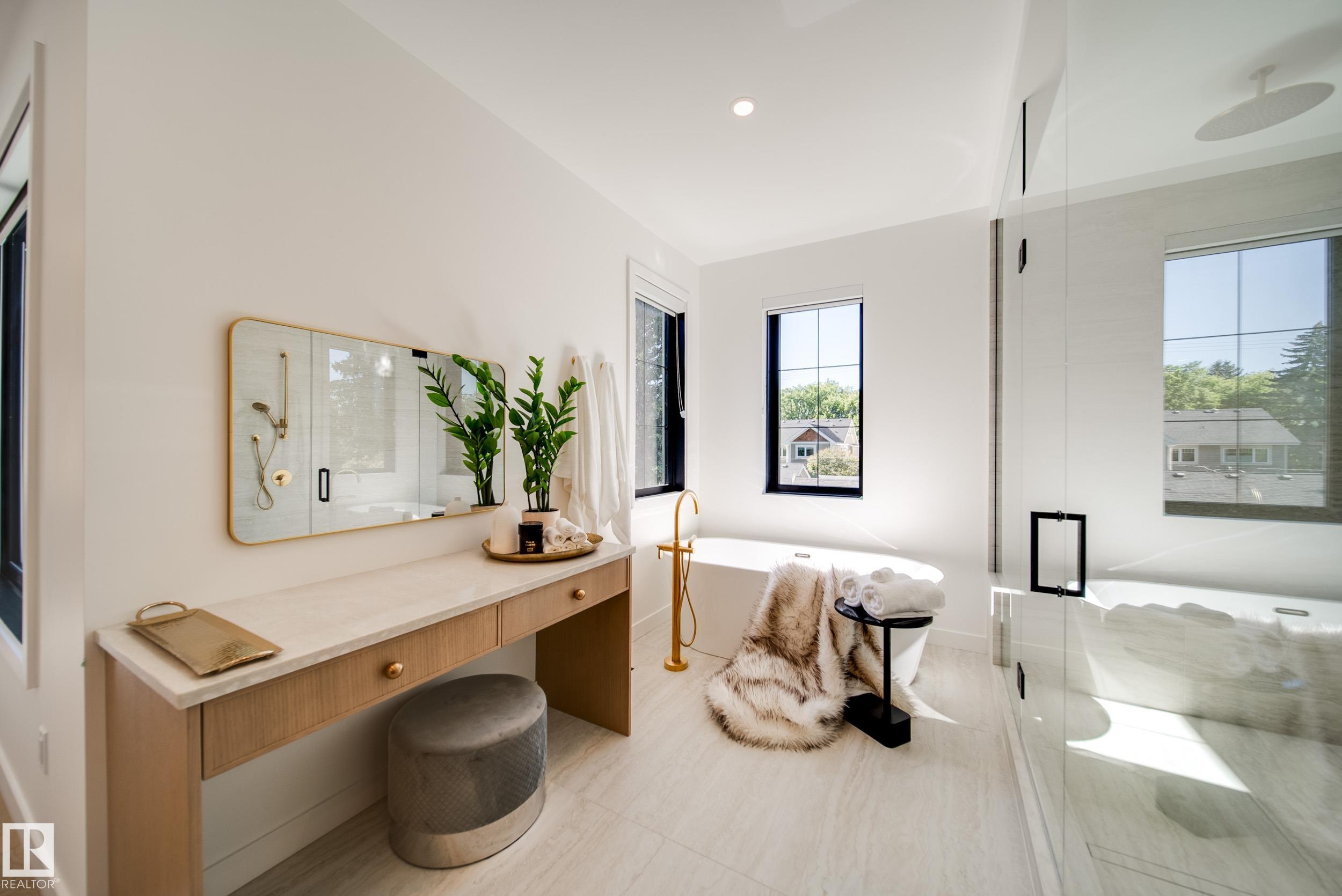 Welcome to your dream home in the prestigious community of Glenora! This CUSTOM 2 Storey home built by Sinova Developments offer's over 5,000 sq ft of luxurious living space, perfectly situated on a quiet, tree-lined street & on a LARGE 50'x150' deep lot! Step inside to soaring 10? ceilings, upgraded grid window's, wide plank hardwood flooring on all 3 levels, & a stunning chef?s kitchen w/ a 12? island, custom cabinetry throughout, Jenn Air panel ready appliances, formal dining, kitchen nook, & main floor office. Upstairs features 4 spacious bedrooms each w/ private ensuites & walk-in closets! MASSIVE primary w/ true spa like ensuite, freestanding soaker tub, custom shower & W-I-C. Fully finished basement is complete w/ theatre room, gym, wet bar, rec room, full bath & bedroom. Central A/C & OVERSIZED heated 3 car garage (892 sqft). Fully landscaped west-facing yard. Minutes from downtown, river valley trails, & top schools. Rare opportunity to own in one of Edmonton?s most sought-after neighbourhoods!
