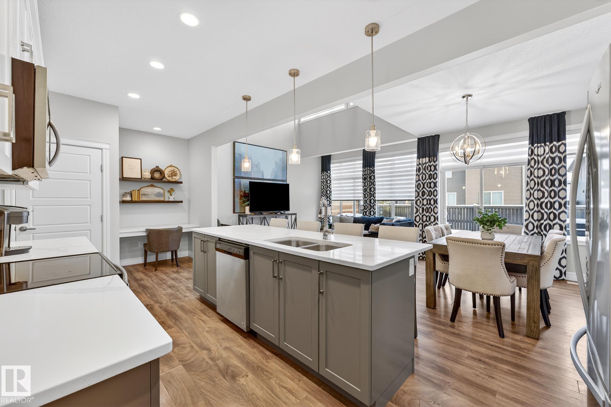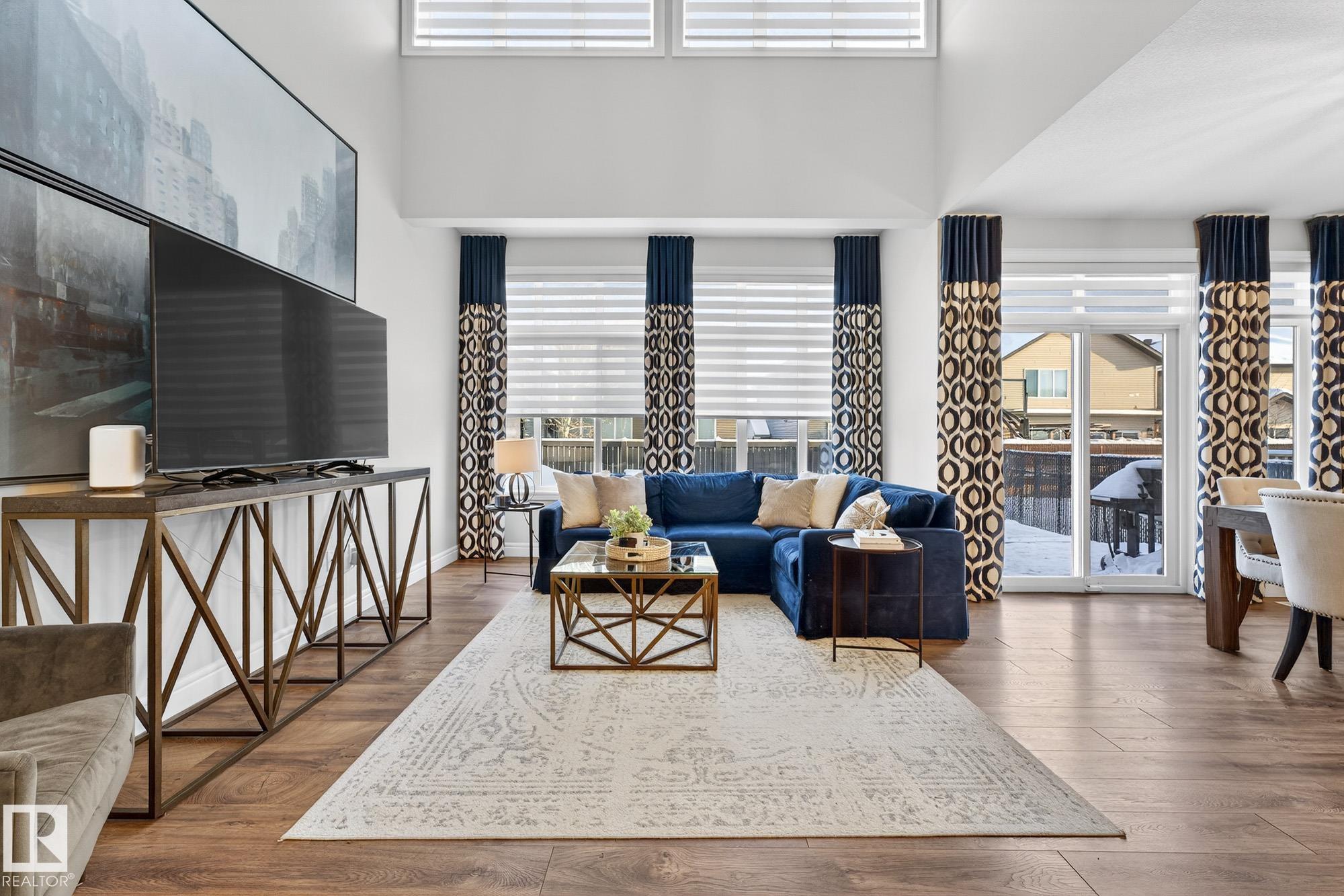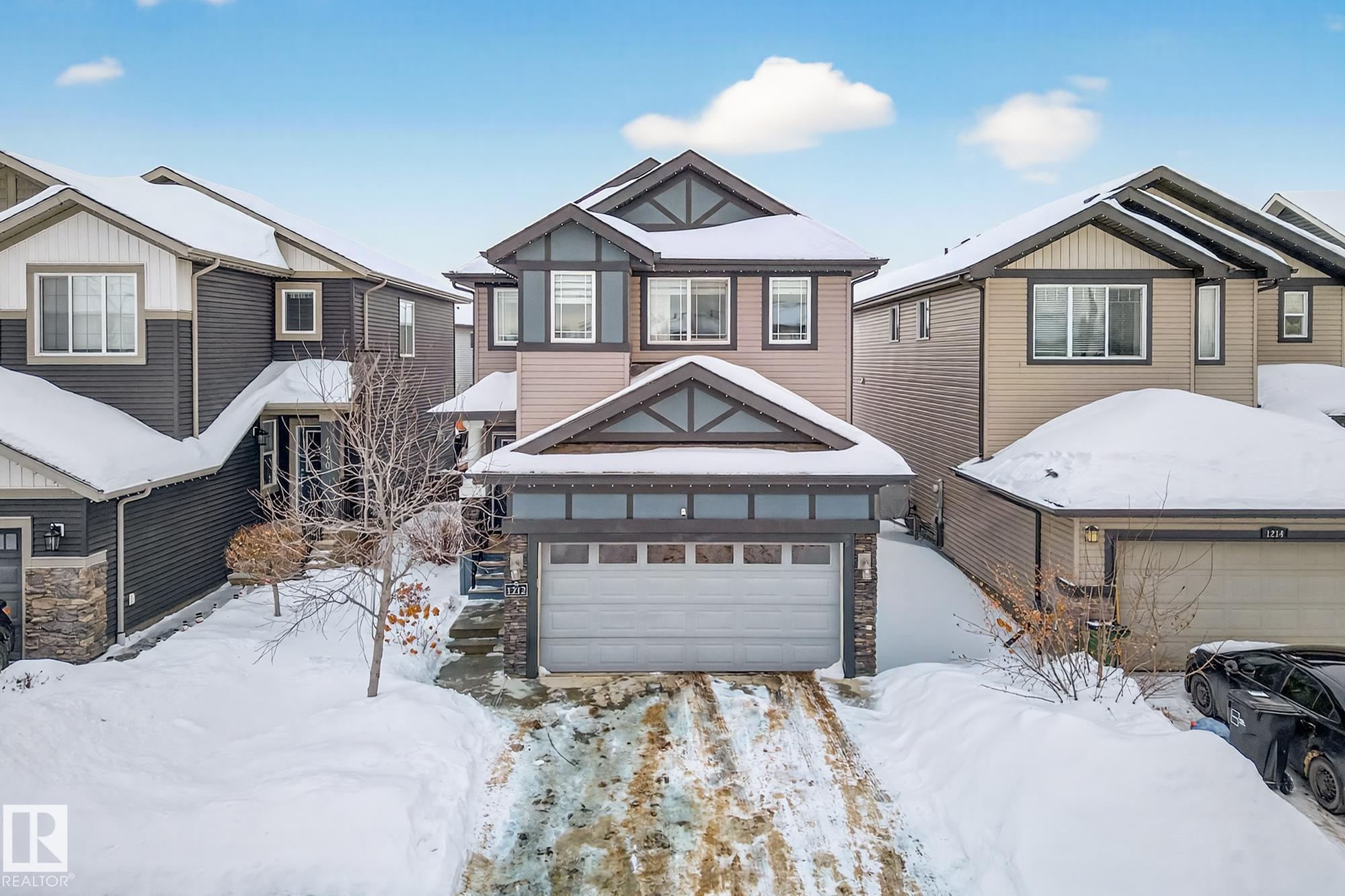 Former Showhome offering over 2,100 sq ft of thoughtfully designed living space in a prime location! The main floor features a large den that can be used as a bedroom, with convenient access to a 4-piece bathroom, stylish laminate flooring, a stunning kitchen with large pantry, centre island, quartz countertops, and modern two-tone cabinetry. Patio doors to outdoor living with a composite deck complete with privacy screen.The open-to-above living room boasts impressive 18-ft ceilings, leading to a cozy upper bonus room perfect for relaxing. Upstairs you?ll find 3 spacious bedrooms, a full 4-piece main bath, and a primary suite with 4-piece ensuite, walk-in closet, and closet organizers. A full upstairs laundry room adds everyday convenience. Additional highlights include a 24x18 double attached garage, fully fenced yard. Located close to walking trails, elementary and junior high school, and within walking distance to all amenities. Great location close to major commuter road, Anthony Henday Drive.