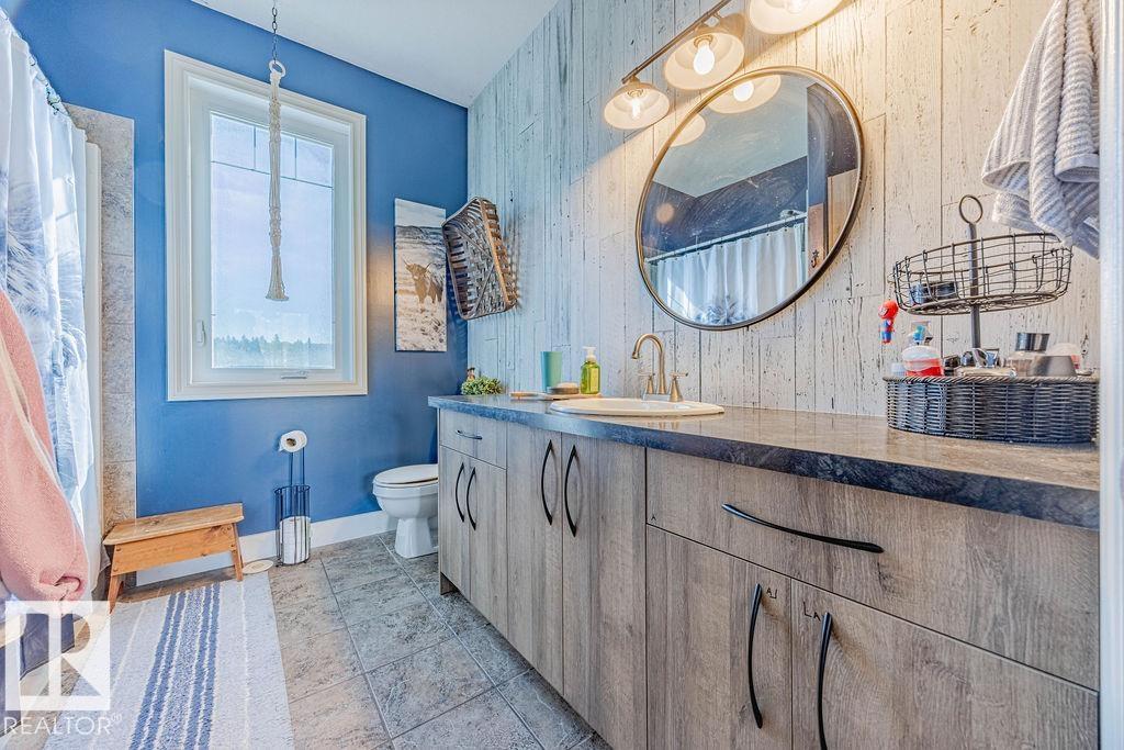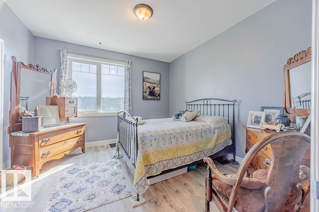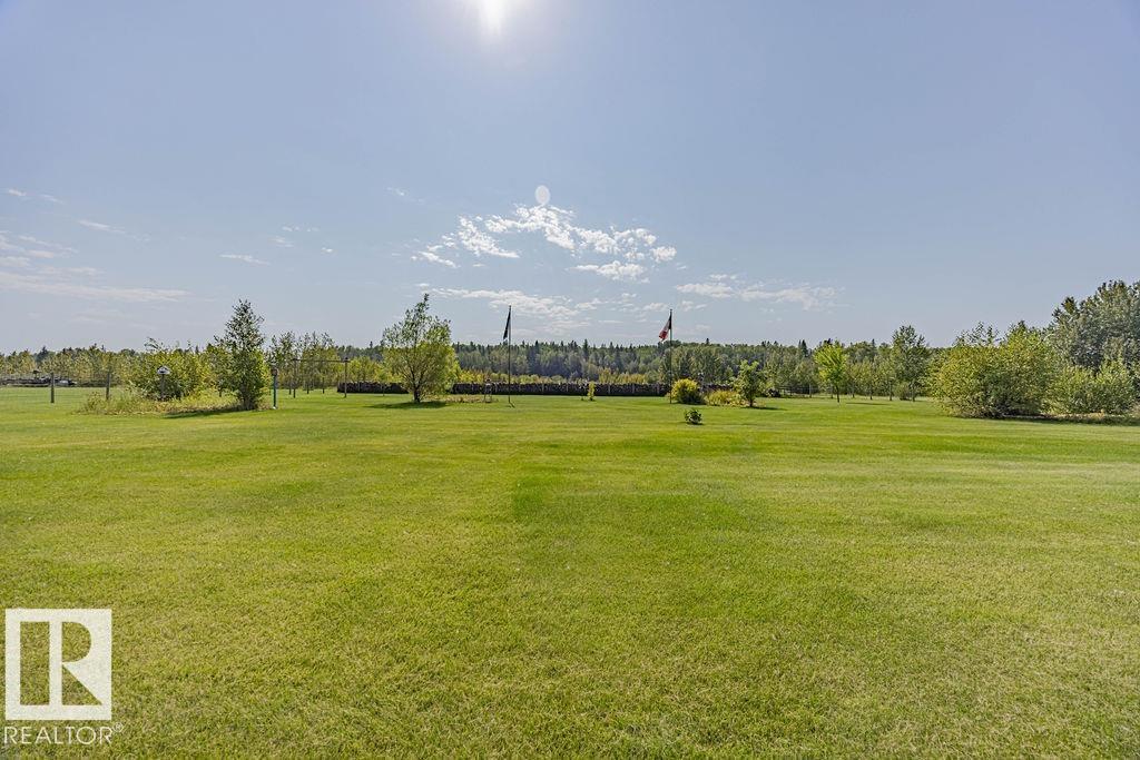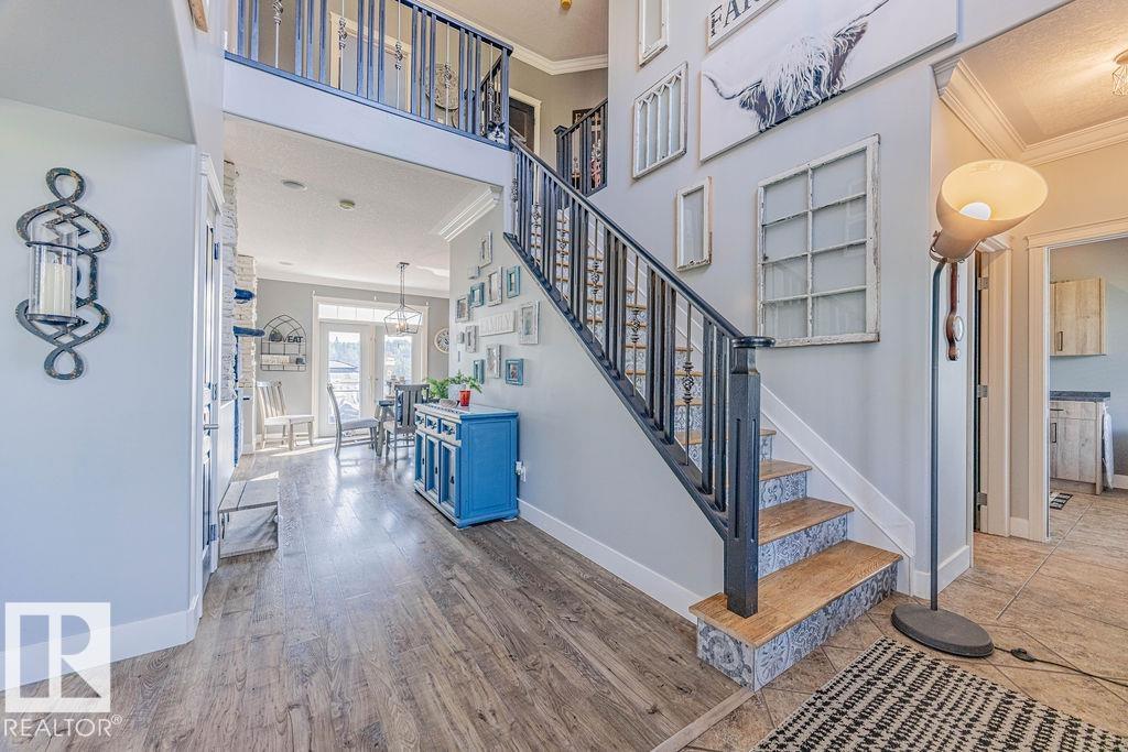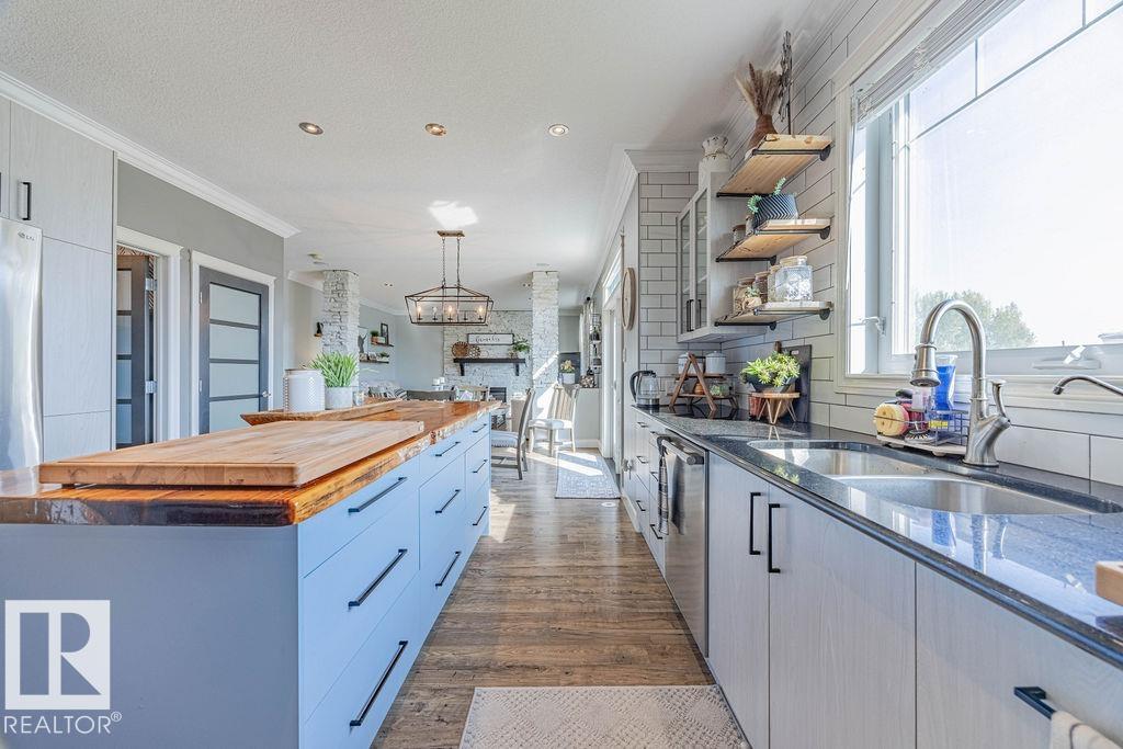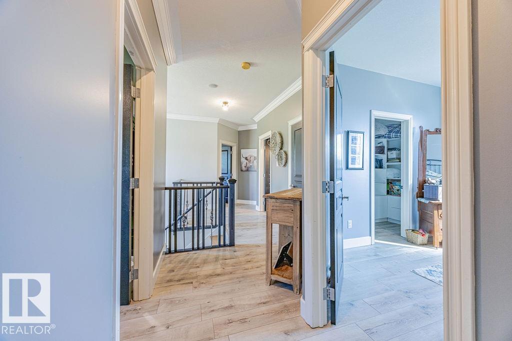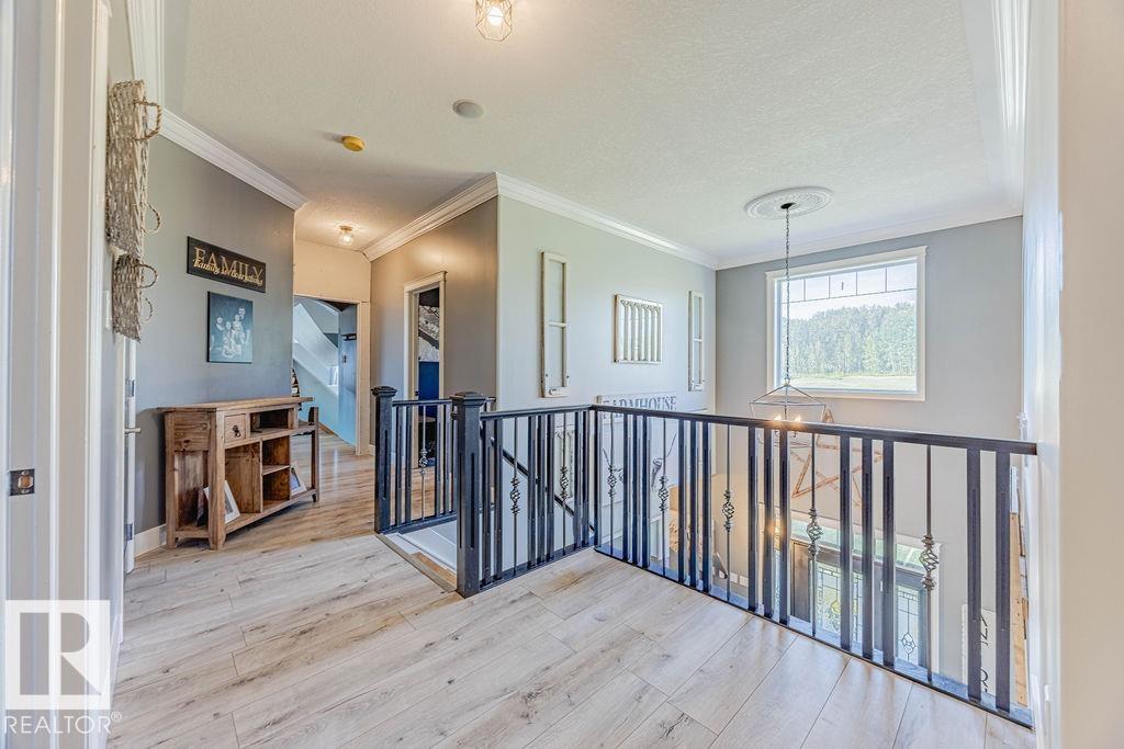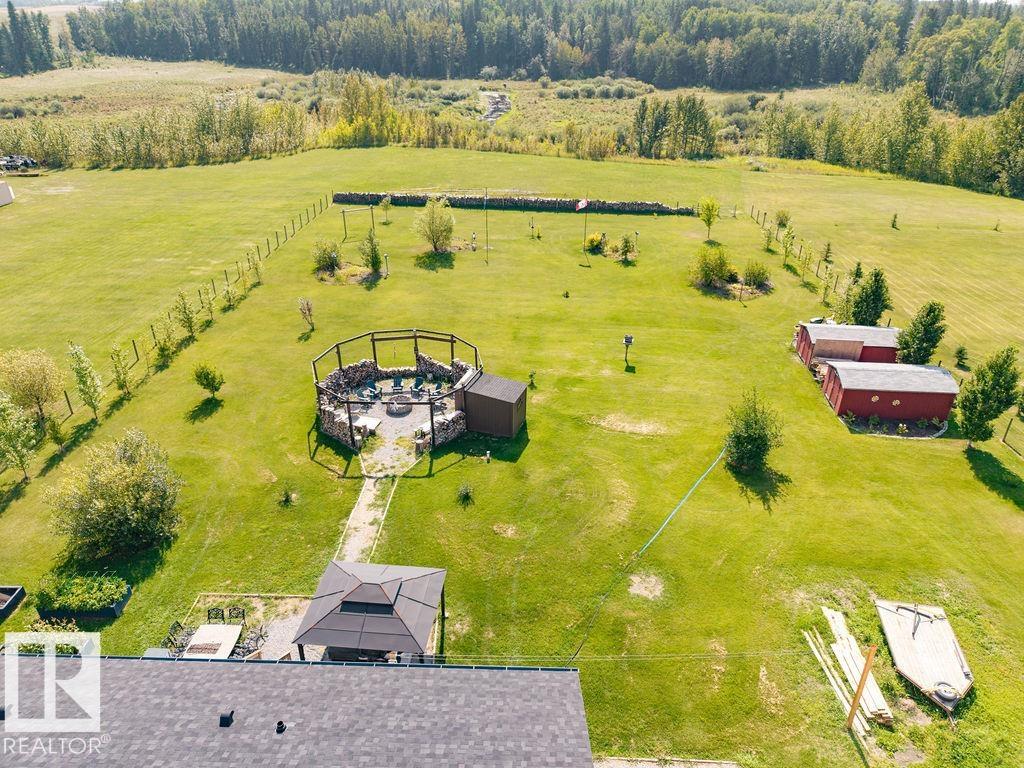 Stunning 5-bedroom acreage on 1.64 acres backing onto nature preserve (Ducks Unlimited). Just a short drive to St. Albert, Spruce Grove or Edmonton. This move-in ready home features 9-ft vaulted ceilings, tile & hardwood flooring, and a designer kitchen with black granite counters, stainless steel appliances & walk-through pantry. A spacious mudroom, main floor laundry & den add convenience. Upstairs, enjoy a large bonus room with gas fireplace, a primary retreat with walk-in closet & 5-pc ensuite, plus 2 more bedrooms & full bath. The fully finished basement offers in-floor heating, 2 bedrooms & 4-pc bath. Outside boasts a covered front porch, back deck, fenced yard, paved driveway & aggregate walkways. Acreage living at its best!