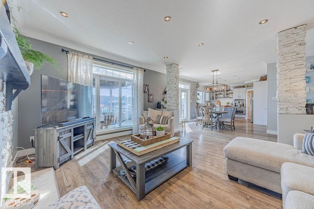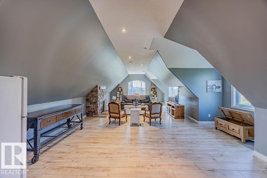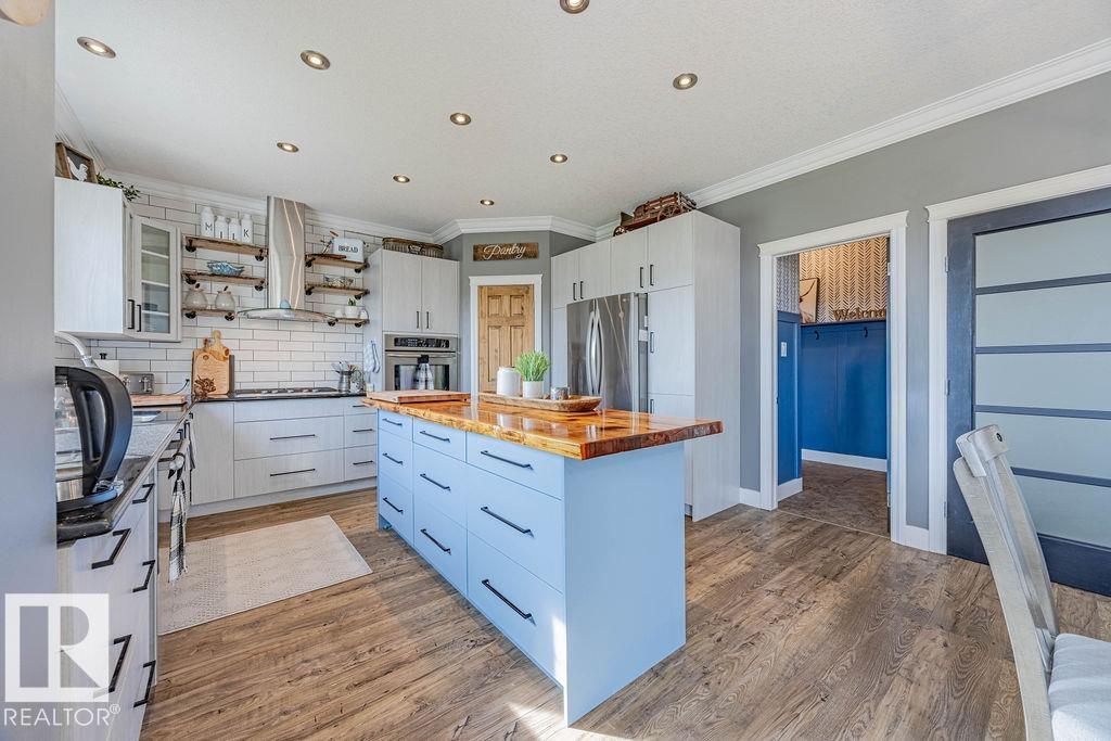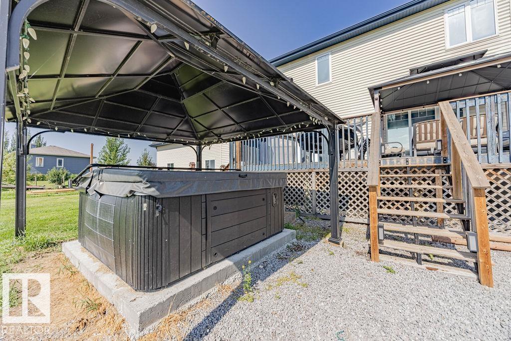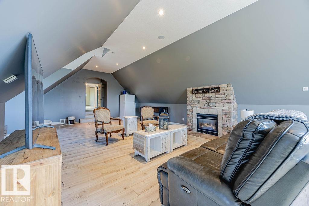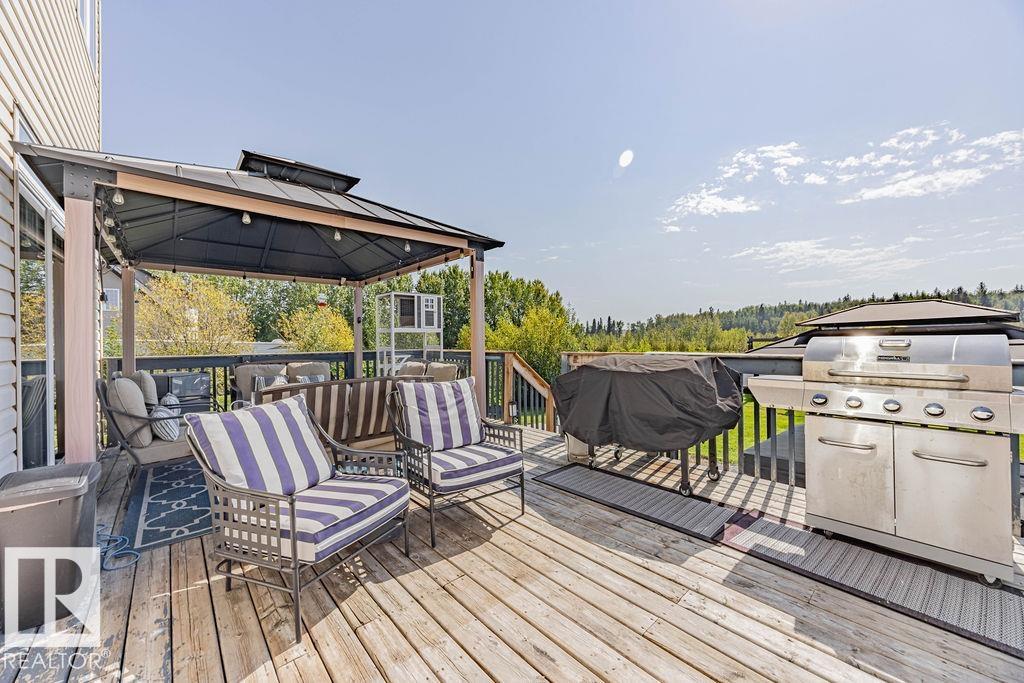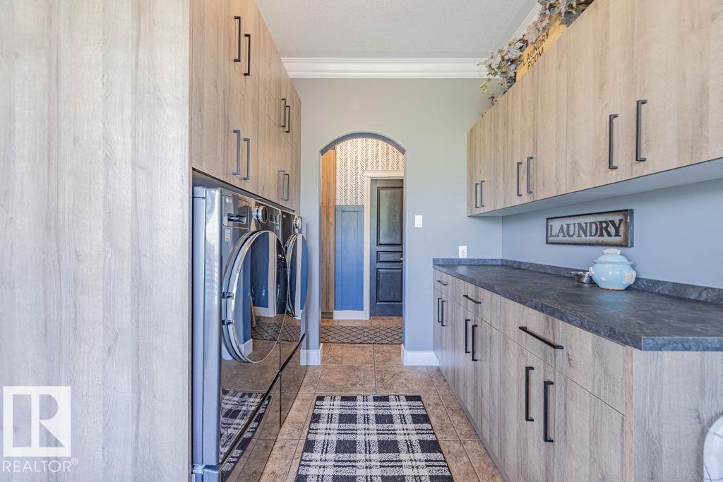 Stunning 5-bedroom acreage on 1.64 acres backing onto nature preserve (Ducks Unlimited). Just a short drive to St. Albert, Spruce Grove or Edmonton. This move-in ready home features 9-ft vaulted ceilings, tile & hardwood flooring, and a designer kitchen with black granite counters, stainless steel appliances & walk-through pantry. A spacious mudroom, main floor laundry & den add convenience. Upstairs, enjoy a large bonus room with gas fireplace, a primary retreat with walk-in closet & 5-pc ensuite, plus 2 more bedrooms & full bath. The fully finished basement offers in-floor heating, 2 bedrooms & 4-pc bath. Outside boasts a covered front porch, back deck, fenced yard, paved driveway & aggregate walkways. Acreage living at its best!