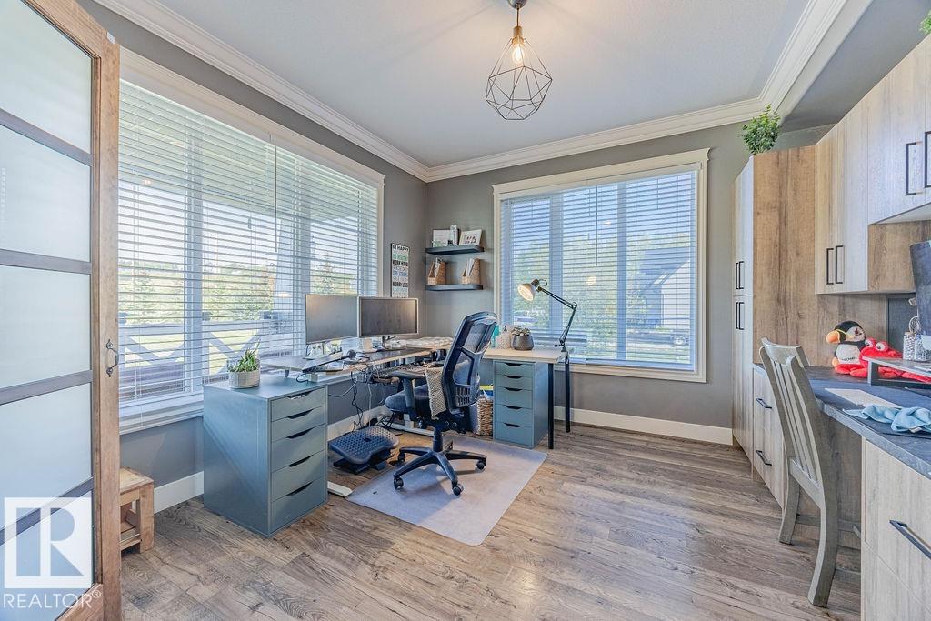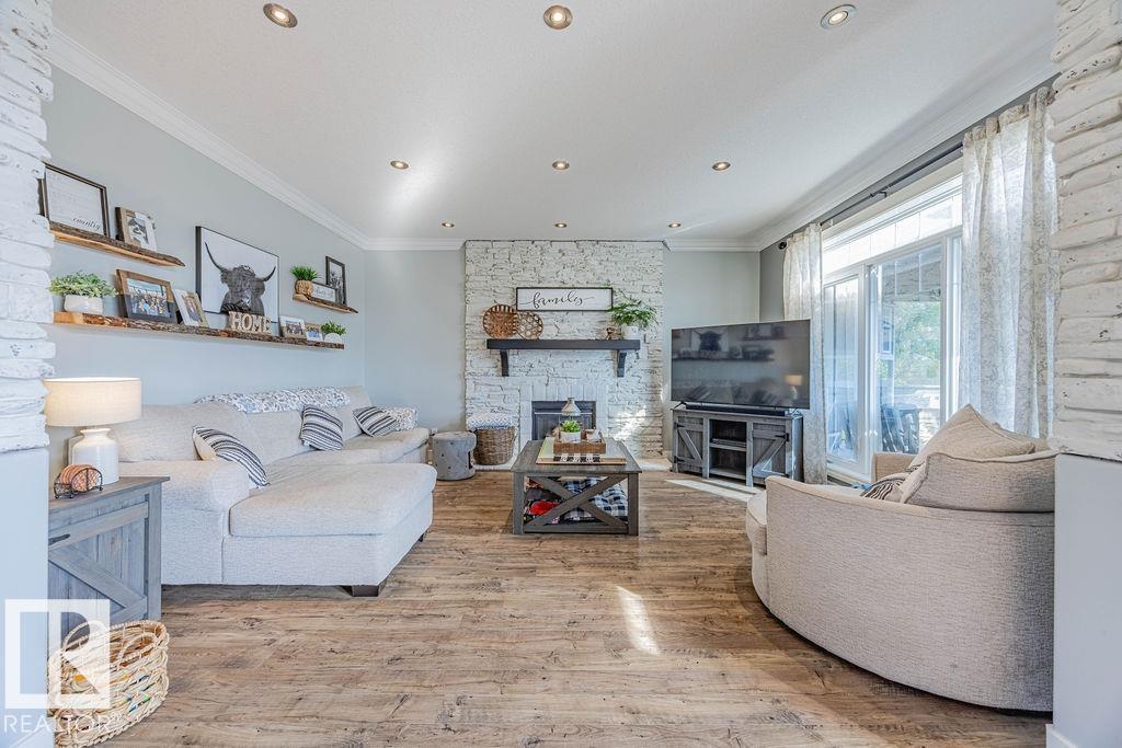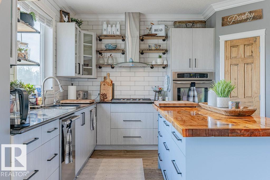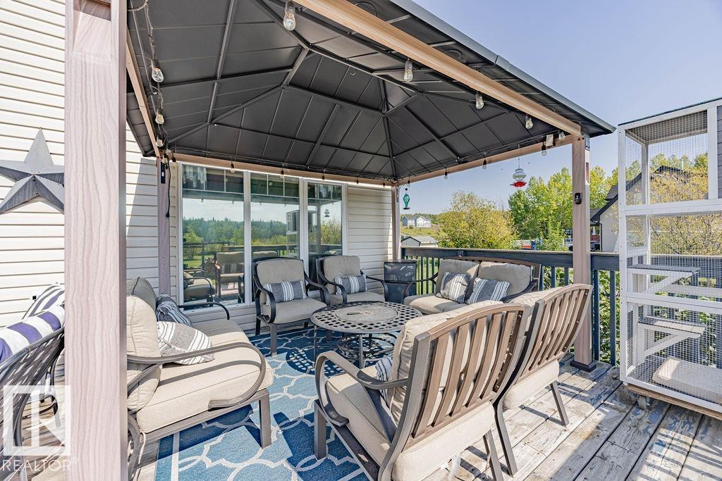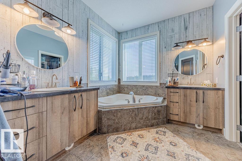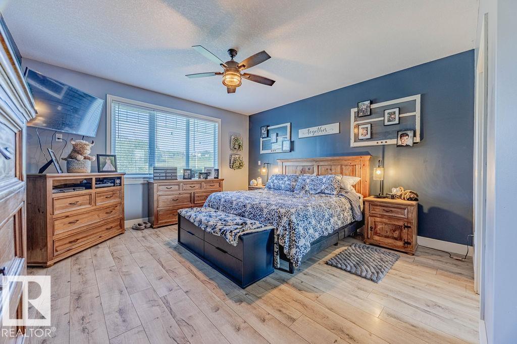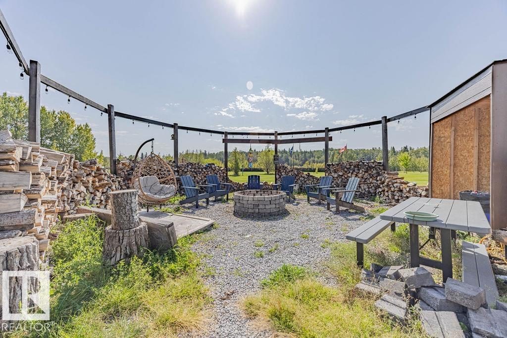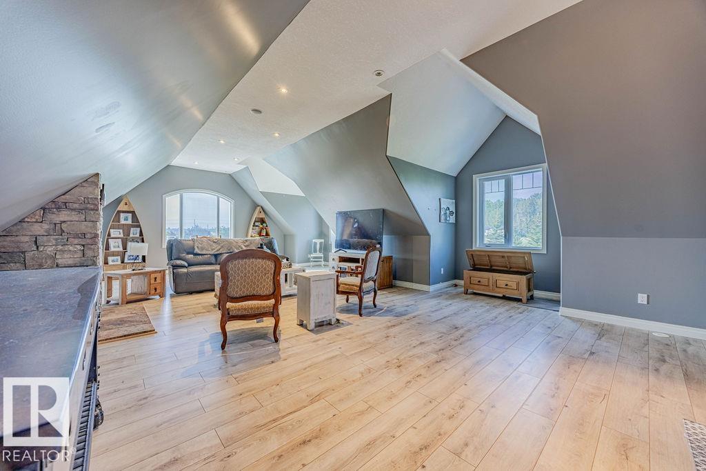 Stunning 5-bedroom acreage on 1.64 acres backing onto nature preserve (Ducks Unlimited). Just a short drive to St. Albert, Spruce Grove or Edmonton. This move-in ready home features 9-ft vaulted ceilings, tile & hardwood flooring, and a designer kitchen with black granite counters, stainless steel appliances & walk-through pantry. A spacious mudroom, main floor laundry & den add convenience. Upstairs, enjoy a large bonus room with gas fireplace, a primary retreat with walk-in closet & 5-pc ensuite, plus 2 more bedrooms & full bath. The fully finished basement offers in-floor heating, 2 bedrooms & 4-pc bath. Outside boasts a covered front porch, back deck, fenced yard, paved driveway & aggregate walkways. Acreage living at its best!