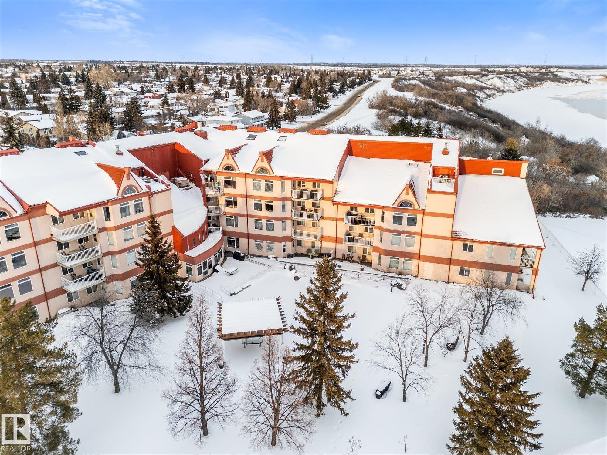 Refined, move-in ready living awaits in this beautifully maintained first-level condo, located in a 40+ age-restricted building that backs the North Saskatchewan River and Edmonton?s river valley. Brand-new vinyl plank flooring and an open, airy layout create a warm first impression. The updated kitchen features sleek cabinetry, stainless steel appliances, and expansive counter space, flowing into the spacious dining area and bright living room. Large windows fill the home with natural light, while a garden door opens to your private patio, ideal for relaxing or entertaining. The primary bedroom offers a walk-in closet with convenient in-suite laundry, complemented by a second bedroom, extra in-suite storage, and a secure storage cage on the lower level. Enjoy heated underground parking with a car wash bay and outstanding amenities including a library, social room, billiards area, craft room, and workshop. Steps from river valley trails, shopping, and transit!