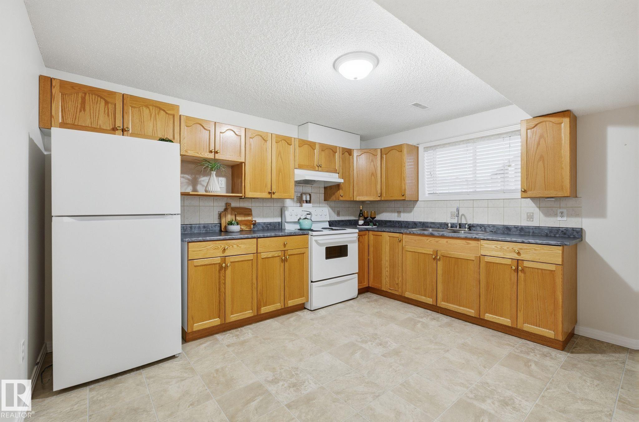 This home offers a total of 2,226 sq.ft. of livable space, featuring an open-concept layout with vaulted ceilings in the kitchen, living room, and nook area. The kitchen includes abundant oak cabinetry and a walk-in pantry. The spacious living room boasts a cozy gas fireplace with tile surround and a large window for natural light. The main floor has two rooms, perfect for bedrooms, a home office, or flexible living space. Upstairs, the primary bedroom features a walk-in closet and 4-piece ensuite. The finished basement includes a large family room, one spacious bedroom, full bath, and a second kitchen with a pantry ? ideal for extended family. This home perfect for a growing family. Recent updates include a 3-year-old roof, newer furnace, and hot water tank. Minimal carpet throughout, only on the stairs.Enjoy outdoor living on the large deck overlooking a fully fenced yard. Close to schools and shopping amenities.