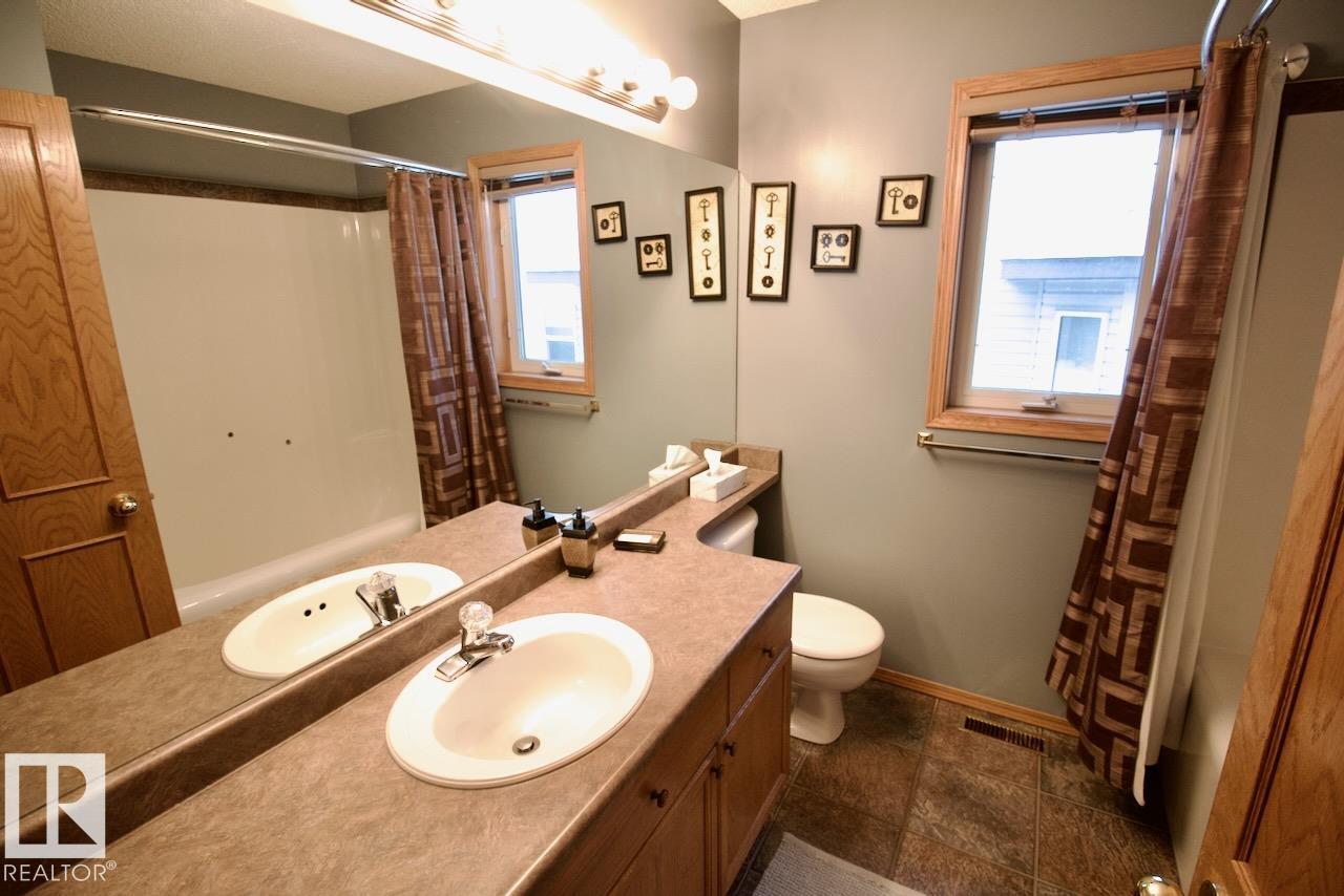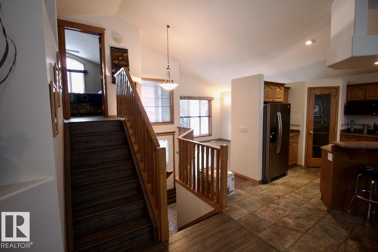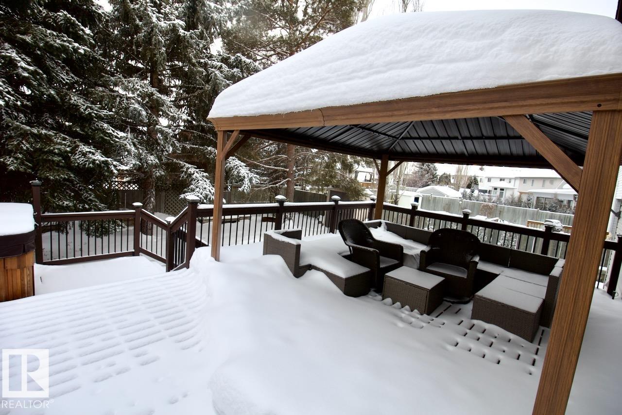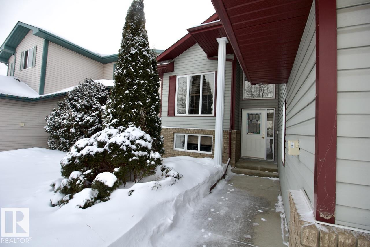 Welcome Home! Fully finished 4 bed, 3 bath bi-level in the desirable Westpark, Fort Saskatchewan. Featuring a private, treed backyard with two-tier deck, gazebo, garden shed, and hot tub. Central A/C and double attached garage included. Bright open-concept main floor with vaulted ceilings, den/flex space, spacious kitchen with island, corner pantry, and all appliances. Living room with gas fireplace and dining area with access to the deck. Main floor offers two large bedrooms and a full bath. Upper-level primary suite with walk-in closet and ensuite featuring soaker tub and stand-up shower. Finished basement includes large rec room with wet bar, fourth bedroom, full bathroom, hobby/storage room, plus laundry and utility space. Tenant pays all utilities.