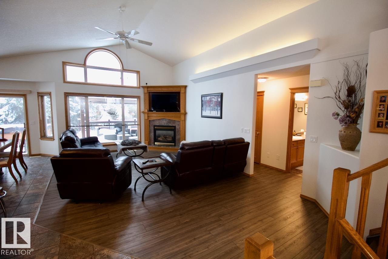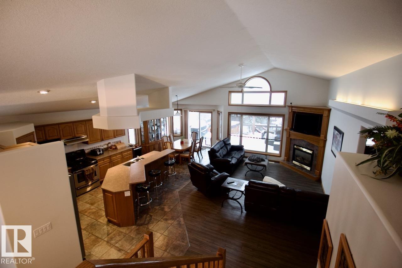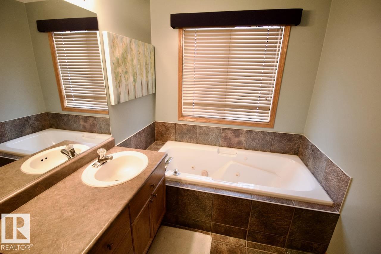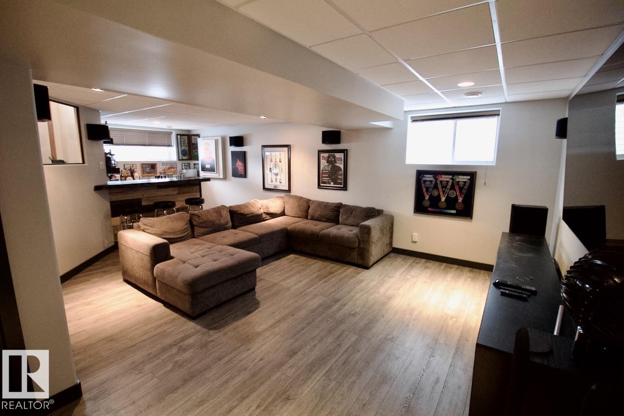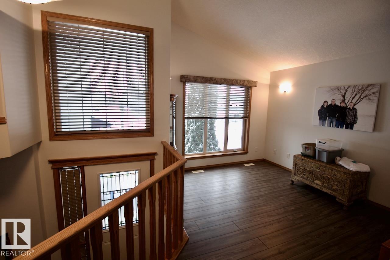 Welcome Home! Fully finished 4 bed, 3 bath bi-level in the desirable Westpark, Fort Saskatchewan. Featuring a private, treed backyard with two-tier deck, gazebo, garden shed, and hot tub. Central A/C and double attached garage included. Bright open-concept main floor with vaulted ceilings, den/flex space, spacious kitchen with island, corner pantry, and all appliances. Living room with gas fireplace and dining area with access to the deck. Main floor offers two large bedrooms and a full bath. Upper-level primary suite with walk-in closet and ensuite featuring soaker tub and stand-up shower. Finished basement includes large rec room with wet bar, fourth bedroom, full bathroom, hobby/storage room, plus laundry and utility space. Tenant pays all utilities.